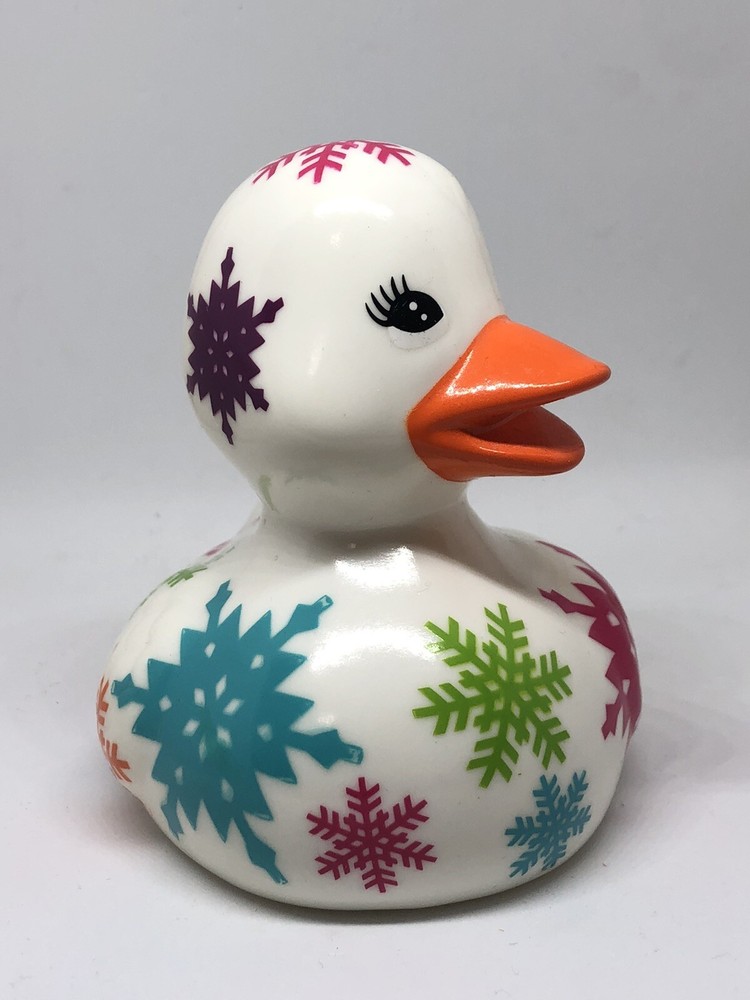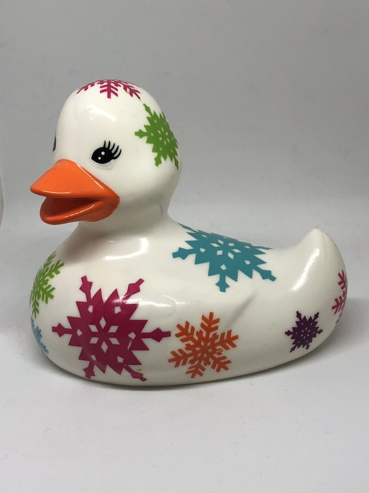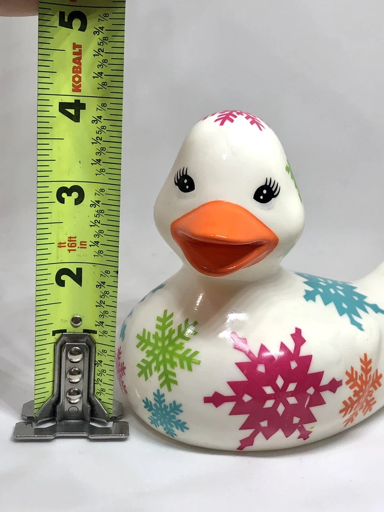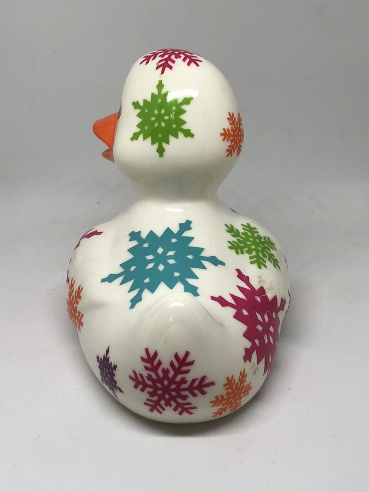 Bath & Body Works 5” Rubber Duck White Multicolor SNOWFLAKE Holiday Bath Pool Jeep Toy. Great condition! Thank you for stopping by!
