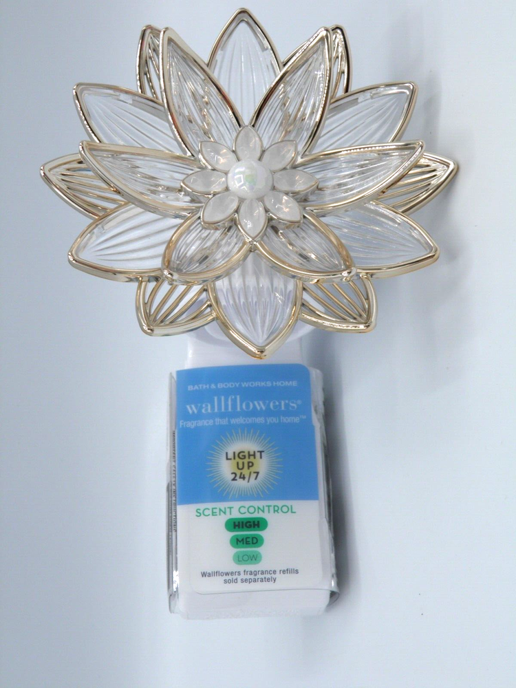 Bath & Body Works OPEN LOTUS NIGHTLIGHT SCENT CONTROL Wallflower Plug Diffuser Mailing Address - We will ONLY ship to the address on file with eBay. Before making a purchase, please ensure that your address is correct. We may otherwise cancel the sale. Handling Time - Our handling time is set to THREE BUSINESS DAYS. We ship packages Monday - Friday, except on holidays. This listing is NOT sponsored by, affiliated with, or representative of the mentioned brand(s), trade name(s), or trademark(s) and does not claim any ownership of such. All trademarks or brands mentioned in this listing are registered trademarks of their original owners who reserve all their rights and ownership. The use or mention of any trade name, product name, or trademark is necessary for identification and is for reference purposes only.