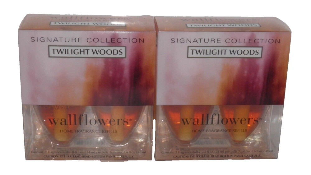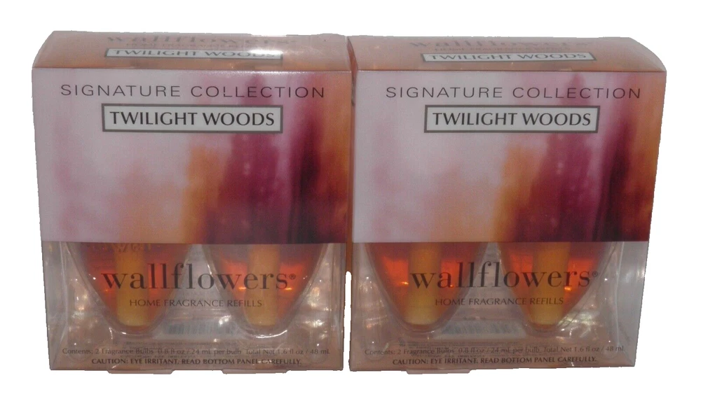Bath & Body Works TWILIGHT WOODS WALLFLOWER BULB BULBS TOTAL (2 X 2 PACKS) WALLFLOWER UNITS SOLD SEPARATELY Mailing Address - We cannot change the shipping address after purchase. This policy is in place for the protection of the buyer and seller. Before making a purchase, please ensure that your address is correct. We cannot change the address after purchase and will otherwise cancel the sale. Handling Time - Our handling time is set to THREE BUSINESS DAYS. We ship packages Monday - Friday, except on holidays . This listing is NOT sponsored by, affiliated with, or representative of the mentioned brand(s), trade name(s), or trademark(s) and does not claim any ownership of such. All trademarks or brands mentioned in this listing are registered trademarks of their original owners who reserve all their rights and ownership. The use or mention of any trade name, product name, or trademark is necessary for identification and is for reference purposes only