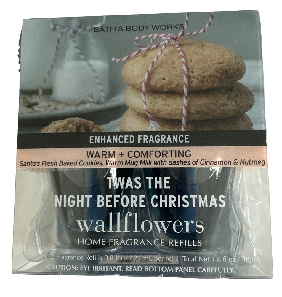 Add a touch of warmth and comfort to any room with the Bath & Body Works Twas The Night Before Christmas Wallflowers Fragrance Refill. This traditional style refill comes in an assorted color and is made of glass material. It is intended to be used as a deodorizer and odor eliminator, and can boost energy levels with its warm and comforting scent. This oil-based refill is compatible with Wallflowers Plug-In Diffuser and can be installed on any wall area with a wall plug-in power source. The package includes 2 refills of 1.6 fl oz each, featuring the model "Twas The Night Before Christmas". Perfect for any occasion, this product is part of the Wallflowers product line by Bath & Body Works. I will gladly combine shipping for a discount on multiple purchases. Please contact me prior to payment so I can adjust your invoice.