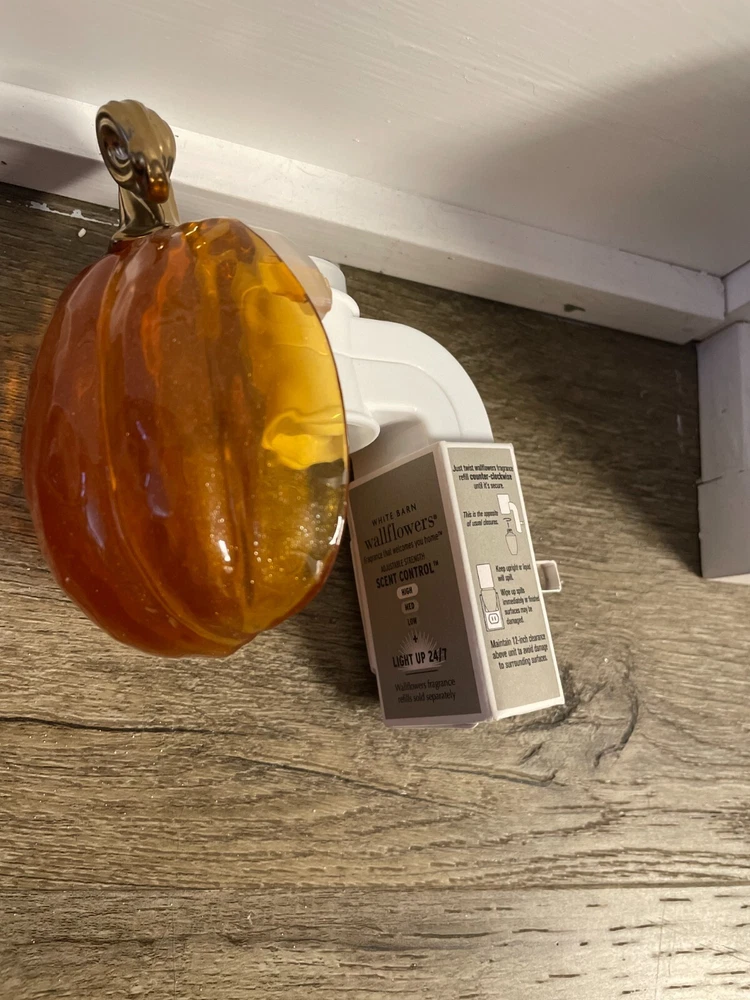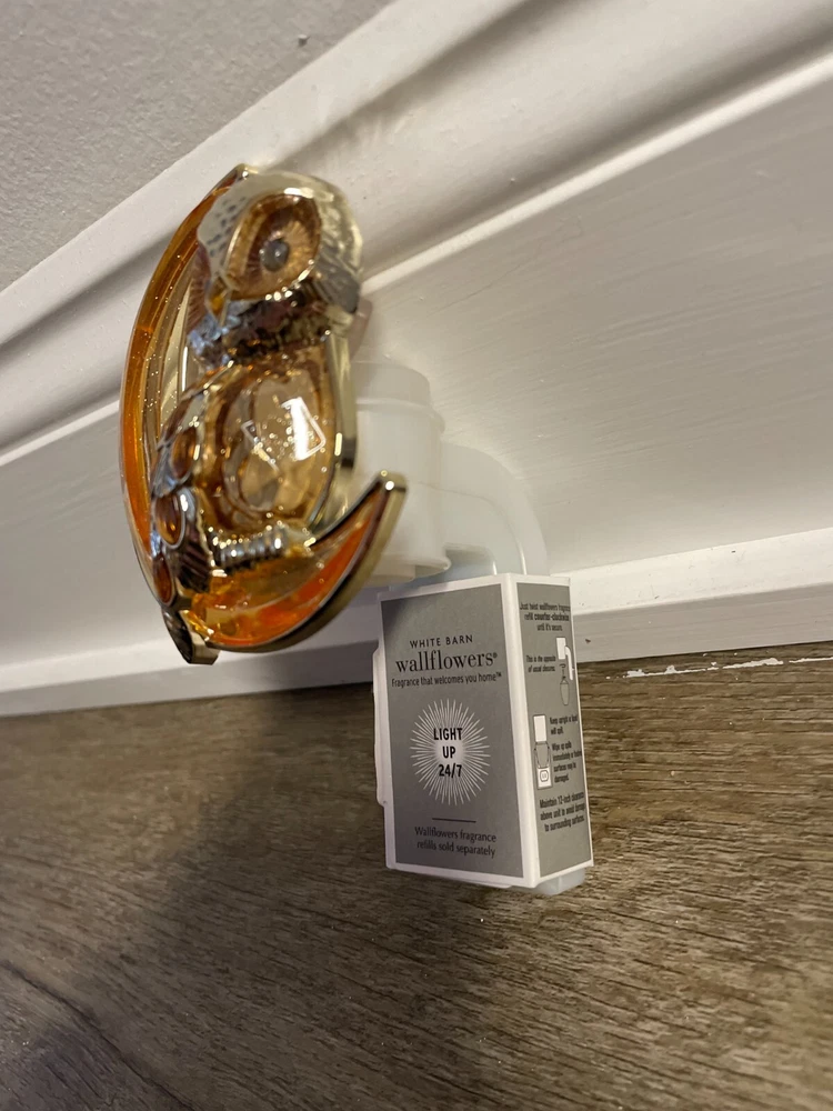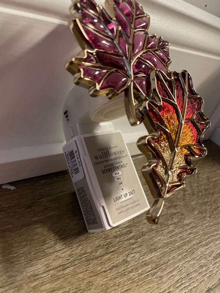 The Bath & Body Works Wallflower Plug In Diffuser from the Autumn Collection is a wall plug-in diffuser designed to add a pleasant and long-lasting scent to any room. Made of bronze, plastic, and metal, this diffuser features a variety of assorted/mixed scents to choose from. It functions as a deodorizer and odor eliminator, providing a continuous fragrance experience. Perfect for anyone looking to add a cozy touch to their home during the autumn season.