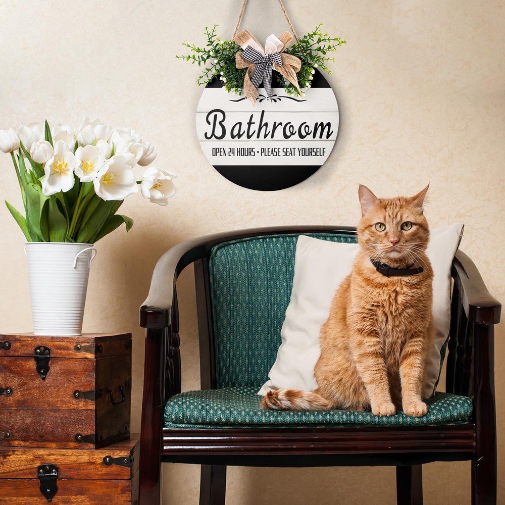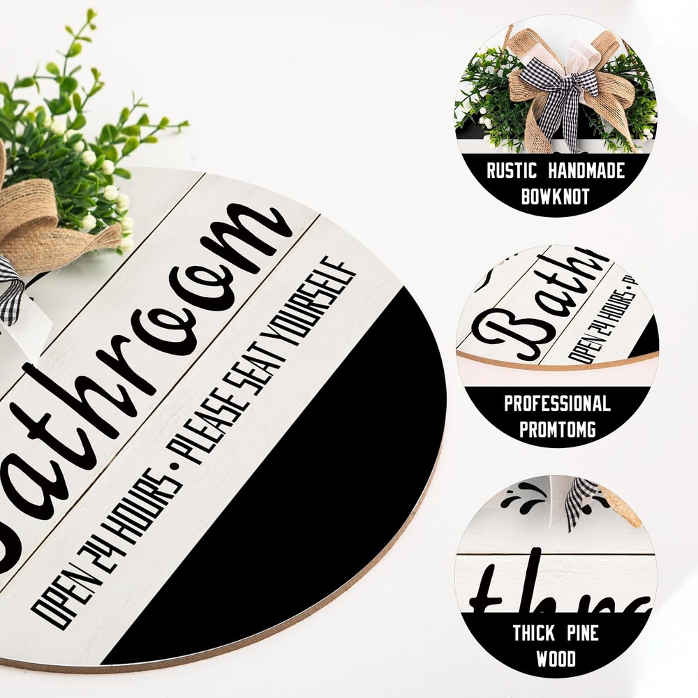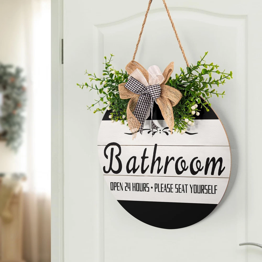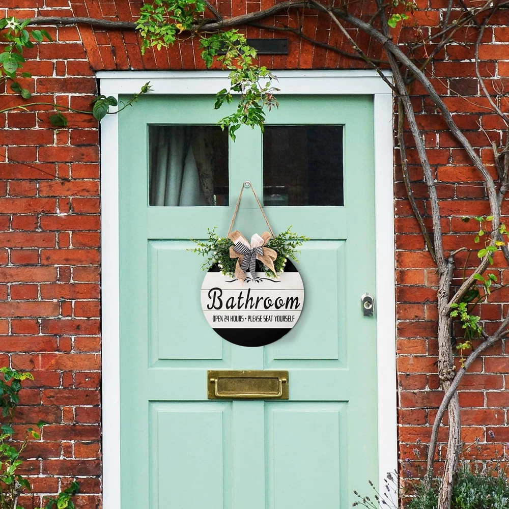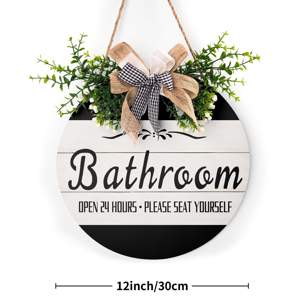 Bathroom Signs for Front Door, this home sign will be a great complement to your home decor style, bring a comfortable and warm atmosphere to home. 【Specifications】 Material: High quality material wooden. Thicken, durable, not easy to break. Dimensions: 12x12 inches(30x30 cm). Quantity: 1 x round wooden hanging sign with buffalo plaid bow. Pattern: Bathroom open 24 hours please stay yourself. Application: hang for door, wall, window etc. 【Decorative and application】 Our welcome door sign is thicken, durable, environmental protection, with strong rope to hang on your door or anywhere you want, print with nice-looking lettering, long-lasting and waterproof. Perfect to hang it or set anywhere, wall or front door, front porch. These wooden sign will not only embellish your room, but improve your mood, novel and exquisite, giving you a good visual effect .small changes can make a big difference. A beautiful decorative atmosphere can improve the happiness in life. 【Perfect Gifts Choice】 Safe and reusable, a fancy gift for your relatives, neighbors, friends, teachers and so on. It is to give them your best wishes and blessings, and can be used as the housewarming gift. 【Notes】 Please allow slight size errors color differences due to manual measurement and environment. Please contact us if you have any questions, we will reply to you as soon as possible. 【Sincere Service】 If you have any quality problems, please contact us, we will give you a satisfactory answer. We hope this artwork will bring a different color to your space! 【Quality Material】The bathroom signs for front door decor are made of solid thick wooden, with smooth wood texture. Ensure an attractive appearance without losing durability, which is environmentally friendly, durable and not easy to break or deform. The guest bathroom decor is guaranteed with superb workmanship that will match perfectly with your interior design. 【Suitable size】This bathroom signs decor farmhouse measures 30 x 30 cm/ 12 x 12 inches, and in good shape, about 0.3 inches thick, portable to carry. Each listing is equipped with come with a hemp rope for easy hanging, is sure to catch everyone' s attention. Please ensure the size can meet your demands before ordering! We are confident of that our eye-catching style will Improve your taste in decoration. 【Unique Designs】Funny bathroom signs wall decor that will compliment any room and style. Artificial green plants and beautiful bows are manually glued on the round wooden plate. Its gestures make it visible even from a distance and deliver written messages. Hanging it on the wall of bathroom to create extra modern farmhouse rustic sense for your bathroom. 【Wide Application】This farmhouse bathroom decor sign is a must-have wall and door decor in your home’ s or office’ s bathroom or restroom. perfectly fit to hang on wall at the front porch door, back door, living room, bedroom, entryway, mantel or leaned on a shelf or anywhere throughout your home! Great for bedroom, living room, farmhouse and bath room. The bathroom signs decor is big enough for friends, family, guests, and coworkers to see! 【Present Idea】This high quality bathroom sign matches other modern farmhouse and country themed decorations, great for personal expression,ou can give it to your friends and families, as a clever present idea and great for people of all ages. It could be hanging on the door or the wall, or put it on shelves and tables. The appropriate size makes the farmhouse decor fit in various places. Simple and warm to make your friends and families feel the joyness of life.