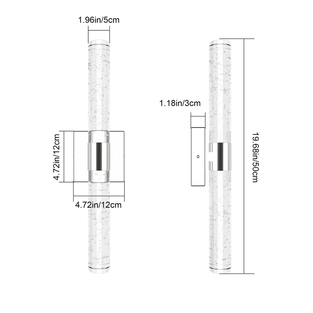 【Durable Quality】2-light bathroom wall sconces is made of sturdy metal in the Aluminum and full solid crystal lamp body design which creates a modern and minimalist look.The wall light will bring more exquisite and luxurious for your home lighting. 【Inspired Design】The body of this sconce wall lighting is all crystal design, waterproof, dustproof,easy to clean and has outstanding light transmission performance.When the light on,the bubbles in the crystal form a reflection of the starry sky,creating a romantic atmosphere. 【Easy Installation】The bathroom wall sconce lighting can be mounted in an horizontal or vertical direction.It depends on your preferences.No switch or cord on the light.JUST Connect to the reserved wire directly,Suitable US junction box standard. 【Energy Saving】This Vanity Light uses high quality LED lighting chip and 6000K white light creating stable and efficient light,and protecting your eyes.Compared to conventional light bulbs,this led vanity light saves up to 80% electricity and lifespan up to 50,000hours. 【Multi-Scene Application】The wall light can offer an amount of light style,blending perfectly with style from modern to farmhouse.It is an excellent choice for your bathroom mirror or bedroom,living room,dressing table,vanity table,mirror cabinets,doorway or entryway,corridor,foyer,bar coffee shop.