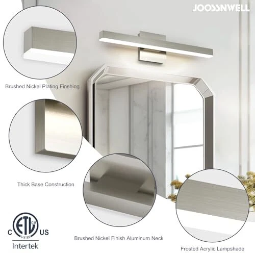 Return Policy Fast Delivery Trusted seller Bathroom Vanity Light Brushed Nickel Bathroom Light Fixtures Over Mirror 23.62 inch 5CCT Dimmable Modern Bathroom Lights Bar LED Vanity Lighting ETL Certificated Product Description 5 Color Changeable: Our brushed nickel vanity light for mirror is with 5 colors temperature according to your actual need, t is a SHIFT key on the side of the vanity lights base, and freely choose soft white/warm white/cool white/Day light temperature to meet your mood Dimmable Function: Vanity lighting fixtures with ETL certificated dimmable driver ensure the bathroom lamp to 5%-100% dimming range, the vanity light bar compatible with most household triac LED dimmers for smooth and flicker-free operation.you can switch the mirror lights freely to the dimming range Energy Saving And Easy Installation: integrated Led light source 18W modern bathroom light, voltage: 110V / 120V. LED technology saves up to 80% electricity compare to conventional light bulbs and lifespan up to 30,000 hours. Easy to instal the bathroom lighting fixtures over mirror just connect to the reserved wire directly Durable Vanity Light: Bathroom vanity light is made of metal material and white acrylic cover, with anti-corrosion, anti-rust, waterproof and dustproof ability Wide Application: Perfect for you indoor bathroom fixtures as vanity lights for mirror, dressing table mirror lights for makeup, led lights for bathroom cabinet, restroom lights for vanity mirror , powder room wall light fixture etc Shipping Returns Payment Shipping Shipping is FREE to all addresses other than APO/PO boxes in the lower 48 states. All our stock ships from US-based warehouses. Shipped via USPS or UPS (depending on location and package weight) Unless stated otherwise, all orders will ship within 24-72 hours of your payment being processed. Check our feedback to see the great reviews of FAST shipping we offer. Returns Seller does not accept returns Payment We currently accept payment via eBay managed payments only. Once payment is cleared, we will dispatch your shipment within 1-3 business days. Please refer to the "Shipping" tab for more information regarding shipping speed to your destination.