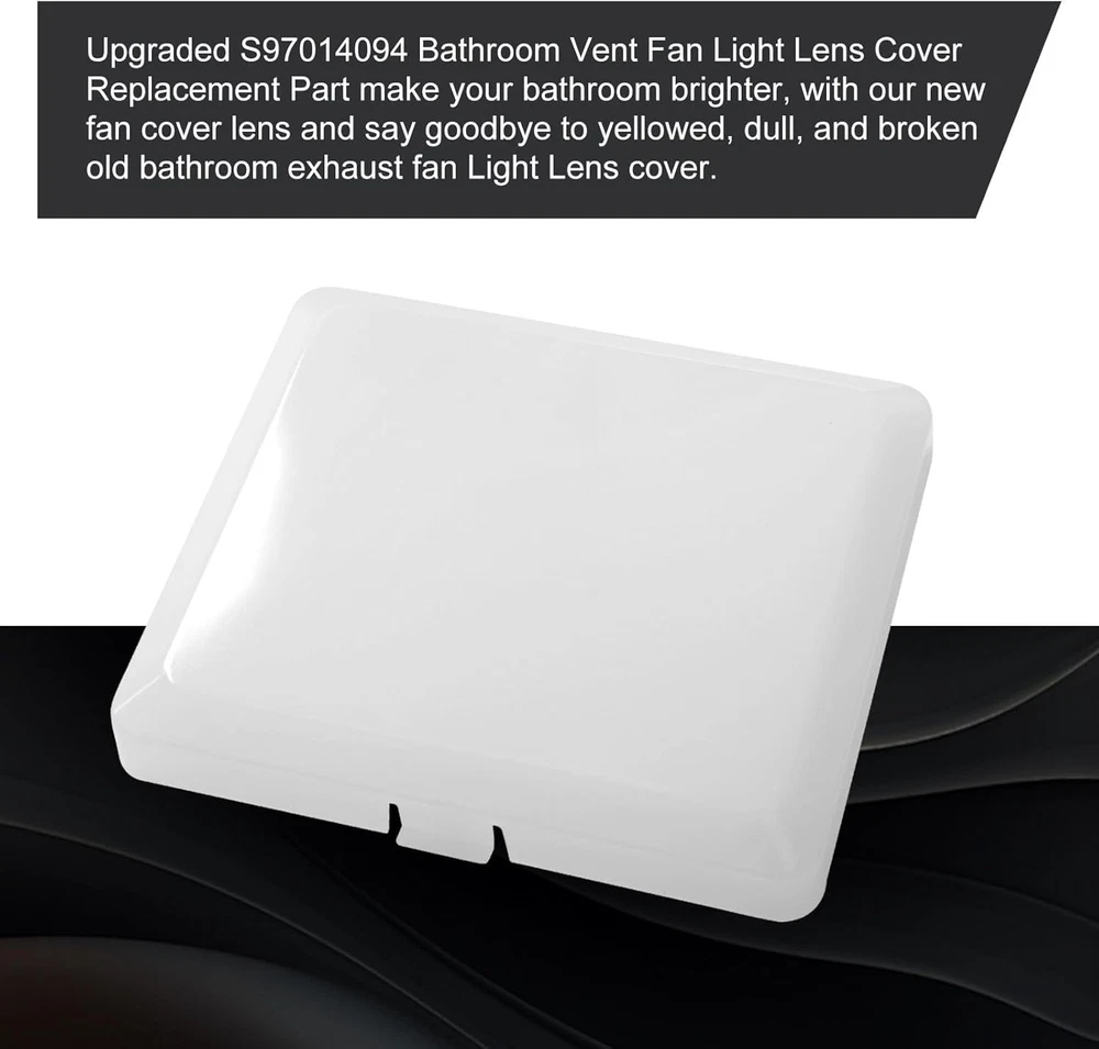 S97014094 Bathroom Vent Fan Light Lens Cover Replacement Part Fit for 1 Pack Description Features: Fits For Broan Nutone Exhaust Fan 678, 679, 679FL, 679FLT, 680, 680FL, 680FLT, M680, HD50L, HD80L. Replacement for S97014094 S97013662 Fan Cover Grille Light Lens Cover, Elevate your bathroom experience with the new fan cover lens. Upgraded S97014094 Bathroom Vent Fan Light Lens Cover Replacement Part make your bathroom brighter, with our new fan cover lens and say goodbye to yellowed, dull, and broken old bathroom exhaust fan Light Lens cover. The bathroom exhaust fan light cover replacement is made of high-quality ABS plastic, which is durable and can withstand moisture in the bathroom environment. Repairs are very simple, just remove the old cover and replace it with a new one. Product Details: Manufacturer: GEAIN Part Number: S97014094 Item Weight: 4.2 ounces Product Dimensions: 2 x 2 x 0.3 inches Country of Origin: China Item model number: S97014094 Color: 1 Pack Included Components: S97014094 Bathroom Vent Fan Light Lens Cover Batteries Included?: No Batteries Required?: No Handling We will ship all orders within 3 business day of payment. Delivery We Do Not Ship Outside of the Continental US. Return Policy All items qualify for returns within 30 days of receipt. Buyer is responsible for return shipping on any item that is not damaged. Feedback We take our reputation seriously, we buy and sell online, so we understand the value of trust. If you are unsatisfied with your order, please contact us and we will work with you to resolve it to your satisfaction.