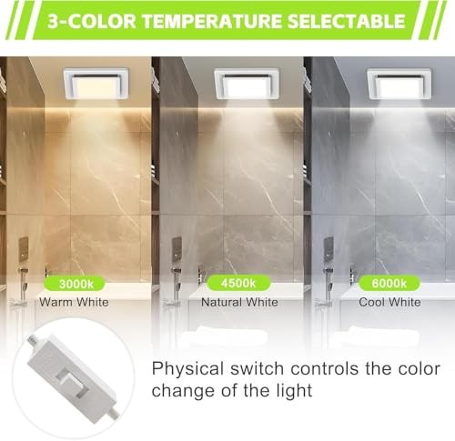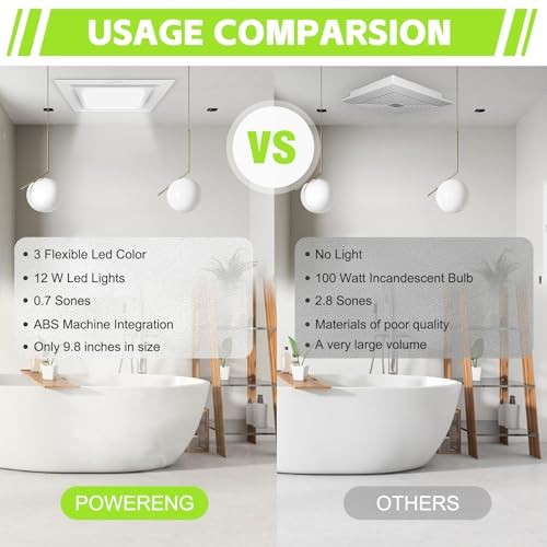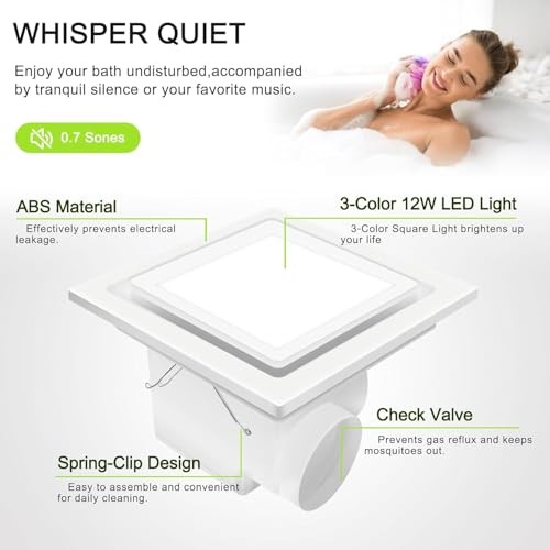 Return Policy Fast Delivery Trusted seller Bathroom Ventilation Fan with Light,With light color controller,12W Square LED 3000K/4500K/6000K,141 CFM,0.7 Sones Quiet Bathroom Exhaust Fan,White(3-Colour LED) Product Description High Performance: The Bathroom Fan with Light operates at a speed of 141 CFM and boasts a whisper-quiet performance at 0.7 Sones. Crafted from durable ABS material, it ensures long-lasting performance. Three Adjustable Colors:3000k, 4500k, or 6000k,The large panel enhances brightness, making it easy to navigate your bathroom at night. The upgraded exhaust fan allows you to change the light color via a physical switch. Easy Installation: The fan and light offer two connection options - they can be operated simultaneously or independently. We recommend separating the fan and light connections to extend the lifespan of the light. Decorative Design: Sleek modern style, the bathroom fan with LED light requires minimal cleaning and prevents steam buildup or foggy mirrors after hot showers. New Upgrade:Rear shell upgraded with internal wiring to replace external wiring, preventing exposed connections and fire hazards. Increased from 4 screw holes to 8 for enhanced stability and to prevent displacement. Internal heat dissipation now replaces external, providing superior cooling performance. Customer Service: Two-years warranty included. The product includes thermal protection functionality; it automatically shuts off when reaching a certain temperature. If you encounter any issues during purchase or installation, please feel free to contact us anytime. Shipping Returns Payment Shipping Shipping is FREE to all addresses other than APO/PO boxes in the lower 48 states. All our stock ships from US-based warehouses. Shipped via USPS or UPS (depending on location and package weight) Unless stated otherwise, all orders will ship within 24-72 hours of your payment being processed. Check our feedback to see the great reviews of FAST shipping we offer. Returns Seller does not accept returns Payment We currently accept payment via eBay managed payments only. Once payment is cleared, we will dispatch your shipment within 1-3 business days. Please refer to the "Shipping" tab for more information regarding shipping speed to your destination.