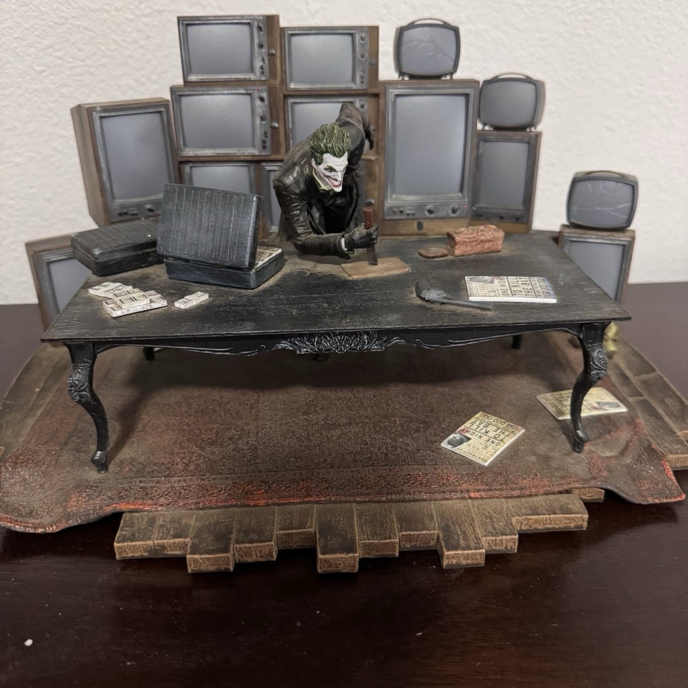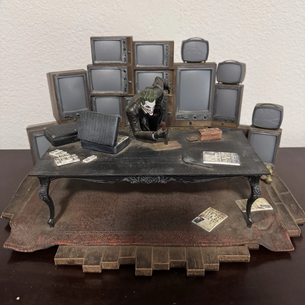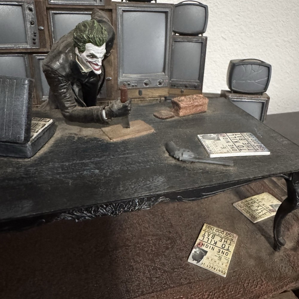 Official Joker statue from the Batman: Arkham Origins Collector’s Edition for PS3. Includes the detailed display with The Joker at a desk surrounded by vintage monitors. Statue only – game, box, and other accessories are not included. Some minor signs of wear due to age, but overall in good condition. Great piece for Batman or DC Comics collectors.