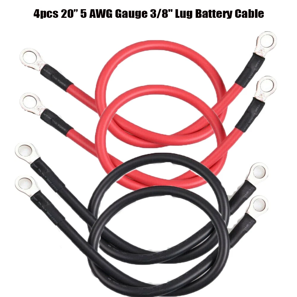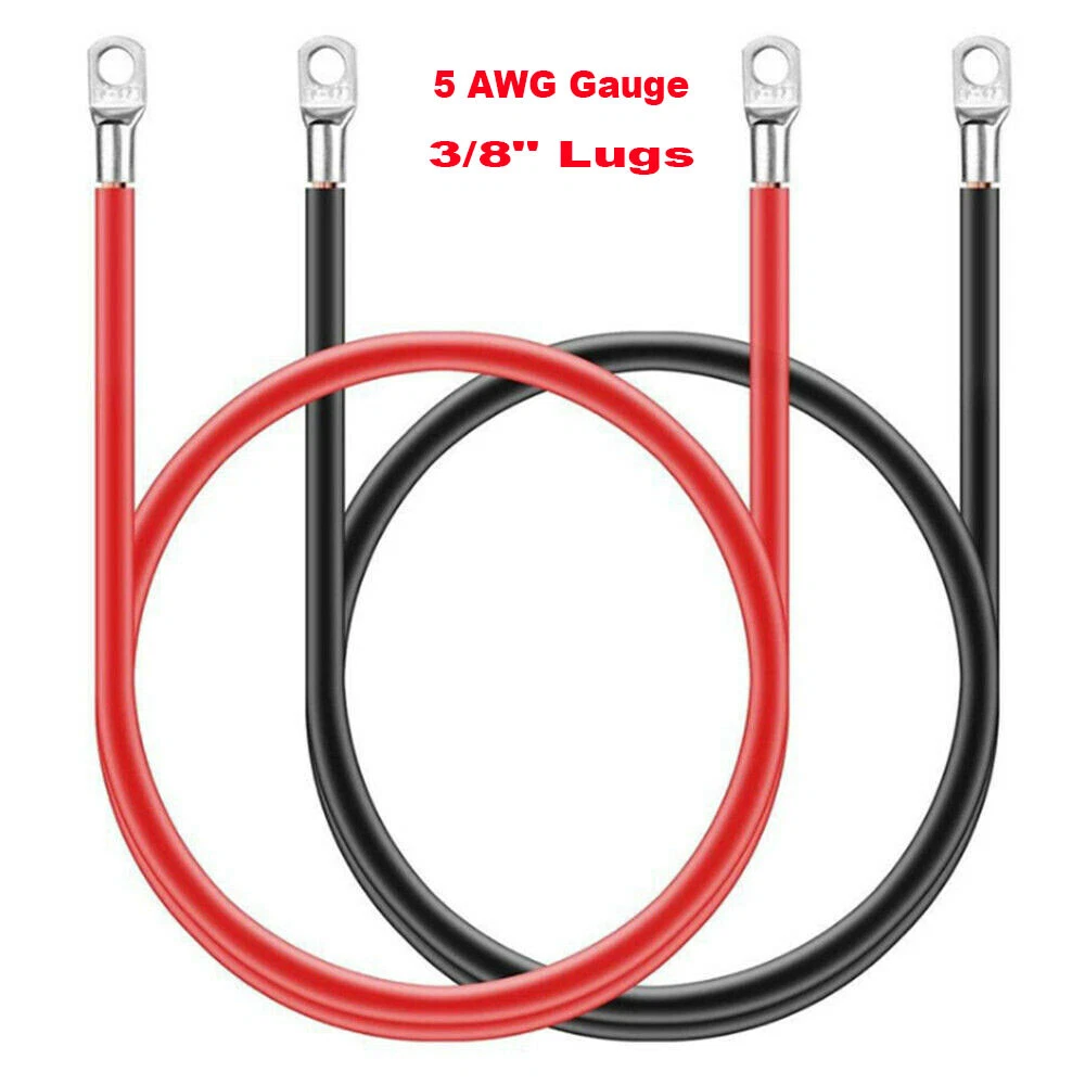 Manufactured with ultra-flexible WindyNation Power-Flex Cable 100% fine stranded PURE COPPER cable for high amperage applications Copper cable lugs are tinned coated and utilize a closed end design for corrosion protection Polyolefin heat shrink tubing applied to form a protective seal. Includes one black cable and one red cable. Simply select cable length and cable lug mounting hole diameter for cable ends. Power-Flex Battery Cable WindyNation's Power-Flex welding battery cable is a highly flexible industrial grade electrical cable manufactured to the highest standards right here in the USA! A high strand cable count combined with a soft, pliable EPDM insulation results in a flexible cable every time. Our cable is resistant to tears, cuts, abrasion, water moisture, and oil based solvents Battery Ground Cable 5AWG Battery Connection Cable Terminal Kit Copper+3/8" Lugs 5 AWG 20 Inch Each Battery Power Inverter Cables w/Tinned Wire Terminals Red Black 3/8 Inch Lugs Copper Parallel Battery Oxygen-Free Wires for Solar Motorcycle Automotive Cars USA STOCK! Fast delivery, Fast received!!! About this item Include: 2 cables, this 5awg battery cable contains a positive (red) and a negative (black) power inverter cable. There is a 3/8" (M10) ring on each end. Compatible: used for car, vehicle, RV, solar application, boat and more, also used for electrical equipment.Easy to Use: each cable have 2 pcs 3/8" (M10) round center hole terminals (already crimped) on both ends, fit for 3/8"(M10) stud. Protective cover: PVC insulating sheath, flexible PVC insulation of battery cable, wear-resistant, waterproof, moisture-proof, flame-retardant and heat-insulating, can withstand the harsh test of the car or marine environment, please rest assured to buy. Material: Pure oxygen-free copper wiring for maximum conductivity. Copper terminals are tin-plated to minimize corrosion, and the oxygen-free copper wiring is a 105 degree flame-retardant outer skin. Manufactured with ultra-flexible WindyNation Power-Flex Cable 100% fine stranded PURE COPPER cable for high amperage applications Copper cable lugs are tinned coated and utilize a closed end design for corrosion protection Polyolefin heat shrink tubing applied to form a protective seal. Includes one black cable and one red cable. Simply select cable length and cable lug mounting hole diameter for cable ends. Nilight 5 AWG 20-Inch Battery Inverter Cables Wire Gauge: 5AWG Cable Length: 20 inches Operational Temperature Range: -15°C to +105°C Cable Material: Pure copper wire & PVC insulated jacket Terminal Material : Tin-plated copper terminal Wide Range of Uses: Used for power applications in cars, RV trailers, golf carts and small marine crafts, also great for small solar cable applications. Package Contents: 1 × Positive Cable with Tin-plated Copper Terminal(Red) 1 × Negative Cable with Tin-plated Copper Terminal(Black) Features Tin-plated Copper Terminal Good stability, wear resistance, corrosion resistance, which improves the oxidation resistance of copper and maintains its conductivity better. Pure Copper Wire Good electrical conductivity, thermal conductivity, stability,pure copper can increase heat dissipation, improve electrical conductivity and improve wire performance. PVC Insulated Jacket Flexible PVC insulation of battery cables resists abrasion, waterproof and moisture proof, flame retardant and heat insulation. Applications Features Why Choose Us Dedicated to communicate with our customers, we provide the superior-quality products and best service for each customer. Professional Manufacturer All Nilight products are made of carefully-selected materials and pass through strict quality check to ensure each of you get superior quality at the best budget. Quick Reply Staffs in our service team have rich experience in after-sales service. E-mails will be quickly responded within 24 hours. Power-Flex Battery Cable WindyNation's Power-Flex welding battery cable is a highly flexible industrial grade electrical cable manufactured to the highest standards right here in the USA! A high strand cable count combined with a soft, pliable EPDM insulation results in a flexible cable every time. Our cable is resistant to tears, cuts, abrasion, water moisture, and oil based solvents. Specification: Material: Resin and Copper. Line gauge: 5 AWG Gauge Pure Copper Tin Coated Cable Lugs Heavy Duty WindyNation's pure copper tin coated cable lugs are heavy duty, pure copper, and meet the standard for UL486 WIRE CONNECTORS AND SOLDERING LUGS. Our cable lugs are ideal for marine and humid environments because the tin coating protects the copper cable lug from corrosion and oxidation. If you need cable lugs for an outdoor installation on your RV, boat, car, truck, golf cart, off-grid wind or solar installation, then WindyNation's tinned lugs are your go to choice! Splice Cables are precisely cut and stripped on automated robotic cable processing machines. Crimp Cable lugs are attached using a 6 ton pneumatic crimper with custom dies, resulting in an ultra-strong, non-removable crimp. Shipping Feedback Payment About us Contact us Shipping Fast shipping by USA LOCAL FAST SHIPPING , Mostly, all of the products will be shipped out within 1 working day after we received the payment and your contact phone number, We always ship to your paypal address, so if your shipping address is not matched with it, please note the address you want us to ship in paypal Why Choose the USA Stock ? 1.We will ship all orders within 1 business day of payment. 2. USA Local Shipping , No Extra Customs Cost to the USA 3. Fast Delivery: 2-5 Working days Delivery 4. Best After-Sales Service!!! Feedback Please leave five stars positive feedback positive comment and Five-Stars . Contact us if you have any question, Give us a chance to serve you, negative feedback could not solve anything . communication Please! Payment We accept all major credit cards, PayPal, and Google Pay. Taxes may be applicable at che