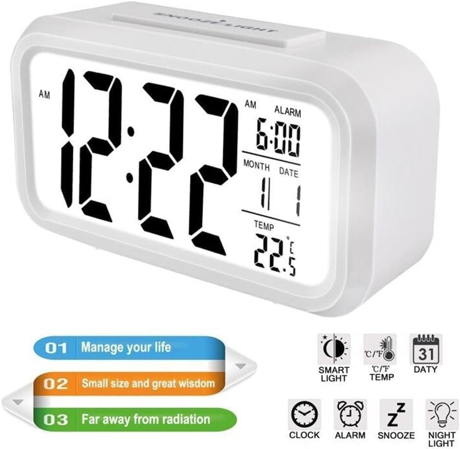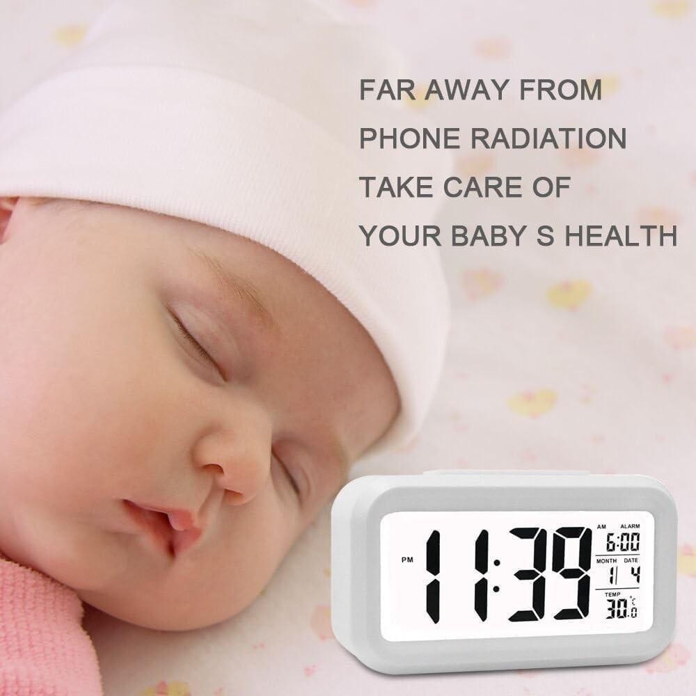 Digital Alarm Clock Battery Operated/Night Light/Indoor Temperature, Small Digit 【Larger Numbers】The digital alarm clock measures 5 1/4 (L) * 2 (W) * 3 (H) inches, small and light. The small clock face is utilized HD LCD screen, can be read easily 【Alarm Clock Battery Operated】This alarm clock is powered by 3 xAAA batteries only (not included), which can keep Constantly Big 4.5'' LED digit time display for more than 6 months. Battery operated (no cords) allows it to be used anywhere you need a clock 【Smart Nightlight 】The digital alarm clock features a night light ,this alarm clock can not only be used as a night light to help parents take care of their children better and makes the room cozy, but also make it easier to check the time in the dark 【Extra Loud Alarm Clock】 This alarm clock has a gradually faster beep noise which continues for 90 seconds. Before the alarm stops itself, top snooze button can be continually pressed to get an extra 8-minute nap.It doesn’t matter how much of a heavy sleeper you are 【Regular Features】Includes snooze time (5 minutes), 12/24 hour time format, calendar, and Indoor Temperature(°C or °F), easy for kids, teens to use, basic bedroom bedside table desk gift alarm clock 3.1 "h x 5.25 "h. Weight: 5.6 oz Item model number C-210-alarm clock Display Type Digital Product Dimensions 5.25"W x 3.1"H Special Feature Alarm, Temperature Display, Night Mode Number of Items 1 Power Source Battery Powered Color White-1 Mounting Type Tabletop Country of Origin China Style Small Digital Alarm Clock Item Weight 5.6 ounces Are Batteries Included No Operation Mode Atomic Frame Material Plastic Age Range (Description) Adult Shape Rectangular Clock Form Travel Alarm Clock Yes Indoor/Outdoor Usage Indoor