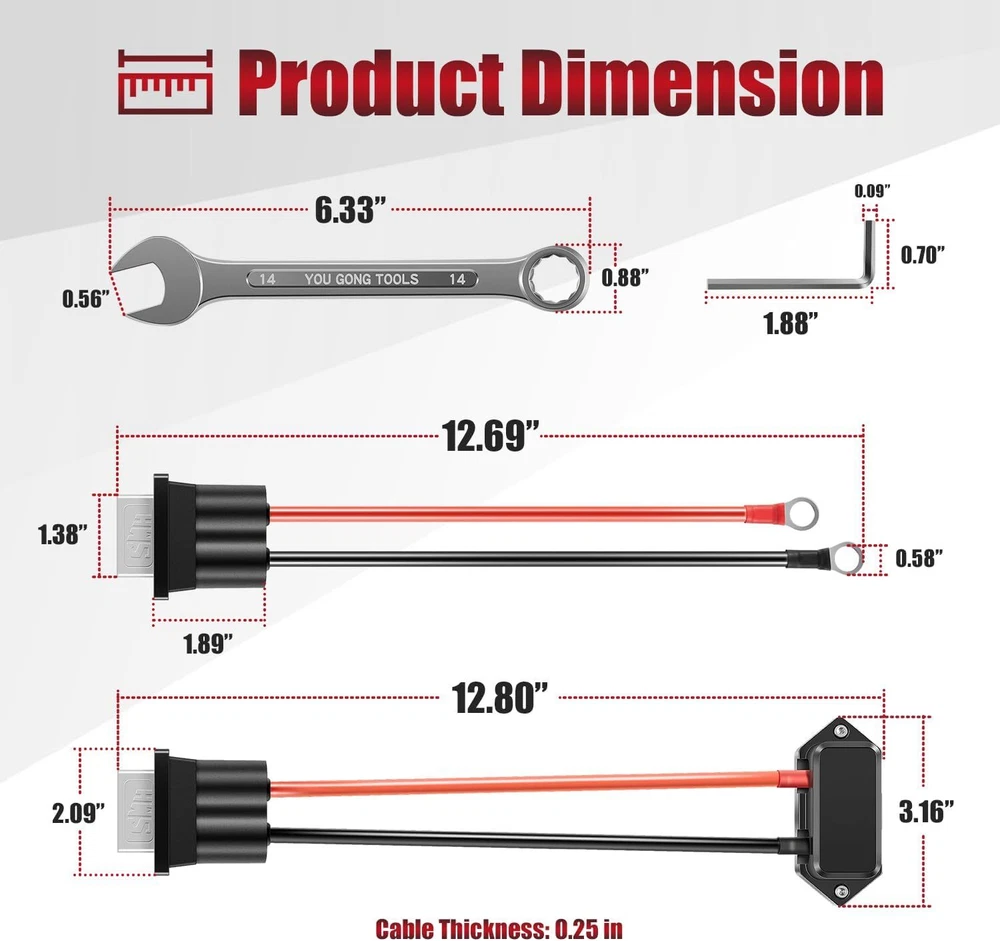Battery Quick Connect Disconnect Connectors Kit for Trolling Motor For Newport 【Well-designed Kit】 Pre-terminated high-quality connector pair with high-quality 8 gauge wire, consist of silicone rubber connector housings, stainless steel hardware and covered connecting pad. Rated at 50 amp continuous current draw, this kit works well with Newport NV, X, Kayak series trolling motors up to 55lb thrust and NK180 brushless kayak motor 【Package Includes】 You will receive a pair of Connectors, and installation tools (Open & Box End Combination Wrench, and Allen Key Wrench). Installation Instruction is also included 【Quick Installation】 The connector with covered connecting pad connects to the trolling motor, and the other connector connects to the battery. this kit allows you to install the connectors without the need for crimping or soldering, allowing for a simple and fast installation 【Easy for Use】 Install the connectors correctly according to the steps, and connect the two connectors when you need to use the trolling motor. Disconnect the connectors when you don’t need to use trolling motor. This kit provides an easy way to add a quick connect/disconnect from your trolling motor to your powered devices, ensuring safety and making the battery more durable 【100% Satisfaction Guarantee】 We are committed to providing excellent products and best service for our customers. If you are not satisfied with the product, you can simply return it. We support a 30-day refund for return and a 12-month warrant 1.All Payments must be Confirmed (Shipping and billing addresses must match) Payment is required within 7 days from the date of the auction ending. 2.We accept PayPal, MasterCard, Visa, American Express, Discover and etc payment. 1.Orders will be ship out within 1 business days via USPS, Or UPS . (Orders from Saturdays, Sundays or holidays will process on next business day and will be ship within 24 hours. ) 2.All of the items are shipped from our Warehouse in USA.It will take about 3 to 5 business days to you. 3.Any defective items received can be replaced or refunded. Please contact us with the item number, eBay ID and defect description. 1.100% Satisfaction Guarantee: If you're not 100% satisfied with our items, simply return it for a full refund in 60 days (Items must be in new condition and in original package). Kindly please feel free to contact us before return. 2.Return or Replacements: Support 12 months' Warranty. All product will be tested in 100% before delivery. If the item is was damaged in transit, kindly please contact us for a replacement or refund (Excluding contrived damage or misuse). Any question, please don’t hesitate to let us know. We try our best to reply to your emails as soon as possible, due to high volume of daily incoming emails, we may not be able to reply your emails immediately. Please allow 24 hours for us to response. your understanding and patience is much appreciated!