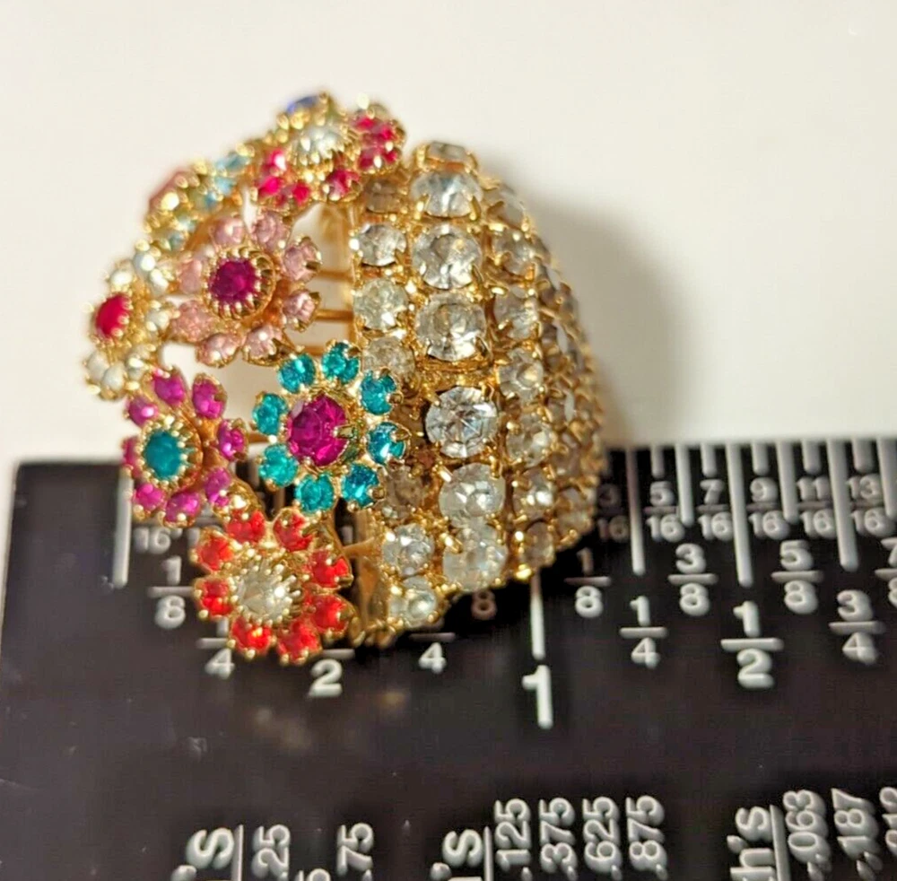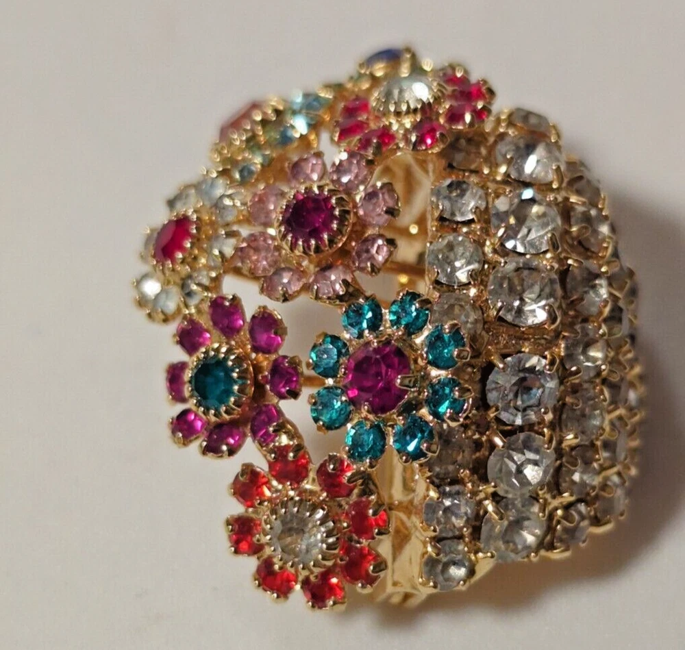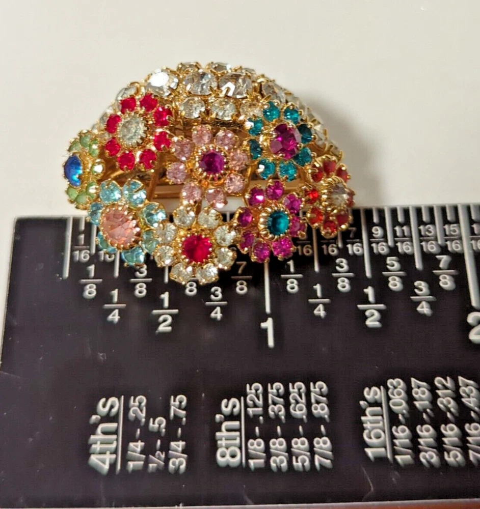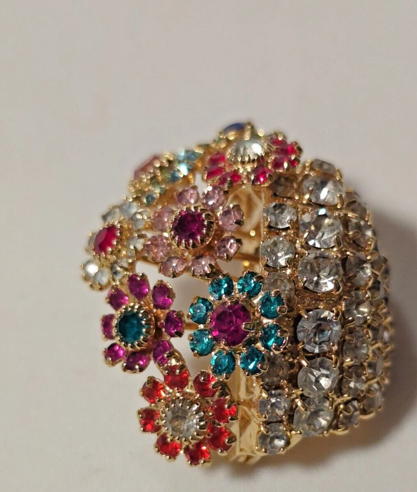 Bauer Flower Basket Pin/Brooch with Clear Rhinestones Basket Multi-Colored Flowers Prong Set Brooch by Dorothy Bauer. In good condition, Preowned and signed on the back. Display not included. **Please do not bid if your feedback is less than 10. ** I've had too many non-payments or receive notice from eBay about other issues. Before you purchase, please avoid anything that would warrant a transaction cancellation and make sure to put the correct shipping address at check out. I won't be able to change your address manually or ship to another address. LOOK AT ALL PHOTOS before bidding! Bid Responsibly. If you are unhappy when you receive the item, communicate with me before leaving negative feedback. The items are preowned or have come from an Estate even when NEW. That means someone never wore them and they have original tags. Please Note: I do not accept offers and do not end my auctions early for anyone. I do not clean any items; I leave that up to the new owner. PLEASE READ: Reminder when shipping first class, it will take longer to ship. The postal service is short staffed, and it takes longer to deliver the package. There is a tracking number. I have found that not all post offices will scan that number, so it may look like it's sitting in one place for a longer time. **If noted shipping USPS Priority mail, that is what I do ship on high priced items, due to cost of the item. **Please do not ask me to ship differently, I will not change shipping. I carefully place items in small box with padding place in a box then package in a priority box. Please email me with any questions