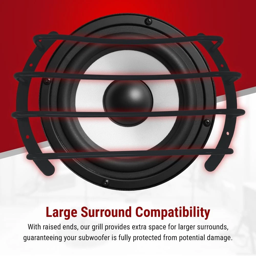 Bbox 10-inch Heavy-Duty Steel Black Bar Grill with Matte Black & Chrome Finish for Woofers - Fully Welded and Ready to Install with Screws - Engineered and Designed in The USA with 1.625" Clearance Product Details Style: SINGLE Size: 10" Brand: Bbox MPN: S10-GB UPC: 636644603811 EAN: 0636644603811 Brand: Bbox Audio Output Mode: Stereo Material: Steel Model Name: S10-GB Speaker Type: Subwoofer Special Feature: Durable Recommended Uses For Product: construction Compatible Devices: Car Stereo, Car Amplifier Subwoofer Diameter: 10 Inches Color: BLACK Included Components: Speaker Box Product Dimensions: 10"D x 6"W x 2"H Is Waterproof: FALSE Number of Items: 1 Control Method: Touch Speaker Size: 10 Inches Power Source: Corded Electric Vehicle Service Type: Car Water Resistance Level: Not Water Resistant Package Type: Standard Packaging Subwoofer Connectivity Technology: Wired Includes MP3 player?: No Specific Uses For Product: construction UPC: 636644603811 Style: SINGLE Global Trade Identification Number: 11 Manufacturer: Bbox Item Weight: 1.54 pounds Country of Origin: China Item model number: S10-GB Is Discontinued By Manufacturer: No Date First Available: August 1, 2016 DURABLE HEAVY-DUTY STEEL CONSTRUCTION: Made of de-burred tube steel, our grill is robust and long-lasting, ensuring maximum protection for your speaker and subwoofer. UNIVERSAL FIT FOR 10-INCH WOOFERS: Our Steel Black Bar Grill is designed to fit most 10-inch woofers, making it a versatile choice for a wide range of applications. LARGE SURROUND COMPATIBILITY: With raised ends, our grill provides extra space for larger surrounds, guaranteeing your subwoofer is fully protected from potential damage. OPTIMAL CLEARANCE: Boasting 1.625 inches of clearance above the woofer, our grill offers ample space for your speaker to breathe, resulting in optimal sound quality. EASY AND QUICK INSTALLATION: Our Steel Black Bar Grill comes with four steel wood screws, making installation a breeze. Engineered and designed in the USA, trust our grill to provide superior performance and protection for your subwoofer and speaker. Description: Upgrade your audio setup with the Steel Black Bar Grill, providing maximum protection for your subwoofer and speaker. Constructed with heavy-duty de-burred tube steel, this grill is made to last. The raised ends of the grill allow for extra-large surrounds, compatible with most 10-inch woofers. With 1.625 inches of clearance above the woofer, this grill provides optimal sound quality, while the sleek matte black and chrome silver finish adds sophistication to your setup. Fully welded and ready to install, this grill includes four steel wood screws for quick and easy installation. Its versatile design makes it suitable for home theatres, car audio systems, and professional sound studios. Measuring 12.3125 inches overall, this Steel Black Bar Grill is designed and engineered in the USA, ensuring exceptional performance and protection for your investment. Enhance your audio experience with the Steel Black Bar Grill today."