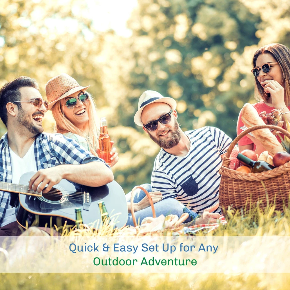 Make your outdoor adventure a memorable one by bringing along the Outdoors Beach Tent Sun Shelter. This sports umbrella boasts a UV protection rating of UPF 50+ and features water repellent material making it ideal for tailgating, outdoor sports, a day at the beach, and more. The lightweight sun shelter has an extended floor mat that zips up into the tent for privacy and also includes a carrying case to make storage and transport a breeze. With easy set-up, this tent eliminates the hassle of pitching a tent and keeps your time spent experiencing sporting events or the outdoors. SATISFACTION GUARANTEED: Outdoors is committed to providing the consumer with the absolute best price and value on our entire line of products, which we ensure by applying a rigorous quality control process. NOTE: This is an exclusive product of Outdoors and ONLY Beach Tent Sun Shelters by Outdoors are GUARANTEED to be genuine. IMPORTANT: Avoid buying counterfeit products and transacting with unauthorized sellers. Look for our logo on the packaging for every one of our products. Outdoors is a registered trademark protected by U.S. Trademark law and will be vigorously defended. PROTECTIVE SUN SHELTER – The tent with 190T material has a UPF 50+ UV rating to protect you and your family from harmful sun rays while at the beach or outside. It is also water repellent to ensure water won't leak into the tent for a fun, and dry, trip! EXTENDED FLOOR MAT – The front porch of this sun canopy helps keep your children and pets off damp ground or hot sand. The extended zippered front porch can be used as a door when you need privacy for changing or when you are away from the tent. CONVENIENT FEATURES – The sun tent features fiberglass poles that stabilize the tent against wind ensuring it stays firmly in place, 4 stakes for extra security, a storage pocket and a rear mesh ventilation window to keep you cool on a hot summer's day. EASY TO SET UP – This lightweight cabana is easy to set up and removes the hassle of traditional tent-pitching! When you are finished, simply place the tent pieces into the included carrying bag to transport or store. PRODUCT DETAILS – Material: 190T Polyester with Water Repellent PU 800mm Coating and B3 Mesh. UV Rating: UPF 50+. Dimensions: (L) 107" x (W) 43" x (H) 58". Fiberglass Poles: 7.9mm diameter. Weighs: 3.5 lbs. Color: Turquoise.