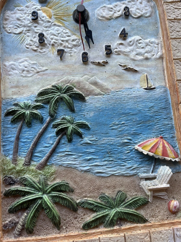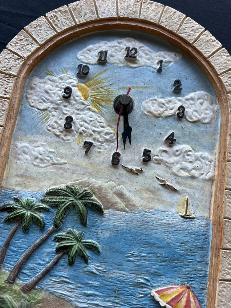 This awesome clock would make a gorgeous wall hanging, however it is tested and does not work! Approx. 10.5x7.5” **For parts or not working** Please keep in mind with all vintage/antique items there will be signs of wear/dust/small cosmetic imperfections. Any additional imperfections shown in photos/description! Thanks for looking! :)