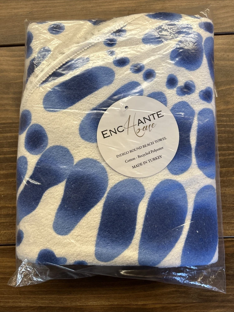 Beach Towel 60" Round Fringe Boho Chic Indigo Blue White Enchante Home Cotton