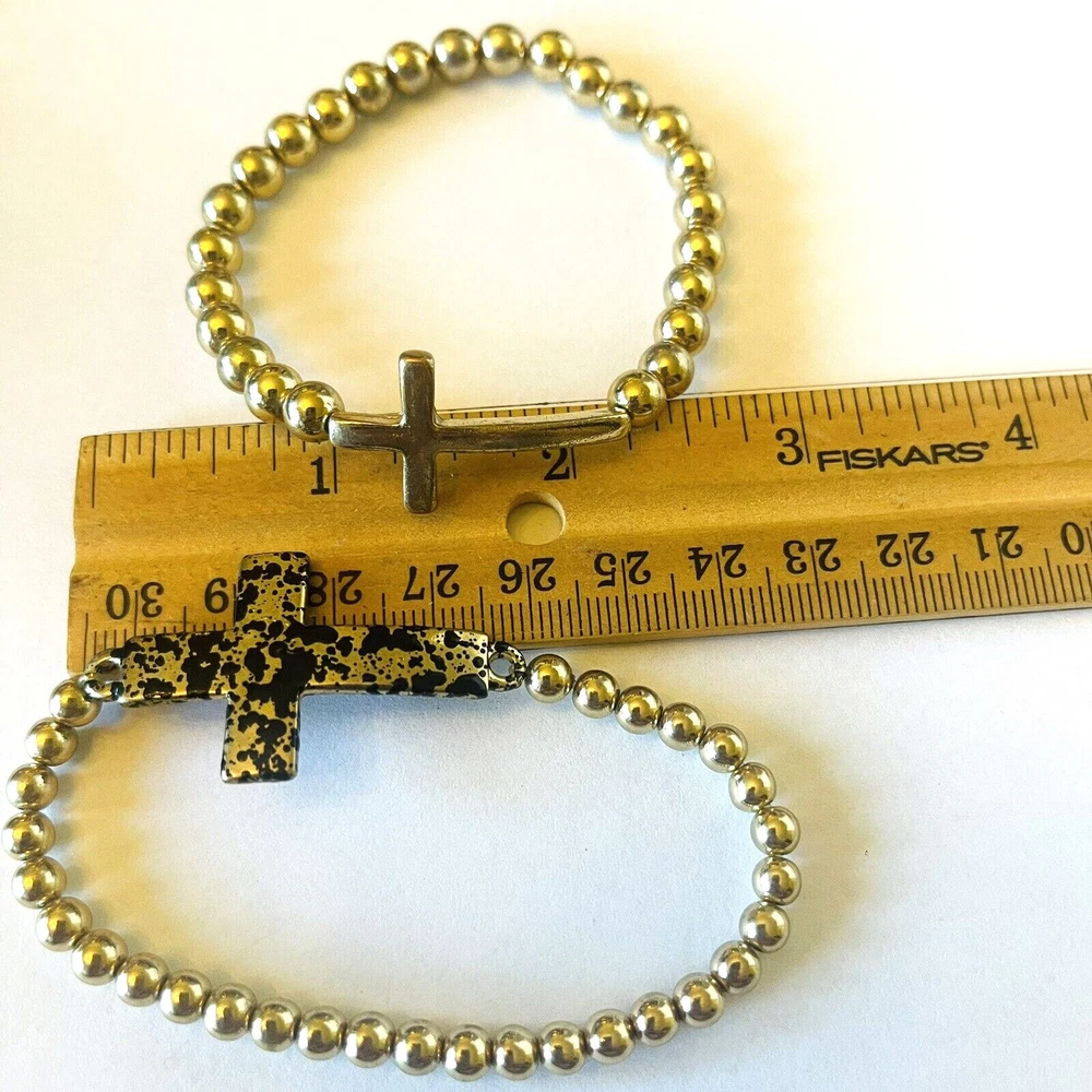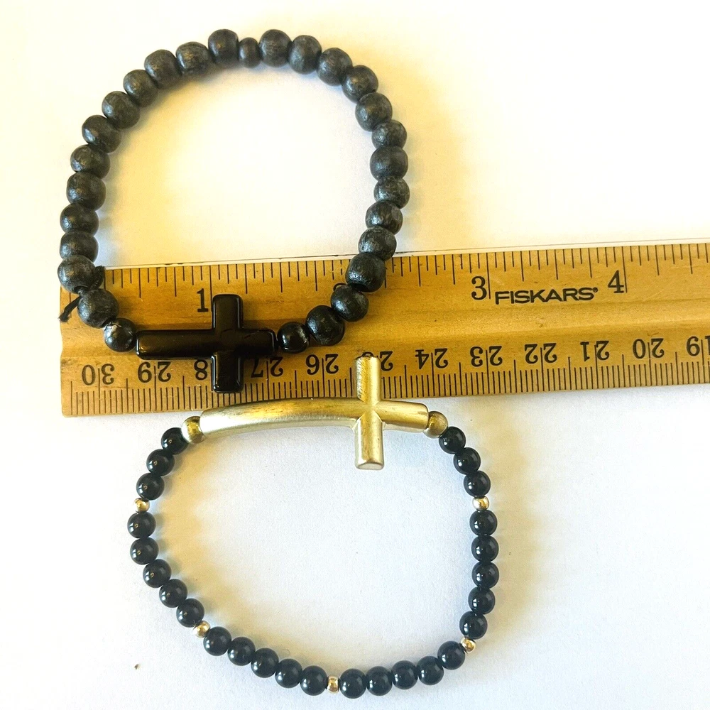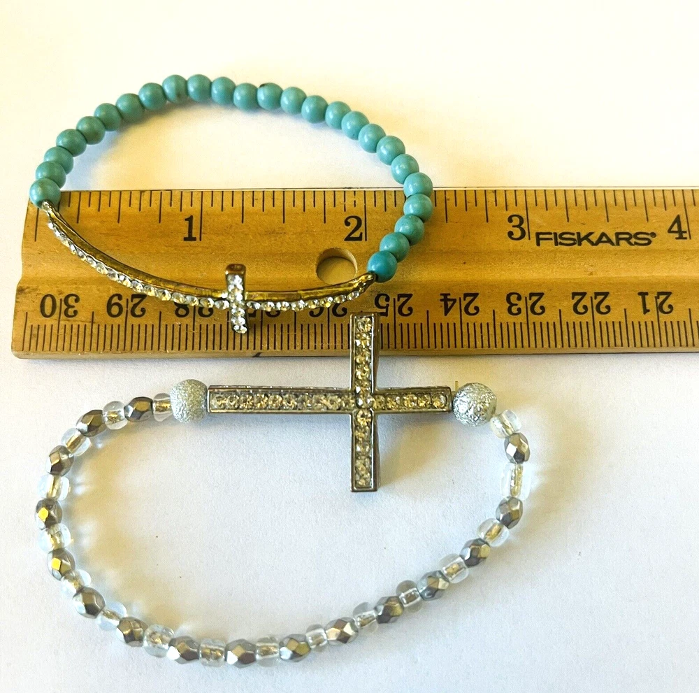 **Contact me to create custom bundles! I will discount multiple item / listing purchases + combine shipping for extra savings!** Collection of 12 bead bracelets that feature cross charms. 10 are elastic stretch bracelets & 2 are silver tone chain. Great lot for bead and charm harvest. Mix of beads include glass, stone, wood, metal, acrylic and plastic. See photos taken with ruler for more detail on size of beads and charms and added description. Beads are in good condition for bead harvest and crafting. Bracelets are wearable but age and condition of elastic varies and can not be trusted. Selling for bead harvest to make jewelry and other crafts. See photos. Zoom for more detail and assessment of condition. Feel free to contact me with questions. I will create custom bundles & give discounts for purchases of more than one item/listing + combine shipping for extra savings. Quotes provided on request. All sales are final. Returns are not accepted; however your satisfaction is important to me. Please reach out if there is a problem with your purchase. Thanks! PassionatelyCollected I passionately collect things.....