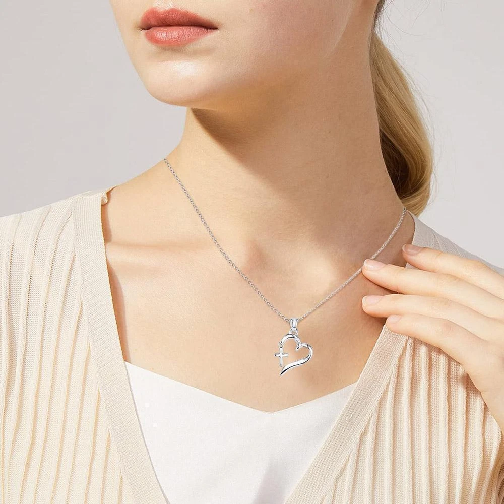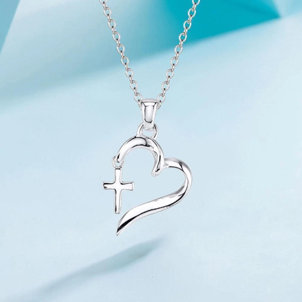 Beaded Heart With Fancy Cross Necklace Silver Color Lot Y1I1 F5 ωι т! M7I2
