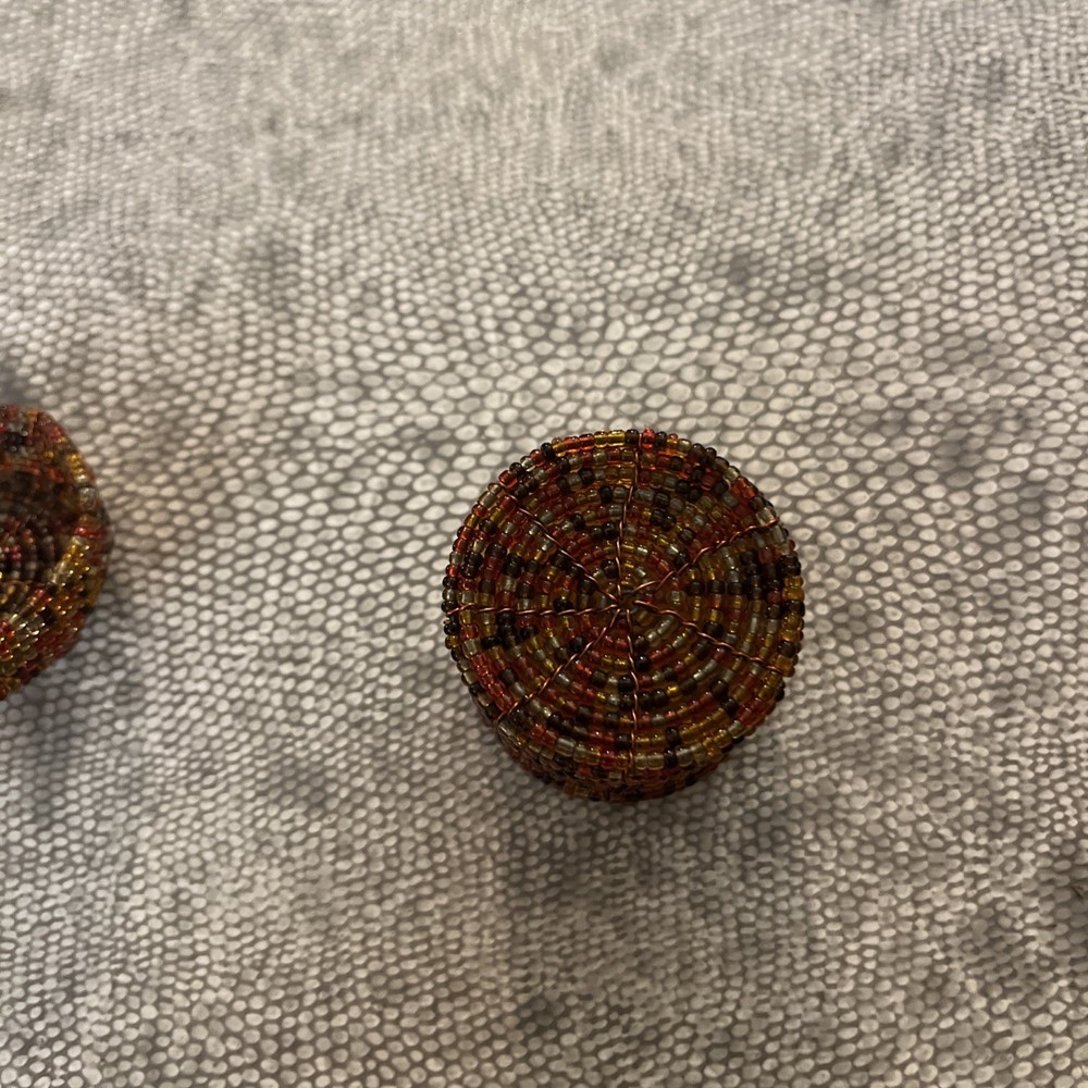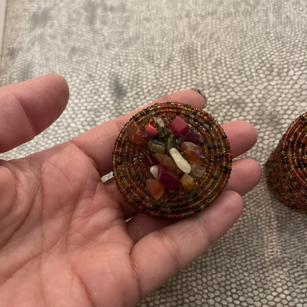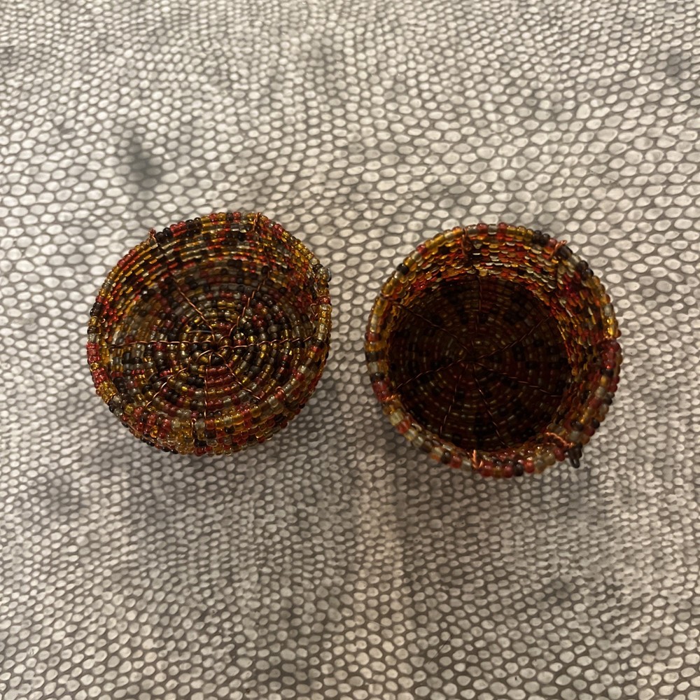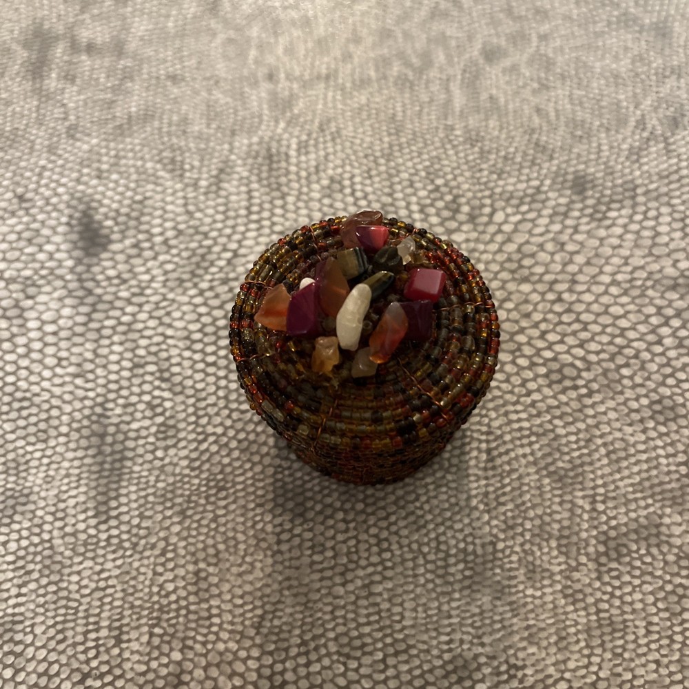 This handmade trinket jewelry box is a unique addition to any collection. The round, lidded box features all-over beading and stones, with a blue glass material that gives it a vintage look. Measuring 2.5 inches in height and 3 inches in length, it is small in size but perfect for storing your favorite jewelry or other small items. The box is suitable for all occasions, and the arts and crafts movement style makes it a great decorative piece for any room. The box comes boxed and ready to display, making it a perfect gift for anyone who loves handmade items.