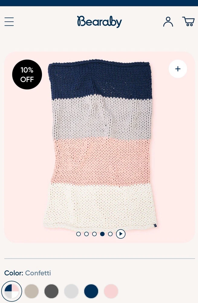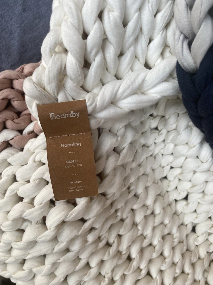 Brand new with tags 8 lb weighted cotton Nappling no longer available in 8 lbs threw bearaby color is confetti a mixture of white, pink, blue and gray Measurements are 40 wide side to side 57 high top to bottom comes with dust bag Track Page Views With Auctiva's Counter