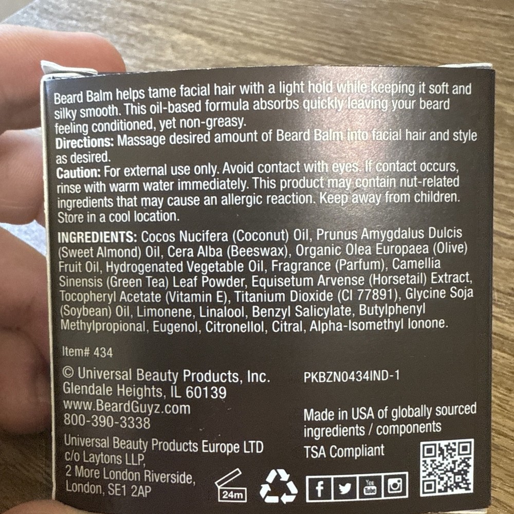 The Beard Guyz Beard Balm is a high-quality product made with natural ingredients like Shea Butter, Coconut Oil, and Beeswax to deeply condition, moisturize, and soften beards. With active ingredients like Black Castor Seed Oil and Soybean Oil, this balm is designed for men and adults looking to maintain healthy and well-groomed facial hair. Made in the United States with cruelty-free formulations, the 3 fl oz Beard Balm is a standard size product that comes in a convenient oil formulation, perfect for taming and nourishing beards.