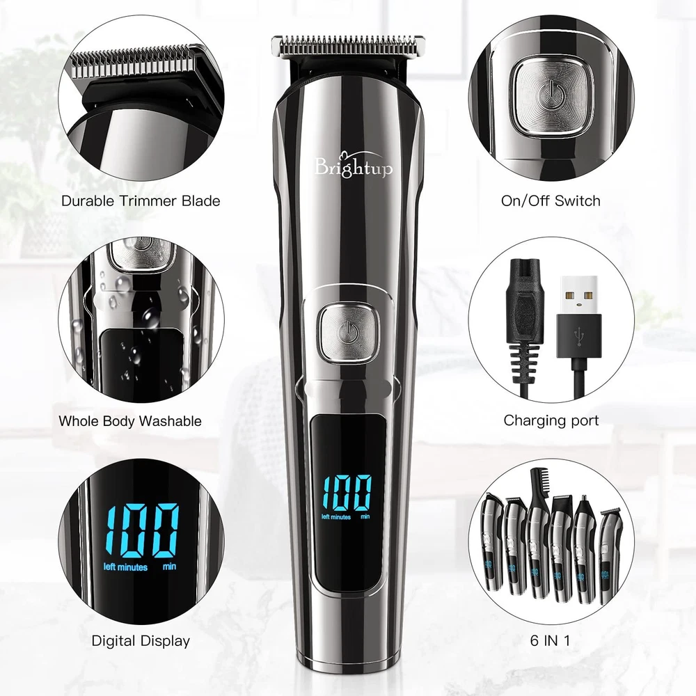 All in One Beard Trimmer for Men Kit: Our Manscape all-in-one kit is designed for precision beard trimming and includes 6 trimmer heads and a stand base for easy organization. It also comes with 6 hair trimmer combs that allow you to control the length and style of your beard, body, face, nose, ear, eyebrows, sideburns, neck, groin, leg, pubic hair, ball or other private parts. Whole Body Washable: Our mens beard grooming kit is designed to be fully washable, making it easy to clean after use. The blades are also detachable and can be cleaned with the brush included in the kit. 2 Speed Modes and Low Noise: Our beard trimmers have 2 speed modes. The 7300 RPM speed is suitable for daily use, while the 8800 RPM speed can cut thicker hair more easily. The high-quality motor produces low noise for a pleasant grooming experience. LED Display and USB Rechargeable: The LED display indicates the battery power and reminds you to charge. The built-in rechargeable lithium-ion battery provides up to 90 minutes of run time per charge, and it only takes about 1.5 hours to fully charge. The cordless design makes it easy to use anywhere and is perfect for travel. Self-Sharpening Stainless Steel Blades: The stainless steel blades are self-sharpening and have a precision gap for close trimming. They are also non-corrosive, preventing rust and skin irritation. Ergonomic Design with Travel Lock: The smooth curved handle is comfortable to hold, and the 3-second long press lock design ensures better use. Gifts for Men and One-Year Warranty: This beard trimming kit makes great gifts for men, fathers, husbands, boyfriends, and sons. We also provide a one-year warranty for the beard trimmer. Contact Us: We provide fast and convenient customer service. If you have any questions about our products, please don't hesitate to call us directly at.