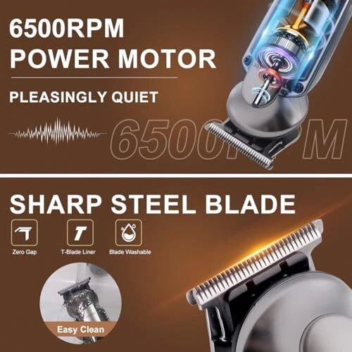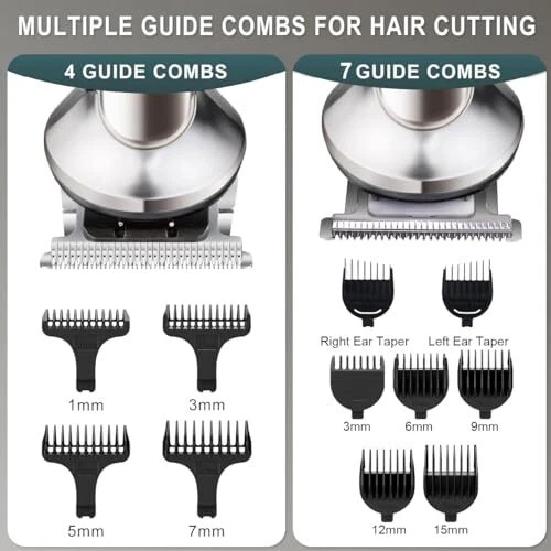 Multifunctional Shaving Kit For Head To Toe Use - This is a high quality all in one machine that includes 7 trimmer heads, 12 guide combs,a hair comb, a travelling bag,a hair-cutting cape, Covers all hair cutting tasks, from hair, face, beard, nose, ear, body, pubic area. This is professional men's grooming kit and gifts for him. 5 Stars Performance - With a motor that speeds up to 6500RPM, the beard kit delivers a quiet and efficient shaving experience. Easy to clean the blade by rinsing under water.(Note: please don't immerse the whole trimmer in water) Long Battery Life with LED Display - Our rechargeable manscape trimmer equipped with a powerful Lithium-ion battery. With just 1.5 hours of charging time, you'll get 180 minutes of use! Humanized LED display design shows remaining power and reminds you to charge in time. Multiple Guide Combs For Hair Cutting - This trimmer kit includes a T-blade trimmer equipped with 4 guide combs(1mm,3mm,5mm,7mm), a hair clipper equipped with 5 guide combs(3mm,6mm,9mm,12mm,15mm) , which can satisfy all your grooming needs according to your hair length.The beard trimmer is equipped with 1 adjustable positioning comb for 1/2/3/4/5/6/7/8/9/10mm, which is suitable for trimming and styling beard/sideburns. And body hair trimmer head is equipped with 3/6/9mm comb for trimming hair on various parts of your body Prime Gifts for Men With One Year Warranty - Surprise your husband or any special man in your life with the perfect gift for his birthday, Father's Day, Christmas, or Valentine's Day. If you encounter any problems, don't hesitate to contact us. We offer a one-year warranty and are dedicated to providing a satisfactory solution for all our customers.