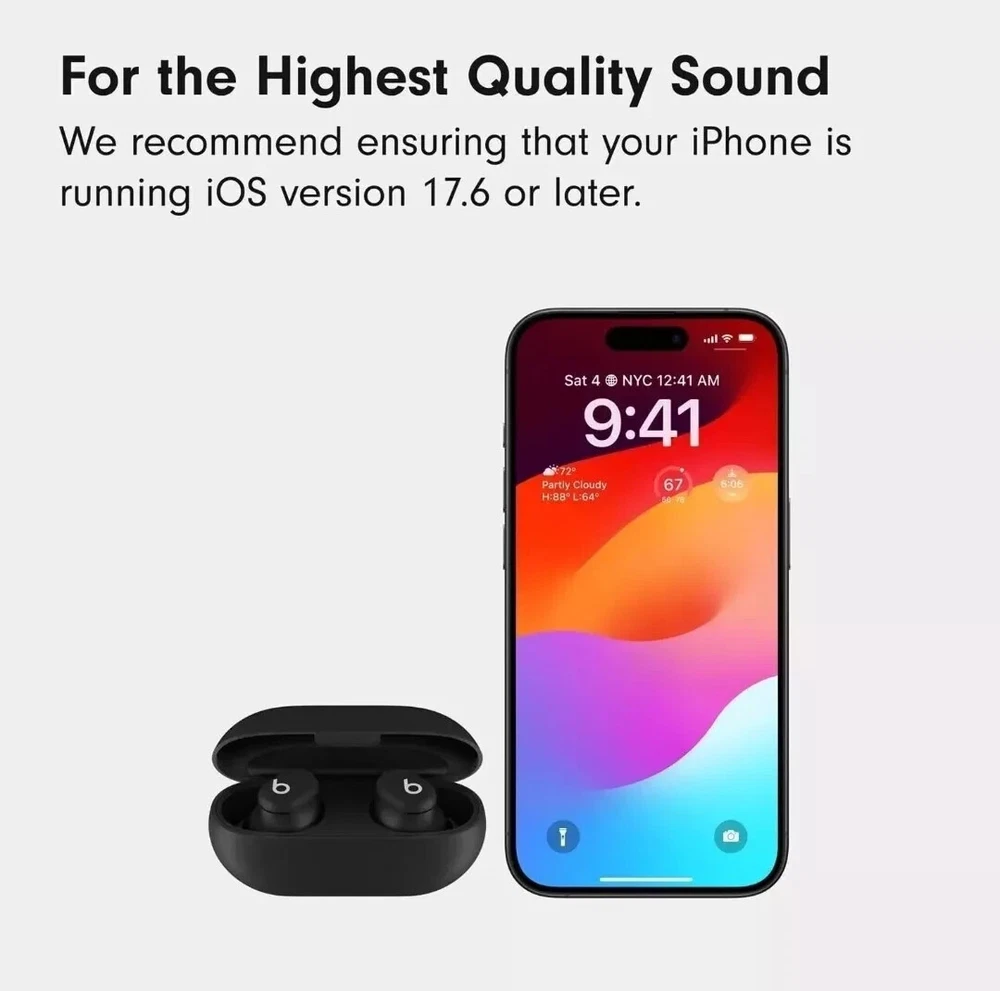 Open Box These are open box items. All of the boxes have blemishes. These have been fully tested, will connect to bluetooth, factory defaulted and sanitized. Highlights Custom acoustic architecture for big Beats sound with full range and clarity. The smallest case we’ve ever made, making these powerful earbuds the perfect on-the-go companion. Dual-layer drivers minimize distortion, ensuring high-fidelity sound. Purposefully positioned axial-aligned drivers deliver sound directly to your ears. Laser-cut vents further improve audio performance while relieving pressure for added comfort. Extra ear tips sizes to fit a wider range of ears. Up to 18 hours of battery life. Fast Fuel, a 5-minute charge gives up to 1 hour of playback. Charge directly from your phone, tablet or laptop for extra power on the go. Dual compatibility for iOS and Android devices including seamless one-touch pairing. Each earbud features custom-designed microphones powered by an advanced noise-learning algorithm for exceptional call quality. Extended range and fewer dropouts thanks to industry-leading Class 1 Bluetooth®. What’s in the box: Beats Solo Buds earbuds, carrying case, ear tips with four size options, warranty card. (Power adapter and USB-C charging cable sold separately) Description Beats Solo Buds Looks tiny. Sounds huge. Featuring the tiniest case we’ve ever made, these mighty small wireless earbuds are jam-packed with incredibly big sound. • Fully Custom Acoustic Architecture • Ergonomic Design for a Natural Fit • Up to 18 hours of Battery Life • Compatible with both iOS and Android Sound Designed for music first. Every design decision focused on accurate music reproduction — from the drivers to the vents to the position of each intricate component inside. The result? Cleanly balanced tuning that gives you the full range and emotion of all your favorite music, as the artists intended. Custom-built sound system. Dual-layer drivers minimize micro-distortions to ensure high-fidelity sound with uncompromising clarity and warmth. Each fully custom driver is positioned parallel to the ear nozzle to deliver sound optimally to your ears. Size Our smallest case. Ever. Beats Solo Buds feature the tiniest case we’ve ever made, making these powerful earbuds the ultimate on-the-go companion. All about airflow. Each bud’s laser-cut vents are engineered to improve audio performance, especially for bass, while gently reducing air pressure for extra comfort. Comfort Fit for any ear. The earbuds’ ergonomic design features nozzles angled to match the natural shape of the ear canal. Beats Solos Buds come with multiple ear tip sizes — including our newest extra-small option — to help ensure ultimate comfort and passive noise isolation. Battery Charge from your phone. Or tablet. Or wall outlet. When it’s time to recharge, seat your earbuds in the case while connected to a USB-C cable. A 5-minute Fast Fuel charge provides up to 1 hour of listening time³ when you need it quick. Battery all day. Beats Solo Buds are built for extended listening, featuring up to 18 hours of battery life and a comfortable, ergonomic design. Compatibility Works with iOS. And Android. Native compatibility ensures seamless one-touch pairing, automatic pre-pairing across your devices, plus Find My or Find My Device — for everyone. Call Quality Crystal-clear calls. Each earbud is equipped with a custom-designed microphone powered by an advanced noise-learning algorithm to help deliver exceptional call quality. Enjoy extended range with fewer dropouts thanks to industry-leading Class 1 Bluetooth®. Controls On-device controls. Customizable on-ear functions allow you to control your music, take calls and activate your voice assistant by pressing the ‘b’ button. You can also configure the ‘b’ button in iOS settings or your Beats app to control your volume. Serial Number Recording: For security and order tracking purposes, we record the serial number for each order. Restocking Fee: Please be aware that a 15% restocking fee will be applied in the following situations: mistaken orders, invalid shipping addresses provided, change of mind, or personal dislike of the product to cover the nonrefundable shipping fee on USPS. In the Box: Beats Solo Buds earphones Carrying case Ear tips (Power adapter and USB-C charging cable sold separately)