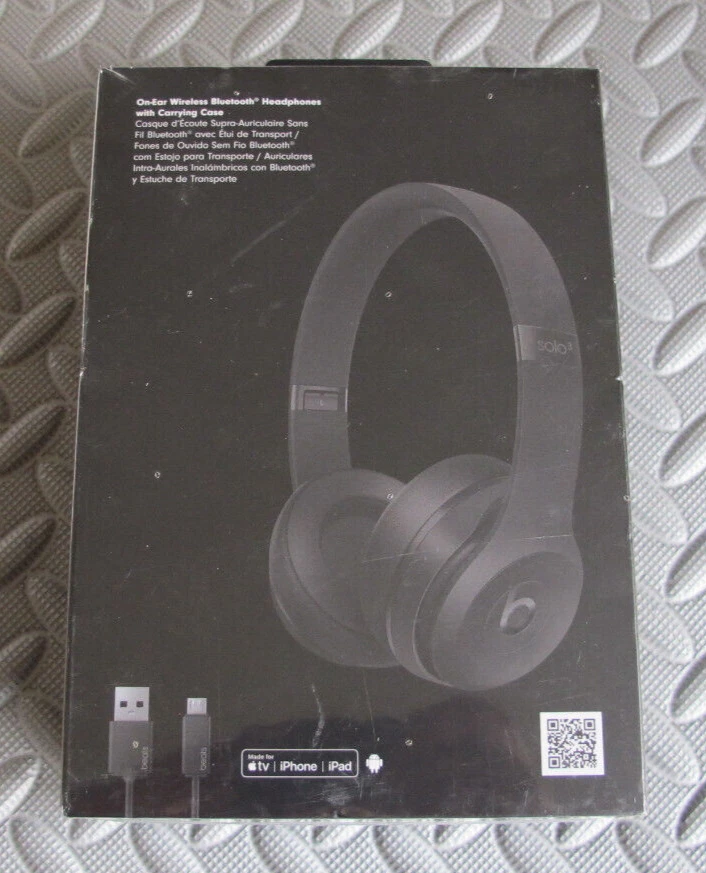 Beats Solo³ Wireless On-Ear Headphones - Matte Black Model : MX432LL/A High-performance wireless Bluetooth headphones Features the Apple W1 chip and Class 1 wireless Bluetooth connectivity With up to 40 hours of battery life, Beats Solo3 wireless is your perfect everyday headphone Compatible with iOS and Android devices With Fast Fuel, 5 minutes of charging gives you 3 hours of playback when battery is low Adjustable fit with comfort-cushioned ear cups made for everyday use Sleek, streamlined design that’s durable and foldable to go everywhere you do Take calls, control your music, and activate Siri with the multifunction on-ear controls The award-winning sound and design you’ve come to love from Beats, with premium playback with fine-tuned acoustics that maximize clarity, breadth, and balance What's in the box - Beats Solo3 Wireless headphones, Carrying case, 3.5mm RemoteTalk cable, Universal USB charging cable (USB-A to USB Micro-B), Quick Start Guide, (USB power adapter sold separately)