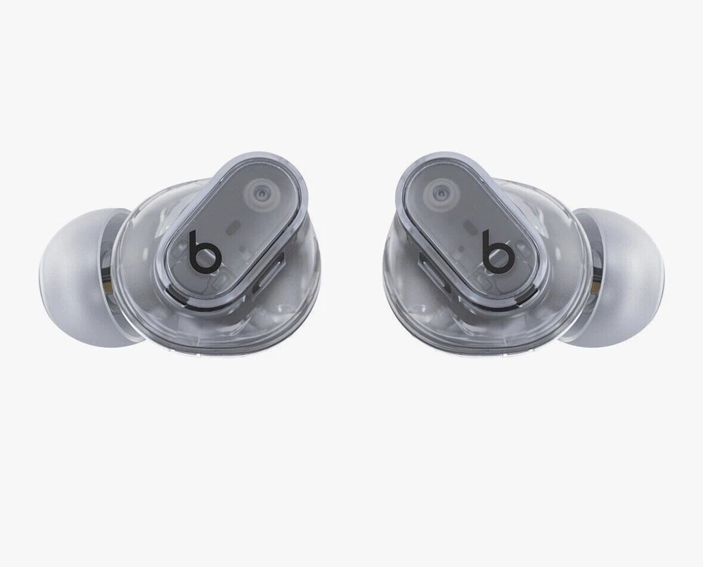 Beats Studio Buds – True Wireless Noise Cancelling Earbuds Clear / OPEN BOX LIKE NEW CNDITION 100% AUTHENTIC BEATS ALL SERIAL NUMBER HAS BEEN RECOREDED IN OUR STORE Included Items BEATS BY DR. DRE - BEATS STUDIO BUDS + TRUE WIRELESS NOISE CANCELLING EARBUDS - TRANSPARENT Beats Studio Buds + deliver rich, premium sound in a pocketable design, wherever you go. Featuring powerful, balanced acoustics, Active Noise Cancelling, Transparency mode, high-quality calls, up to 36 hours of battery life¹, enhanced Apple & Android compatibility, and 4 ear tip options to ensure a custom fit and great sound Beats Studio Buds + Earbuds Pocketable charging case Eartips with four size options USB-C to USB-C charging cable Quick Start Guide Warranty card Features Feel the emotion of powerful, balanced sound from Beatscustom acoustic platform Active Noise Cancelling (ANC) adapts to your personal fit to keep you immersed in the music Transparency mode blends your listening experience with the world around you Up to 36 hours of total battery life (9-hour earbuds + 27-hour charging case)¹ Enhanced Apple and Android compatibility with one-touch pairing and deeper ecosystem integration² Crisp, clear call performance from upgraded, voice-targeting mics Sweat and water resistant earbuds (IPX4-rated)³ Four soft eartip sizes provide a comfortable, stable fit and an acoustic seal for great sound quality Spatial audio for Dolby Atmos surrounds you with sound Extended range and fewer dropouts with Class 1 Bluetooth® Pocket-sized charging case with USB-C connector ¹ Testing conducted by Apple in March 2023 using preproduction Beats Studio Buds + and Charging Case units and software paired with iPhone 13/iPhone 14 units and prerelease software. The playlist consisted of 358 unique audio tracks from the iTunes Store (256-Kbps AAC encoding). Volume was set to 50% and Active Noise Cancellation and Transparency were turned off. Testing consisted of full Beats Studio Buds + battery discharge while playing audio until the first Beats Studio Buds + stopped playback. Battery life depends on device settings, environment, usage, and many other factors. ² Requires an iCloud account and a compatible Apple device running the latest operating system software or a compatible Android device running Android 8.0 or later, with Google Play Services enabled. ³ Beats Studio Buds + are sweat and water resistant for non-water sports and exercise. Beats Studio Buds + were tested under controlled laboratory conditions, and have a rating of IPX4 under IEC standard 60529. Sweat and water resistance are not permanent conditions and resistance might decrease as a result of normal wear. Do not attempt to charge wet Beats Studio Buds +; refer to https://support.apple.com/en-us/HT209542 for cleaning and drying instructions. The charging case is not sweat or water resistant. Compatible hardware and software required. Works with compatible content in supported apps. Not all content available in Dolby Atmos. Specifications True Wireless: true Battery Life Provided by Charging Case: 27 hours Sound Isolating: true Built-In Microphone: true Battery Life: 9 hours Water Resistant: true Wireless Connectivity: Bluetooth Connection Type: Wireless Manufacturer's Warranty - Labor: 1 year Manufacturer's Warranty - Parts: 1 year Rechargeable: true Model Number: MQLK3LL/A Color Category: Clear Headphone Fit: In-Ear Carrying Case: true Charging Accessory Included: Case Works With: Siri Product Name: Beats Studio Buds + True Wireless Noise Cancelling Earbuds Charging Interface(s): USB Type C Ear Tip Sizes Included: Extra small, Small, Medium, Large Brand: Beats by Dr. Dre Color: Transparent Noise Cancelling (Active): true