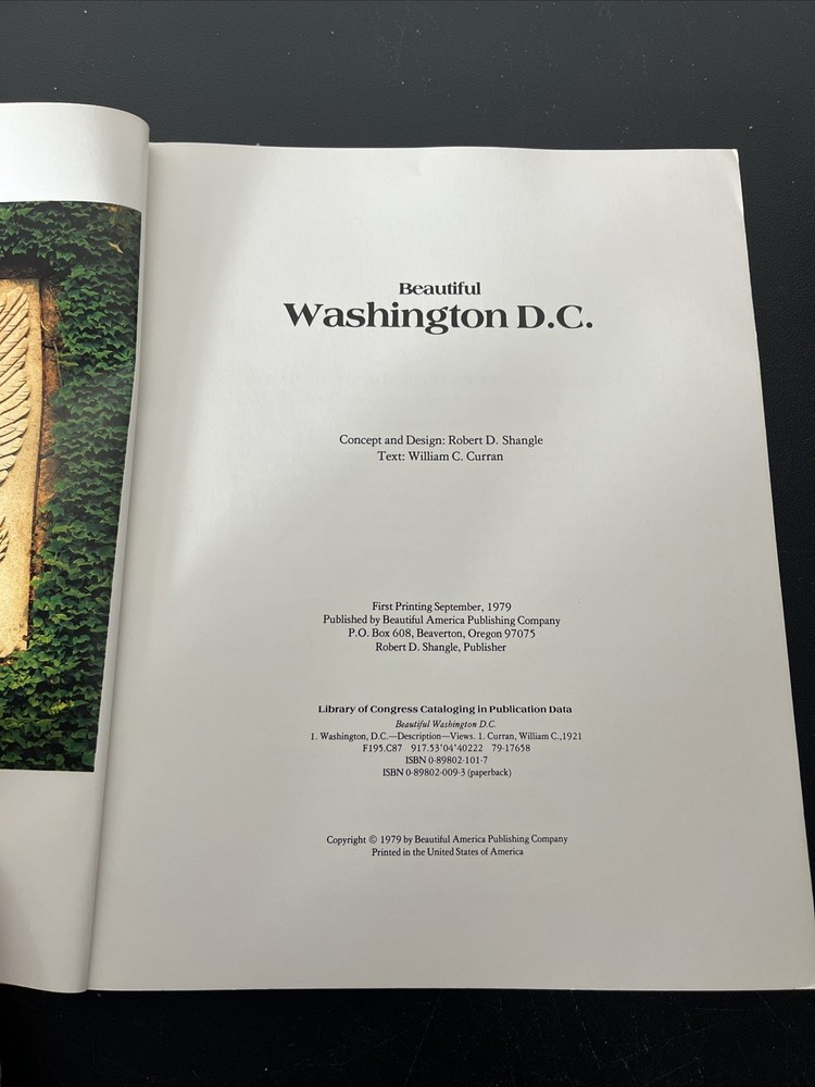 Explore historic landmarks and stunning photography in Beautiful Washington, D.C., a vintage 1979 photo book published by Beautiful America Publishing. First edition, softcover, featuring concept and design by Robert D. Shangle with text by William C. Curran. • First Printing: September 1979 • Publisher: Beautiful America Publishing Company • Softcover, full-color photos throughout • ISBN: 0-89802-009-3 Condition: Gently used with minor shelf wear on cover. Pages clean and unmarked. Great for collectors of Washington D.C. memorabilia or fans of Americana photography.