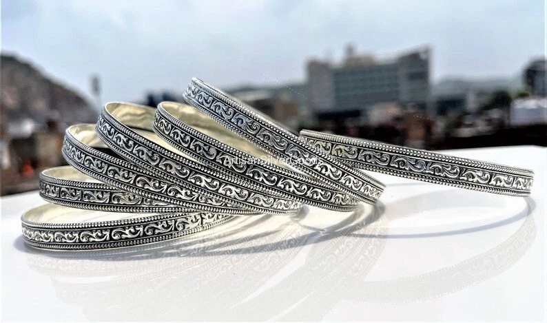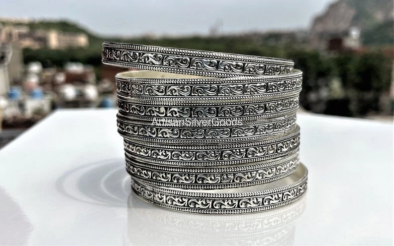 Welcome To My Shop Beautiful Silver Bangle Set Handmade 925 Sterling Silver Bangle set 7 day Bangle Simple Set Bangle 7 Set Off Bangles Stacking Bangles All the jewelry made of 925 Sterling silver Handmade Jewelry We make the jewelry with lots of love 100% Quality Jewelry You will get well finished jewelry **************************************************************** Shipping Details: We ship the order through Dhl, UPS shipping service which is track able. We accept the expedited shipping service. ***************************************************************** IF YOU HAVE ANY QUESTION PLEASE FEEL FREE TO ASK