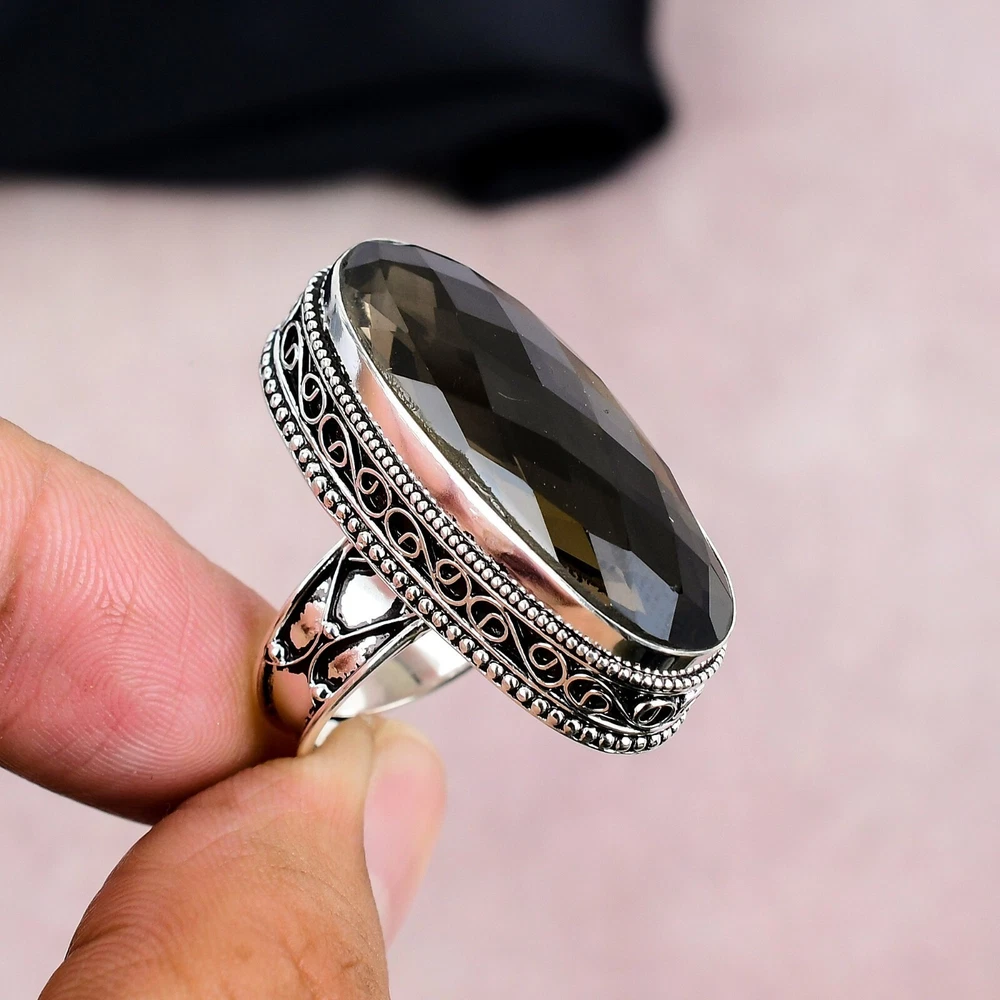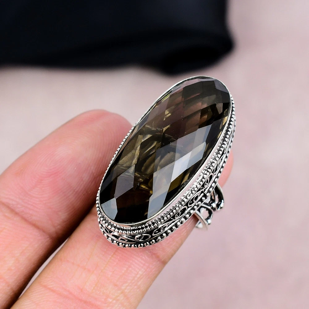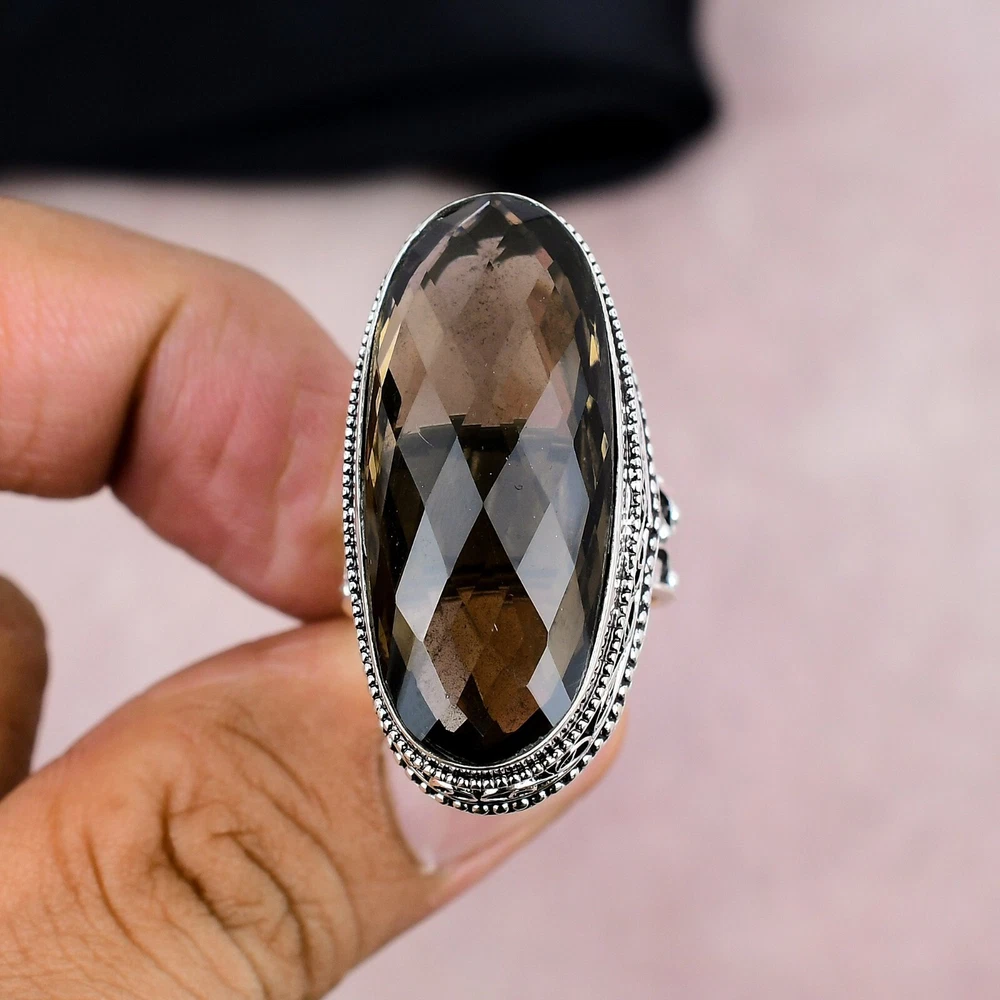 Beautiful Smoky Quartz Gemstone Silver Ring 925 Sterling Silver Handmade Jewelry