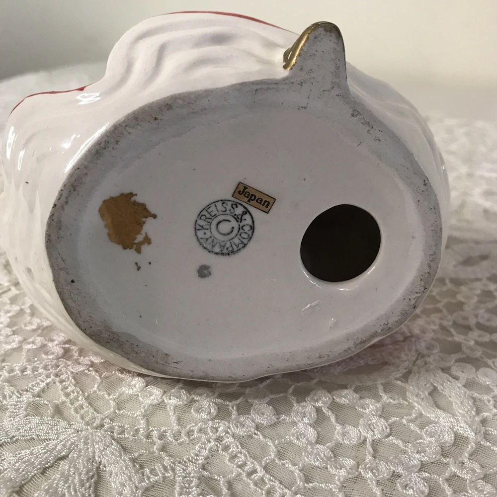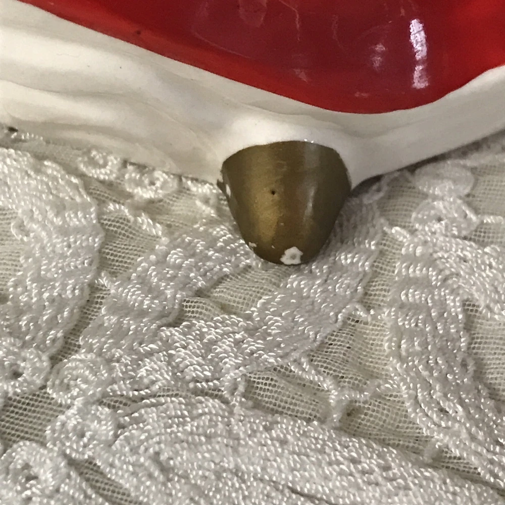 She is beautiful! There are a few missing rhinestones on her dress. Her foot has sone missing paint but it is not chipped. Sone missing red paint in tiny miniature spots bit overall awesome! I will package carefully so she doesn’t get broken or cracked in shipment.