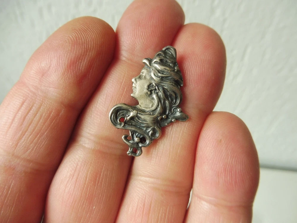 Beautiful, old brooch, 925 silver, depiction of a woman, Art Nouveau The description of this item has been automatically translated. If you have any questions, please feel free to contact us. Very beautiful, old silver brooch, Art Nouveau. Woman, 925 silver, beautifully crafted. Age-related, good condition (see photos). Dimensions: 3.2cm high, 2.2cm wide, 3.6 grams heavy. Beautiful, old silver brooch! You can find many more beautiful, interesting, old and antique things in my other articles, take a look! Legal provisions Seller's notes This article is excluded from the General Product Safety Regulation 2023/988 (GPSR). Because they are either animal by-products, antiques, collector's items or works of art. Very beautiful, old silver brooch, Art Nouveau. Woman, 925 silver, beautifully crafted. Age-related, good condition (see photos). Dimensions: 3.2cm high, 2.2cm wide, 3.6grams heavy. Beautiful, old silver brooch! You can find many more beautiful, interesting, old and antique things in my other articles, take a look! Legal provisions Seller's notes This article is excluded from the General Product Safety Regulation 2023/988 (GPSR). Because they are either animal by-products, antiques, collector's items or works of art. Epoche Jugendstil (1895-1910) Marke siehe Beschreibung Produktart siehe Beschreibung