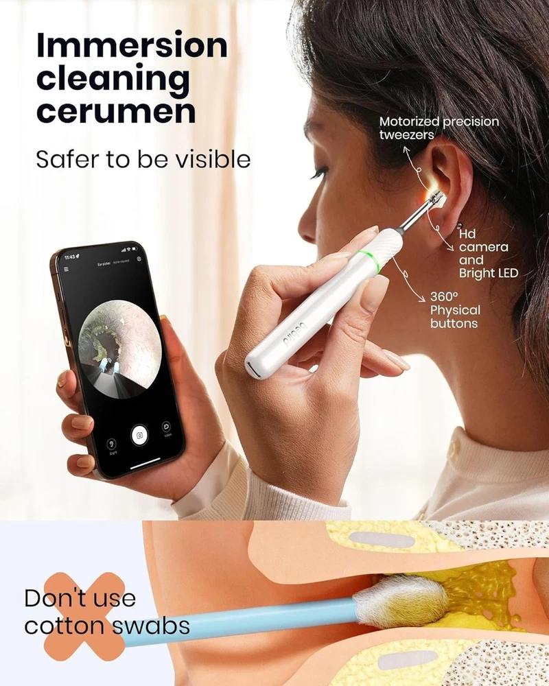 Bebird Note5 Pro Ear Camera, Ear Wax Removal Tool Camera with Ear Tweezers, 10 Megapixels Ear Otoscope Camera, Earwax Removal Kit, 12 Ear Spoon, Base Storage, Ear Cleaner Kit for Ear Cleaning (White) Product Details Package Dimensions : 7.8 x 3.39 x 2.44 inches; 9.59 ounces Item model number : Bebird Note5 Pro Date First Available : October 24, 2024 Manufacturer : Bebird Country of Origin : China Upgraded Note5 Pro Wax Removal: The world's first ear cleaner with tweezers designed for people with sensitive ear canals. High precision tweezers error 0.05mm, maximum allowable clamping force up to 0.98 newton, 50,000 clamping cycles without failure. 360 ring button is easy to operate the tweezers are easily controlled by manual pressure painlessly and effectively solves wax buildup and the ingress of hair and debris into the ear. Especially suitable for families with children or pets. Excellent Image Quality: Bebird's cutting-edge technology, dustproof and fogproof 4p ear camera for superior image accuracy. Visualization design allows you to clearly locate the position of earwax and improve the efficiency of removing earwax. Bebird app supports image storage and video recording consult your doctor online via social app, thus saving your time and energy. Using only the Note5 Pro is a wise investment compared to ongoing medical expenses and transportation costs. Visual Ear Care Innovation: The multi-color replacement ear spoons are configured so that all family members can use them to avoid cross-contamination. Note5 Pro ear camera wax removal realizes the 3-in-1 function of endoscope, tweezers and ear spoons, you just need to press the tweezers gently and put the included ear spoons on the tip of the tweezers, and it will instantly turn into an ear spoon function. These ear spoons are made of food-grade silicone which is comfortable and soft. A Gift Of Healthy Technology: Bebird Note5 Pro earwax removal kit with camera comes with an ultra-fine 3.2 mm lens size that allows it to reach deeper into narrower ear canals. Ear cleaning is easy for both the elderly and children. Note5 Pro ear camera wax removal is a thoughtful gift for family and friends who care about the health of their ears and are interested in new technology, show that you care about their ear health. This multifunctional ear cleaning tool with camera promotes ear hygiene. Professional & Trusted Ear Camera: Even after you order bebird Note5 Pro ear wax camera and use it, we will provide one-year warranty & 24*7 after-sales service. Please feel free to contact us directly via email if you have any questions about the use of your bebird note5. Professional ear canal cleaning tools and friendly after-sales service attitude, efficient in solving problems, giving professionalism and peace of mind, choose bebird.