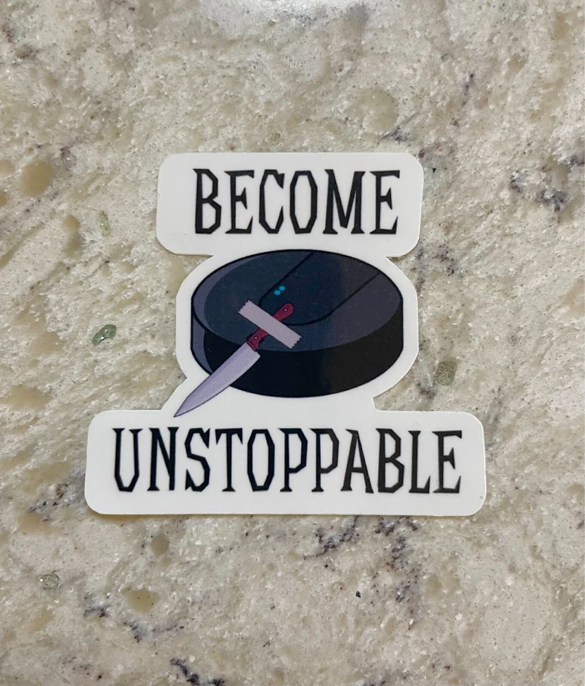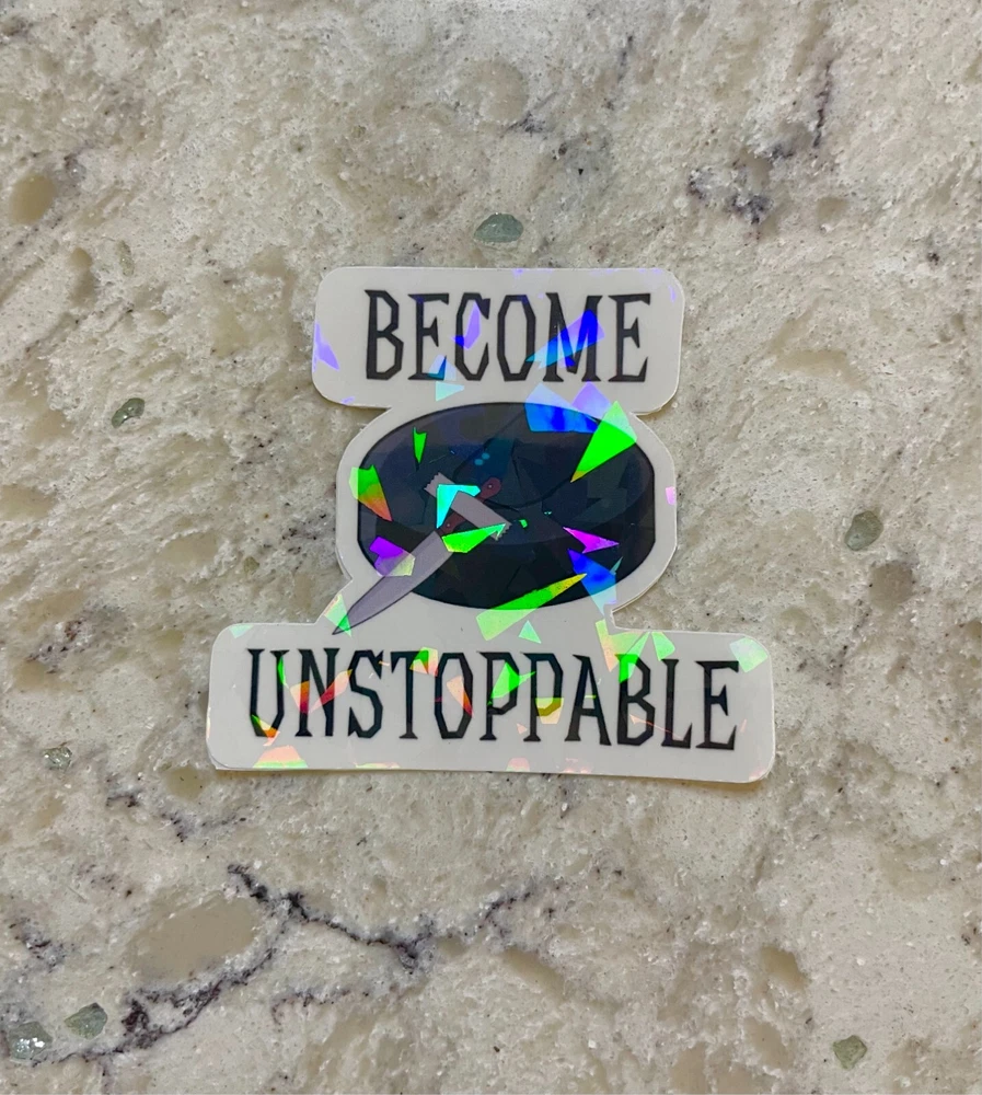 High quality waterproof Become Unstoppable sticker! These are very durable long lasting die cut stickers meaning they are versatile. They can go on laptops, phones, tablets, notebooks, tumblers, mugs, binders, and more! Available in Gloss or Holographic Laminate and in Small, Medium, and Large. Small - 1.4" x 1.2" Medium - 2.3" x 2" Large - 3.4" x 3" Sticker Care Instructions - Make sure to clean surface before placing sticker - Hand wash only, not dishwasher safe - Apply only to smooth surfaces - 1-3 day processing time - Shipping time is usually 1-5 days but varies due to USPS services and shipping procedures - Returns are accepted within 30 days