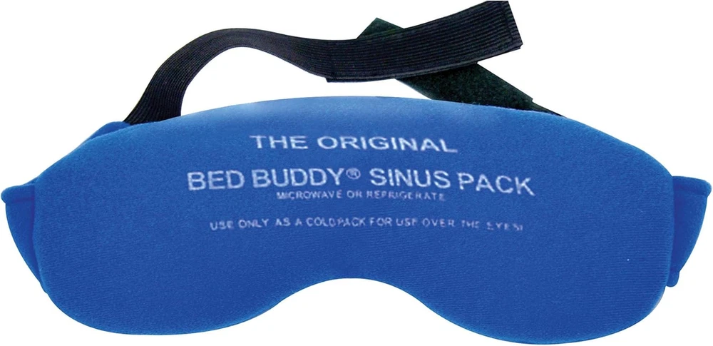 TAKES THE PAIN AWAY. The cooling eye mask and eye pillow will provide you relief from migraine headaches, tension headaches, sinus pain and eye pain. Sinus mask can also be worn to bed as a cooling sleep mask HEATED and COOLING EYE RELIEF. A cooling eye mask for the freezer for sinus headaches, or for providing relief from tired and puffy eyes. An eye compress moist heat pad for the microwave or cold eye pack from your freezer HOT COMPRESS and COLD EYE MASK. A headache ice pack and warm compress for eyes and sinuses. Have dry eyes? This Bed Buddy is also an eye compress for dry eyes VERY COMFORTABLE. This cooling mask is very comfortable and feels soothing on the eyes and sinus area, a perfect cooling eye mask for puffy eyes after a long day's work or to sooth while ill or when you have a cold or sinus infection MIGRAINE MASK that can be used cold or hot while sleeping or just relaxing in the living room. The ice eye mask does not need to be into a cloth, just place the mask on the eyes or forehead for soothing pain relief Bed Buddy Deep Soothing Sinus Pack For Tired and Puffy Eyes or Sinus Pain Relief Instantly Sooth Your Tired and Puffy Eyes or Relieve Your Headache With This Microwave Heating Pad and Reusable Cold Pack. The Bed Buddy Deep Soothing Sinus Pack will provide you with the instant soothing warmth of moist heat. The Hot and Cold Pack is luxurious and soft and the easily molds to your face for ultimate comfort. This long lasting and reusable therapy pack is filled with 100% natural materials. Treat Your Tired Eyes Great for cold therapy on the eyes. Simply place the pad in the freezer and pull out for for soothing, relaxing relief. Heat Therapy: Provides relief using moist heat after microwaving the wrap(only use as a cold pack in the eye area, not to be used as a heat pack in the eye area). Place on forehead for tension, migraine, fever, or sinus headaches. Cold Therapy: Provides you with a refreshing feeling on a hot summer day or to relieve inflammation or swelling. Simply place the hot cold pack for your eyes in the freezer overnight. Reusable and Easy To Use Durable and well crafted heating pad that is built to last you for years. Reuse over and over again. Get multiple heating pads for the whole family to enjoy - or get ready to be sharing yours! Specs: Type: Microwaveable Heating Pad and Freezer Cooling Pad Product Weight: 0.5lbs WARNING! EXTREME TEMPERATURES CAN CAUSE INJURY. DO NOT USE AS A HOT PACK IN THE EYE AREA. FAILURE TO FOLLOW DEVICE INSTRUCTIONS AND TO HEED WARNINGS INCREASES RISK OF SERIOUS INJURY. OVERHEATING MAY CAUSE FIRE. HEAT TIMES: 600W - 0:45, 900W - 0:30, 1200W - 0:20. RE-HEAT AS DESIRED IN 0:20 SECOND INCREMENTS. Press Add To Cart to buy this comfortable heat pad and reusable cooling wrap