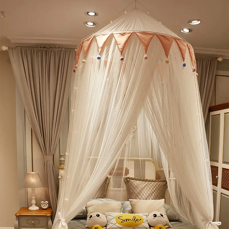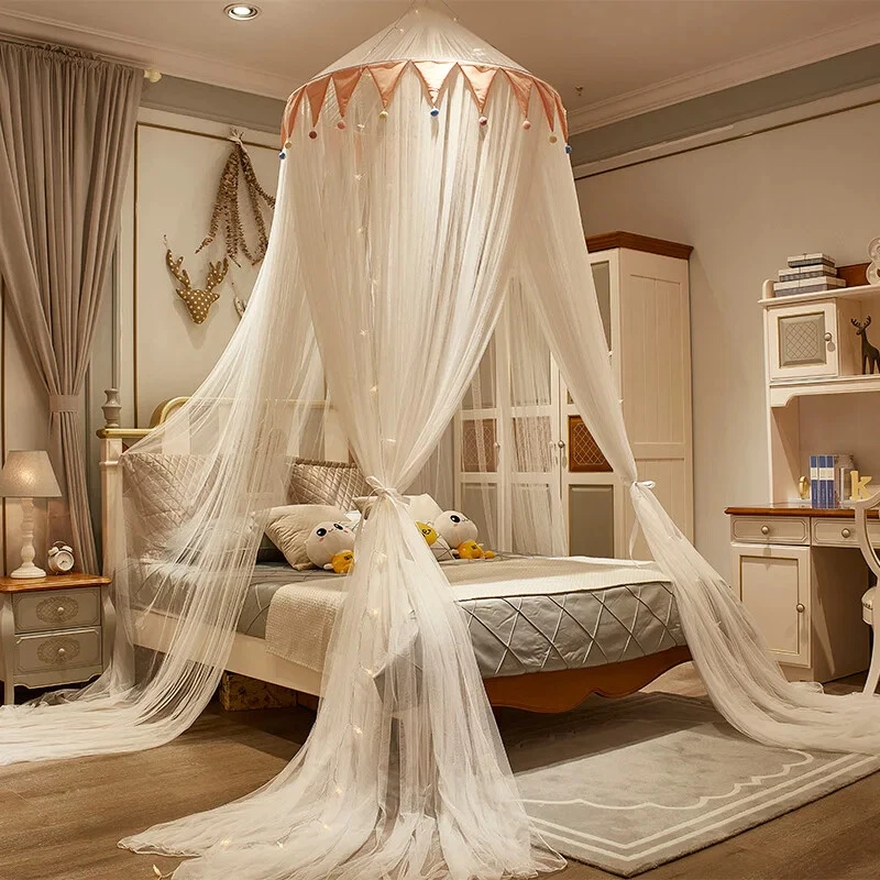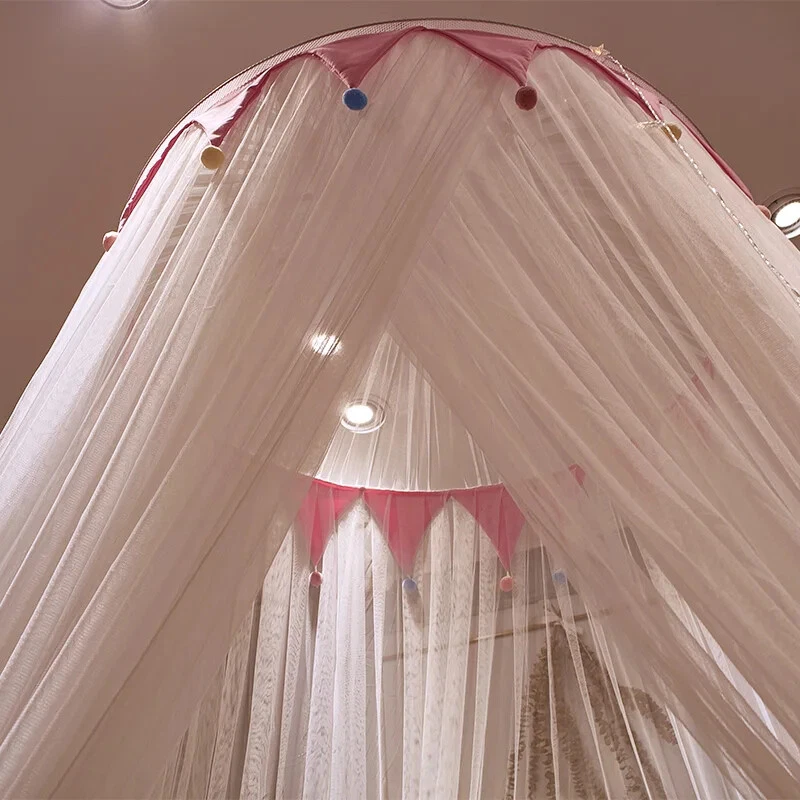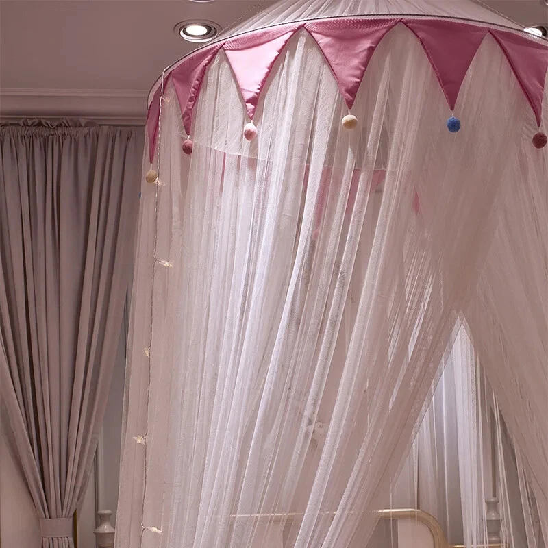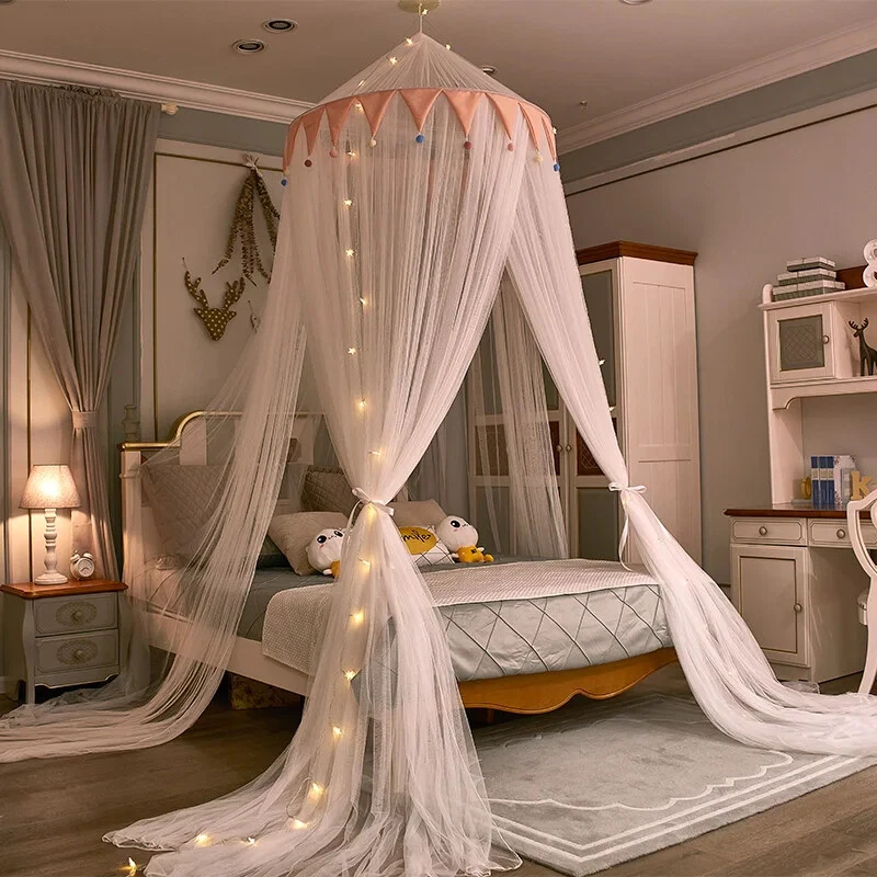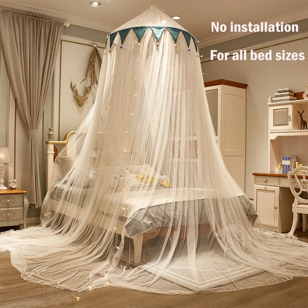 About this item BED CANOPY DIMENSIONS - 0.6 x 2.6 m / 23 x 102 in (top diameter x height), hem circumference: 9.6 m / 378 in. PREMIUM MATERIAL - The hanging bed canopy is made of high-quality polyester yarn, durable, soft, and lightweight. Features an opening for easy entrance. The breathable material is pretty good for kids. EASY TO ASSEMBLE - There are 2 installation methods for you to choose from. Easy to hang in just Minutes. Includes all the required mounting hardware to allow your new bed canopy net to be hung in minutes. FIT FOR VARIOUS BED - This curtain netting applies to a variety of models of bed, including Single bed/Twin bed/King bed/Queen bed (Width below 1.6M). Add extra romance and elegance to any bedroom. FANTASY GIFT - This Bed canopy net is ideal for providing a quiet environment when sleeping. A Dream gift for Girls, Kids, Boys, Adults. The bed curtain canopy gives the room a fairy tale feeling.