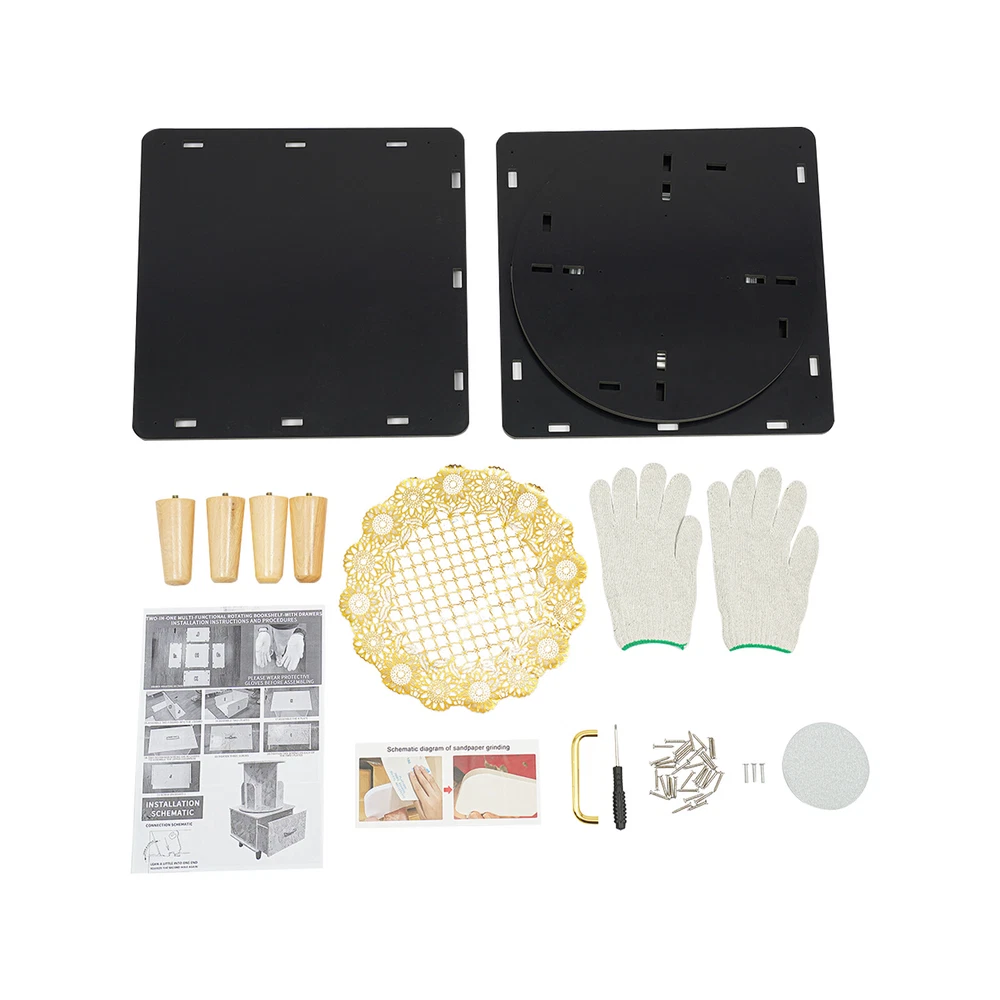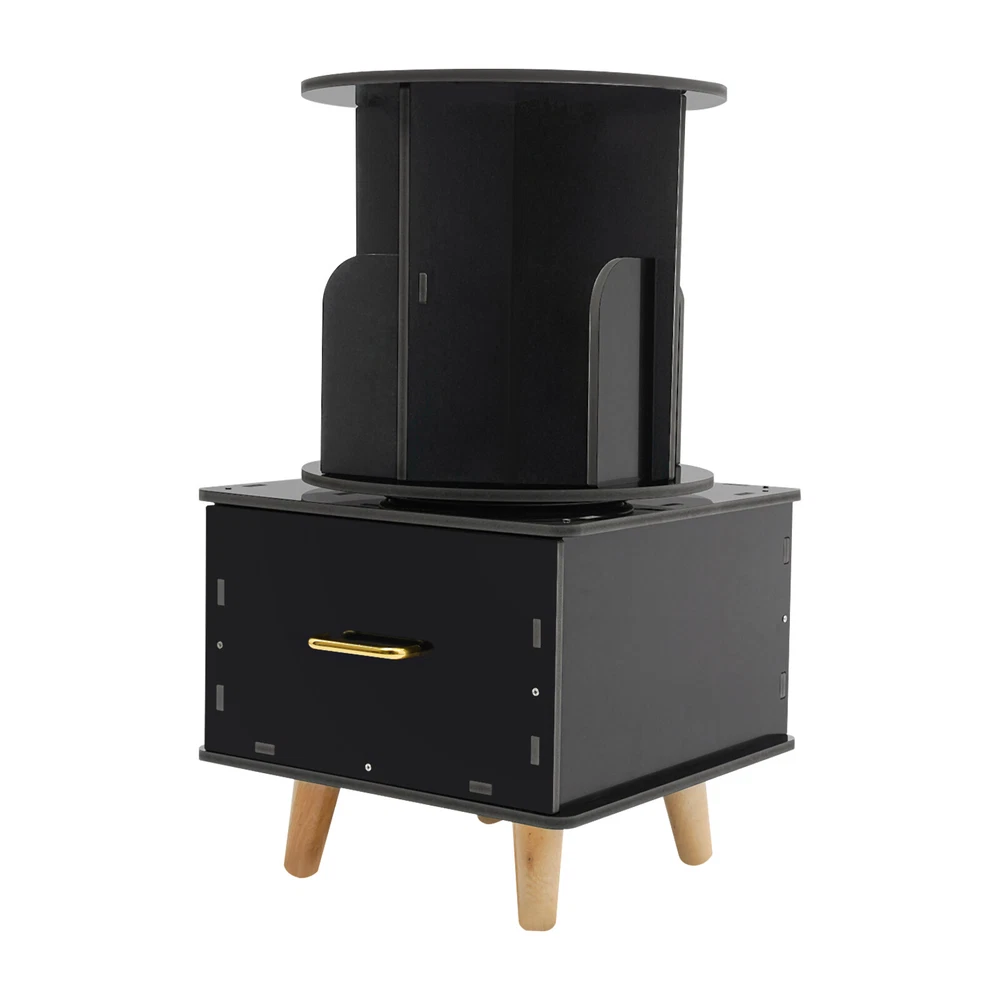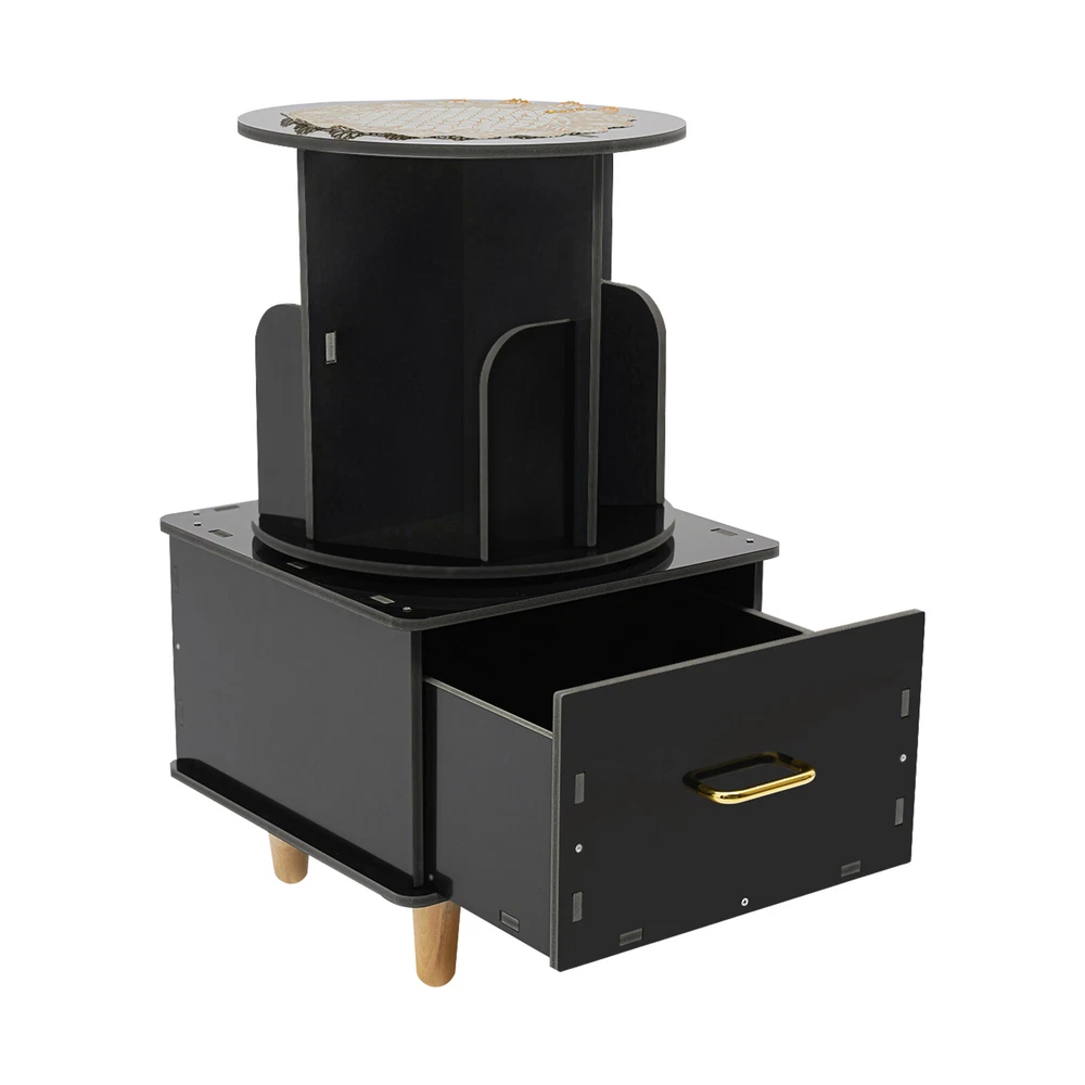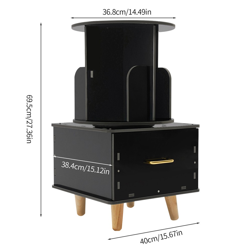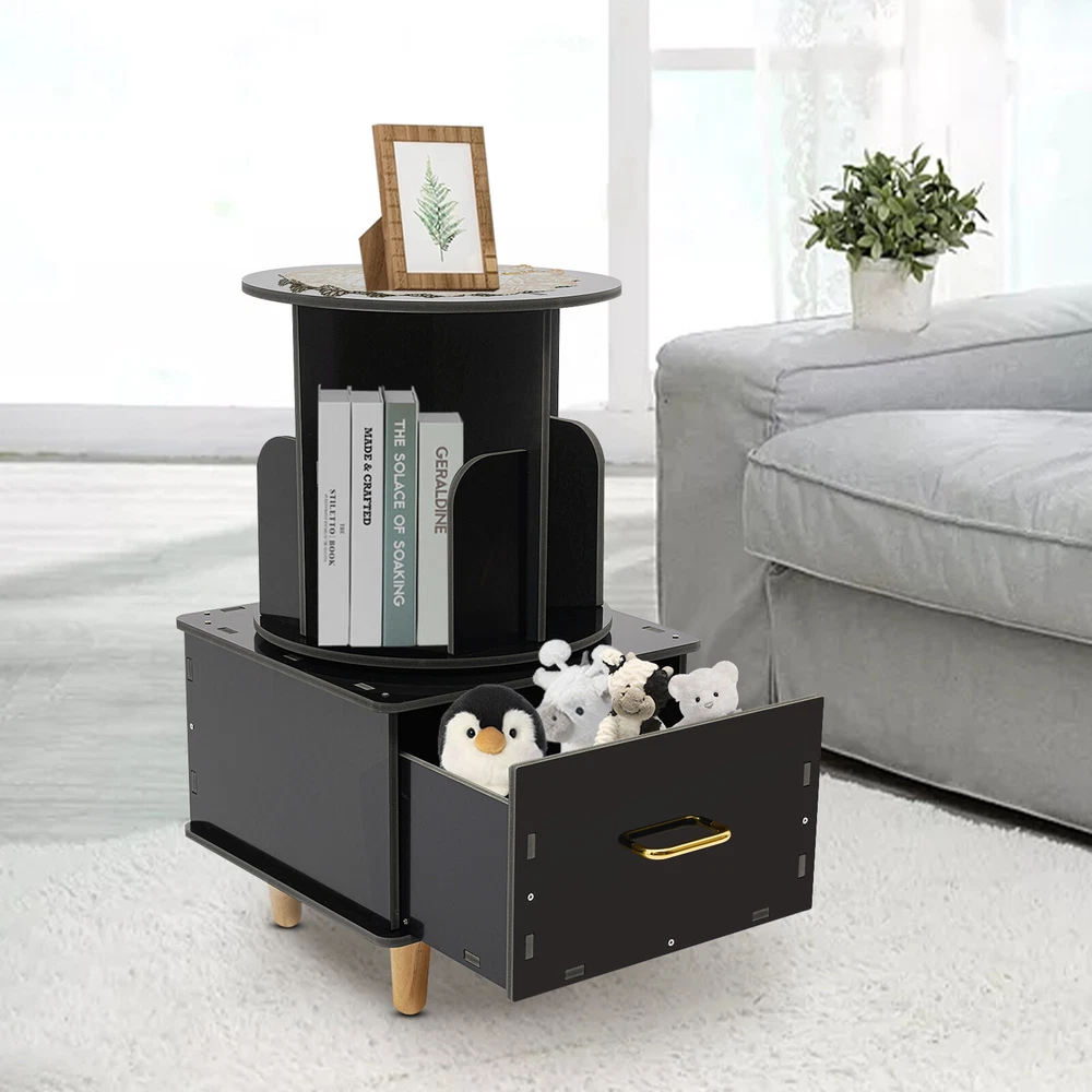 Bedside Table with Drawer, Corner High End Table, Rotating Bookshelf with Drawer ❤Welcome❤ Description If you are looking for a sophisticated and practical small bookshelf, then please look at our product. Our rotating bookshelf is designed in a 2-in-1 way, not only can it hold books, but its large drawer can also help you store other objects, helping you maximize your storage space and keeping your room tidy. Key Features Made to Last: This product is made of high-quality PVC board by carving process, sturdy and waterproof , not easy to deform, and can be used for a long time without frequent replacement. Large Capacity: It utilizes vertical space to achieve high-capacity storage, giving it more space for storing books and maximizing storage capacity. Excellent Storage: The top bookshelf is for you to store books, and the bottom drawer is convenient for you to store your personal belongings or other small objects to prevent loss. The top surface of the bookshelf can hold glasses, coffee, and other daily necessities for your easy access, realizing categorized storage. Space-saving: It has a small footprint and is suitable for placing in small rooms and corners, realizing storage and saving space at the same time. 360° Rotating Design: It is equipped with a very sturdy steel ball turntable inside, giving it a sturdy construction while allowing it to rotate 360° for easy access to your books. Easy Assembly: Simple structure, complete accessories, and detailed assembly diagram help you quickly complete the assembly and use it in a short time. Effortless Cleaning: It has a smooth surface and an open structure, so you only need to wipe the dust or residue with a towel. Protective Package: To prevent the product from being damaged during transportation, we packed it with foam and bubble bags to protect your products to the maximum extent possible. Good Customer Service: We aim to provide quality products and services. If you have problems, please feel free to contact us. We will reply and solve the problem for you as soon as possible. Details Smooth Edges: Rounded corners and smooth surfaces can be good protection for you hands. High Tier-spacing: The bookshelf is high enough (12.2in) to store tall items. Aluminum Handle: It is convenient for you to access the items in the drawer. Helpful Baffles: The baffles on the rotating bookshelf are designed to prevent items from falling. Practical Gloves: They protect your hands from injury during assembly. Tablecloth: It makes the bookshelf more beautiful while also preventing dust buildup and keeping the top of the bookshelf clean. Wooden Feet: They keep the bookshelf stable while protecting the floor from damage. Application This product can be placed in the bedroom, living room, study room, toy room, etc. as your bedside table, bookshelf, children's toy storage cabinet, fashion playthings collection cabinet, and so on. Specification Material: PVC Board, Aluminum, Steel, Wood Color: Black Process: Carving Style: Modern Assembly Required: Yes Mounting Type: Free Standing Overall Product Height: 69.5cm/27.36in Round Bookshelf Diameter: 36.8cm/14.49in Drawer Size: 40*38.4cm/15.75*15.12in Package Size: 48*46*14cm/18.9*18.11*5.51in Gross Weight: 8kg/17.64lbs Net Weight: 7.5kg/16.53lbs Package Included 1* Rotating Bookshelf 1 Pair* Gloves 1* Top Cover 1* English Installation Diagram Other Accessories for Assembly Notes Please note that this product does not include books or other items. Please confirm the size before purchasing. Please allow the slight color difference caused by the shooting light and 1-3cm error due to manual measurement, and make sure you do not mind before ordering. *Description* Online shopping no longer requires confusion. ?? Beyond your expectations, let's work together to create a perfect shopping experience! ↓↓↓↓ HAVE A NICE DAY ! Payment Delivery details Terms of sales About us Contact us Payment We accept ebay payment 。 Fees such as import duties, taxes are not included in the item price or shipping costs. These charges are the buyer's responsibility. Delivery details Shipping: 2-9 working days to: USA Terms of sales We maintain high standards of excellence and strive for hundred percent customer satisfaction. Feedback is very important to us. We hope that you contact us immediately before you give neutral or negative feedback, so that we can address your concerns. It is impossible to address issues if we do not know about them! About us Your satis faction is our ultimate goal. We work hard to earn your trust and future business. Our certified technicians have tested each item before shipping. The unit comes with 1 year limited warranty on all manufacturing defects. a) If you receive a defective item, you may return it or ask for a discount. Please contact us within 14 days after you receive the package. b) What you returned must be intact and in its original packaging as re? u. Customer is responsible for shipping costs of the returned item. c) We will cover the cost of shipping back t with the shipping rate indicated in the registration page. We will send you a new unit or refund the full payment you paid. Thank you. Contact us Business Hour Business Hour: Monday To Friday: 8:30 AM to 5:00 PM (Beijing China time) Due to time zones, our reply to your questions may not be immediately. But within above working time, we will reply your email within 24 hours. If it's non-workdays, please kindly be patient and wait till Monday. Please contact us with ebay message. Please feel free to contact us if you have any questions. Monday To Friday: 8:30 AM to 5:00 PM (Beijing China time) Due to time zones, our reply to your questions may not be immediately. But within above working time, we will reply your email within 24 hours. If it's non-workdays, please kindly be patient and wait till Monday. Please contact us with ebay message. Please feel free to contact us if you have any questions. Warranty 5 Years Manufacturer Warranty