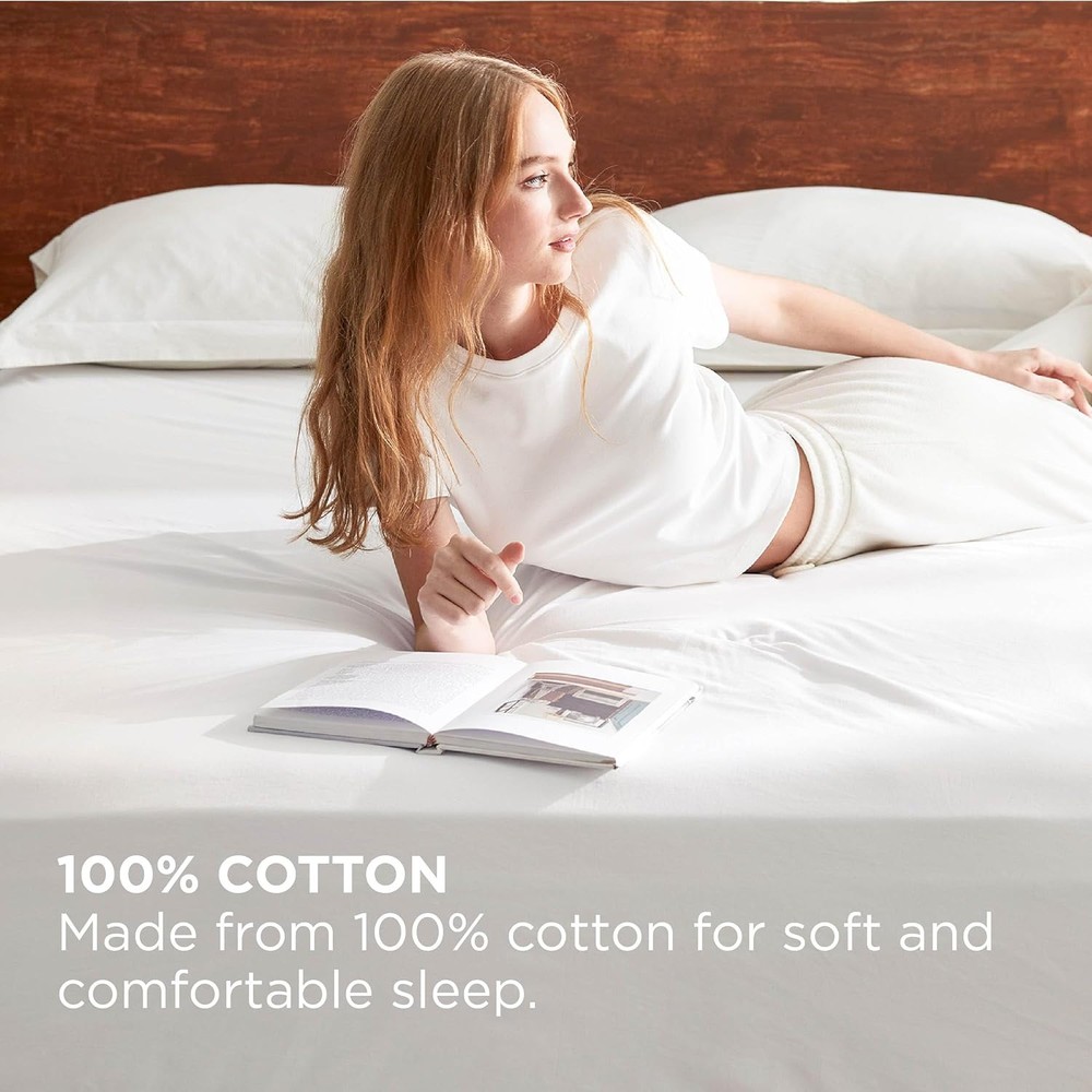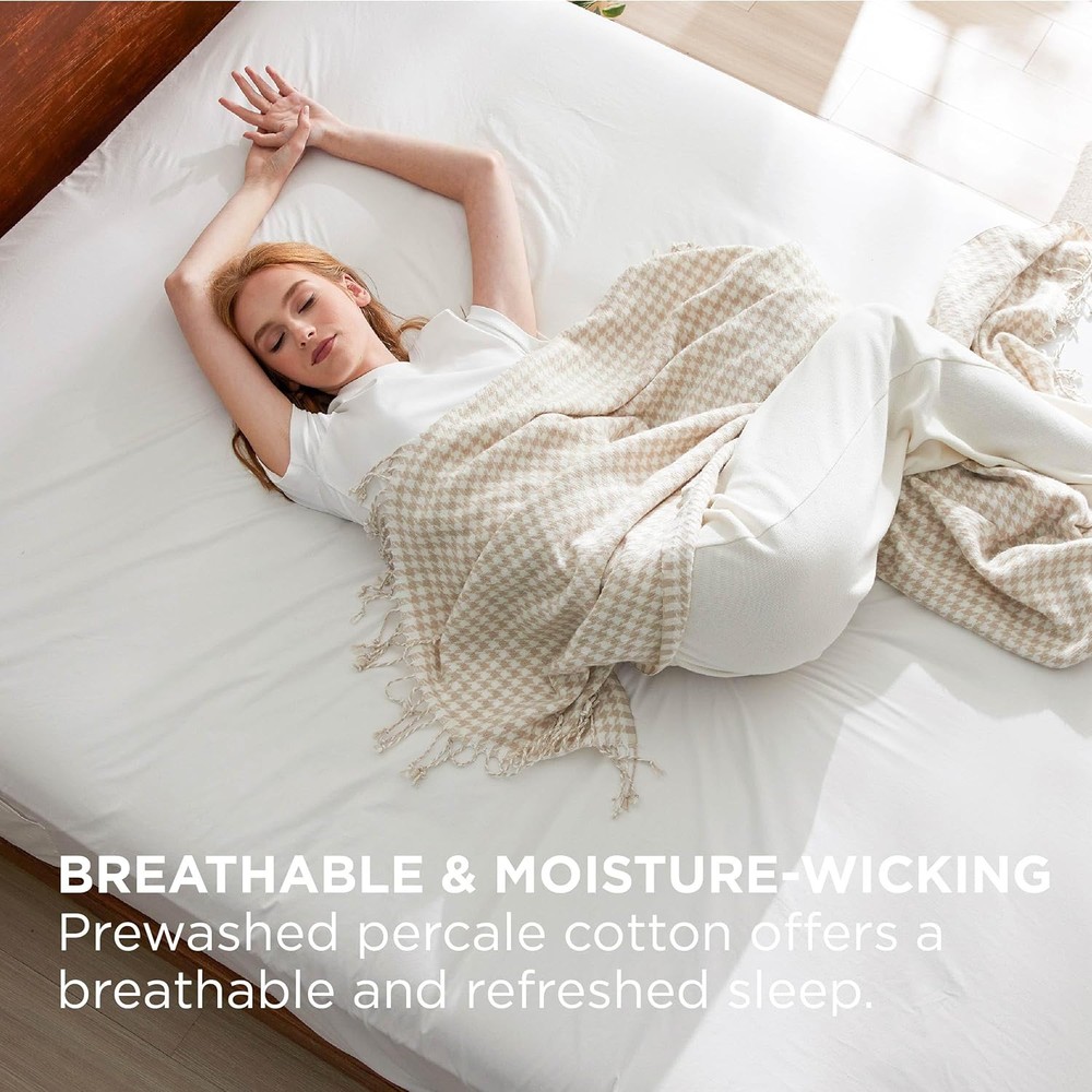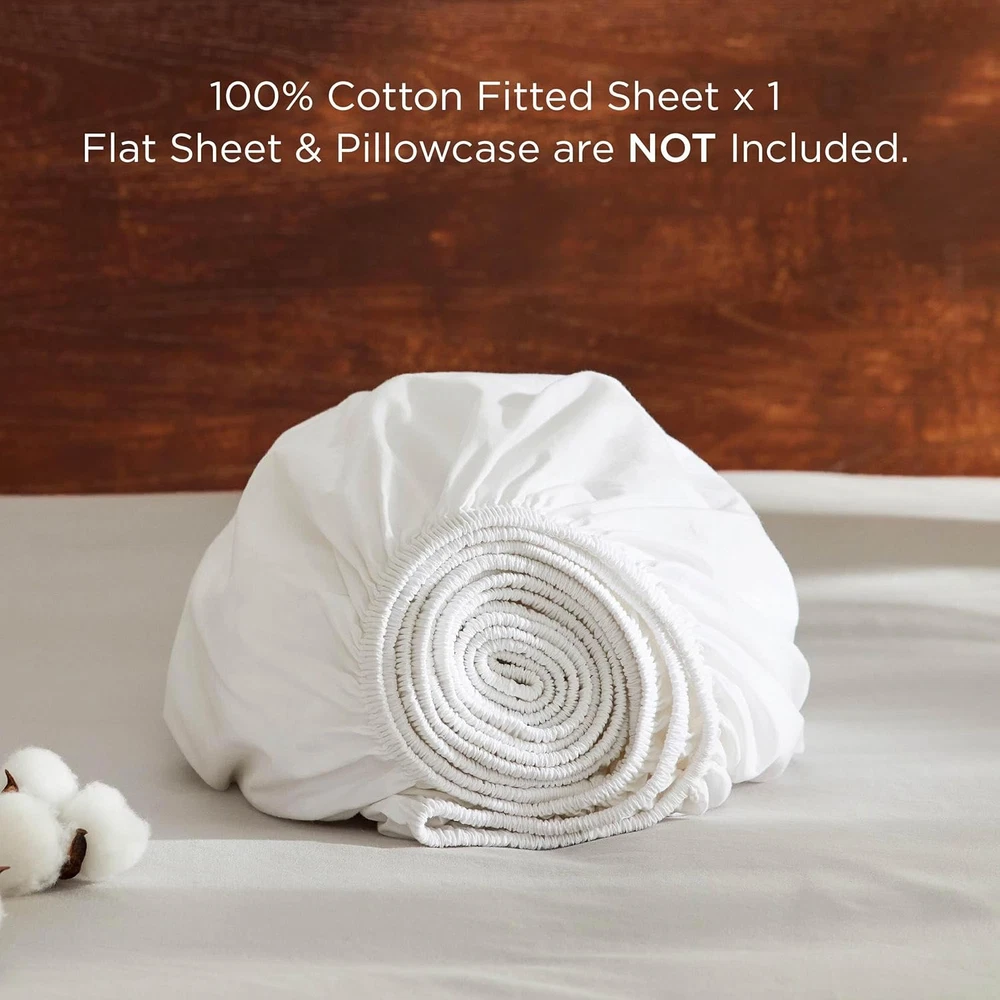 Bedsure 100% Cotton Fitted Sheet Queen Size - Percale Bed Queen, White Description Features: Breathable & Moisture-Absorbent: Made from premium 100% cotton, this cotton fitted sheet is breathable and moisture-wicking. Percale cotton is more breathable and lighter than cotton sateen, ideal for warm sleepers who wish to wake up refreshed Comfortable & Soft: The prewashed process gives this cotton fitted sheet a gentle crinkle effect, enhancing its softness and providing a skin-friendly touch, and resistant to deformation for lasting comfort Single-Side Storage Pockets: Designed with a side pocket for quick access to essentials like phones, remote controls, glasses, keys, pens, and other small items, Bedsure 100% cotton percale fitted sheet enhances the convenience of your bedtime routine Tailored For Mattresses: This sheet set includes a fitted sheet with a 16-inch deep pocket to accommodate most mattresses, ensuring a smooth, secure fit Easy Care: This sheet set is easy to maintain. Simply machine washes in cold water on a gentle cycle, and tumble dry low for a like-new restoration Product Details: Color: White Material: Cotton Size: Queen Fabric Type: 100% Cotton Pattern: Solid Product Dimensions: 80"L x 60"W Brand: Bedsure Thread Count: 200 Fabric Weight: 126 Grams per Square Meter Product Care Instructions: This sheet set is easy to maintain. Simply machine washes in cold water on a gentle cycle, and tumble dry low for a like-new restoration Fitted Sheet Pocket Depth: 16 Inches Manufacturer: Bedshe Item Weight: 1.89 pounds Country of Origin: China Item model number: 100% Cotton Percale Fitted Sheet Handling We will ship all orders within 3 business day of payment. Delivery We take pride in offering fast and reliable delivery for your orders! We are committed to getting your products to you as quickly as possible. Generally, we would like to inform you that all orders will be delivered to you within 1-3 business days after processing.However, in some cases, delivery times may vary depending on the buyer's location. Especially in remote or rural areas, the expected delivery time may be extended. In such situations, we do our best to ensure that your order reaches you as quickly as possible.If there are any delays, we will be happy to contact you to explain the situation. Our goal is to enhance your satisfaction with our fast delivery times. We work diligently to ensure that your order arrives safely.Trust us and enjoy our speedy delivery! Return Policy All items qualify for returns within 30 days of receipt. Buyer is responsible for return shipping on any item that is not damaged. Feedback We take our reputation seriously, we buy and sell online, so we understand the value of trust. If you are unsatisfied with your order, please contact us and we will work with you to resolve it to your satisfaction.