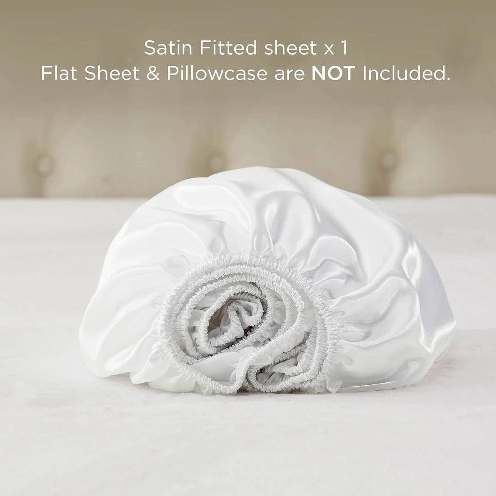 Bedsure Satin Fitted Sheet Queen Size - Silk Bed Sheet, Luxury & Queen, White Description Features: Silky Soft Texture: Made of premium polyester microfiber, Bedsure satin fitted sheet offers you extreme smoothness and softness. This fitted sheet is also gentle on sensitive skin, offering you restful sleep every night Hair & Skin Friendly: Features a smooth satin surface, Bedsure satin fitted sheet significantly reduces friction and minimizes hair breakage, fine lines, and wrinkles. It is gentle on both your skin and hair Tailored For Mattresses: This sheet set includes a fitted sheet with a 15-inch deep pocket to accommodate most mattresses, ensuring a smooth, secure fit Easy Care: This satin fitted sheet is easy to care for. Machine wash at low temperatures on a gentle cycle to restore it to like-new condition. To ensure a better experience, avoid washing with sharp objects What You Get: This queen sheet set includes a fitted sheet (60" x 80" + 15"); Flat Sheet & Pillowcase are NOT Included Product Details: Color: White Material: Polyester Size: Queen Fabric Type: Satin Weave Pattern: Solid Product Dimensions: 80"L x 60"W Brand: Bedsure Fabric Weight: 90 Grams per Square Meter Product Care Instructions: Easy Care: This satin fitted sheet is easy to care for. Machine wash at low temperatures on a gentle cycle to restore it to like-new condition. To ensure a better experience, avoid washing with sharp objects Number of Pieces: 1 Fitted Sheet Pocket Depth: 15 Inches Manufacturer: Bedshe Item Weight: 1.21 pounds Country of Origin: China Item model number: Satin Fitted Sheet Silky Handling We will ship all orders within 3 business day of payment. Delivery We take pride in offering fast and reliable delivery for your orders! We are committed to getting your products to you as quickly as possible. Generally, we would like to inform you that all orders will be delivered to you within 1-3 business days after processing.However, in some cases, delivery times may vary depending on the buyer's location. Especially in remote or rural areas, the expected delivery time may be extended. In such situations, we do our best to ensure that your order reaches you as quickly as possible.If there are any delays, we will be happy to contact you to explain the situation. Our goal is to enhance your satisfaction with our fast delivery times. We work diligently to ensure that your order arrives safely.Trust us and enjoy our speedy delivery! Return Policy All items qualify for returns within 30 days of receipt. Buyer is responsible for return shipping on any item that is not damaged. Feedback We take our reputation seriously, we buy and sell online, so we understand the value of trust. If you are unsatisfied with your order, please contact us and we will work with you to resolve it to your satisfaction.