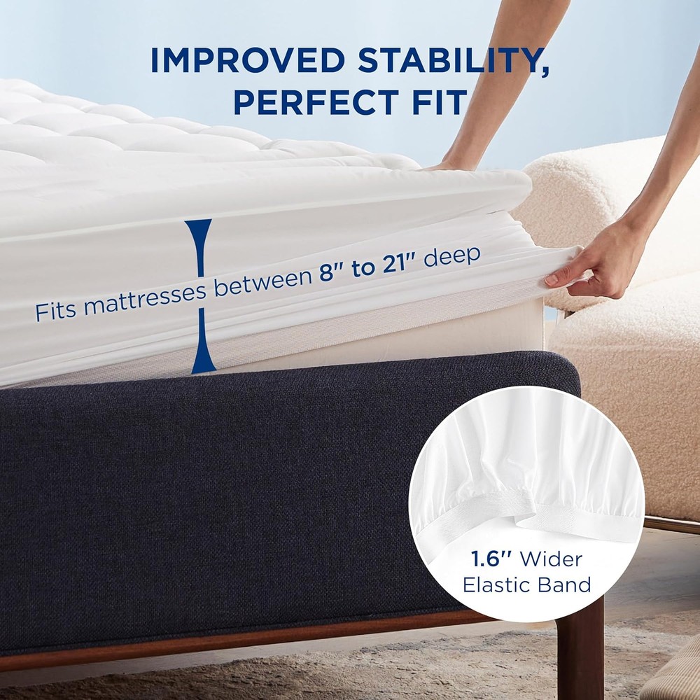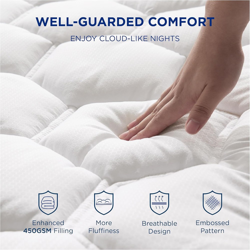 Bedsure Twin XL Mattress Topper- Soft Pad for College XL, White Product Details Brand: Bedsure Color: White Size: Twin XL Fabric Type: Polyester Special Feature: Quilted, Deep Pocket, Adjustable, Washable Closure Type: Pull On Product Care Instructions: Machine Wash Age Range (Description): All age Material: Polyester Number of Items: 1 Manufacturer: Bedshe Product Dimensions: 80 x 39 x 16 inches Item Weight: 3.5 pounds Item model number: Mattress Pad Quiet Shade Ergonomic Design: This Bedsure twin xl mattress pad (39x80 inches) features an ergonomic three-zone design. The top and bottom zones feature a softer wavy design for improved relaxation. The honeycomb-shaped middle quilting provides evenly distributed support that disperses the body’s pressure. Designed to upgrade any stiff mattress to a restorative sleeping space, whether it's in the dorm room, guest room, kids room, or anywhere else. Optimal Comfort: Featuring Bedsure's signature thoroughly tested microfiber filling blend, this Bedsure dorm bedding offers extra softness and optimal support for the ideal balance of comfort and firmness. Soft to The Touch: The premium microfiber cover is finely brushed to achieve a satisfyingly soft hand-feel without crinkly noise, providing you with a deep and restful night’s sleep after you are back to school. Enhanced Durability & Easy Care: Thanks to the premium microfiber cover and neat stitching, the dorm room essential mattress pad offers improved durability to withstand wear and tear. Machine wash separately in cold water on a gentle cycle and tumble dry low. These college essentials are must-have for students who value hassle-free bedding. Deep Pocket: This twin XL mattress cover can be easily stretched up to 21" deep, and the all-around elastic edging effortlessly secures the mattress cover in place without moving or shifting.