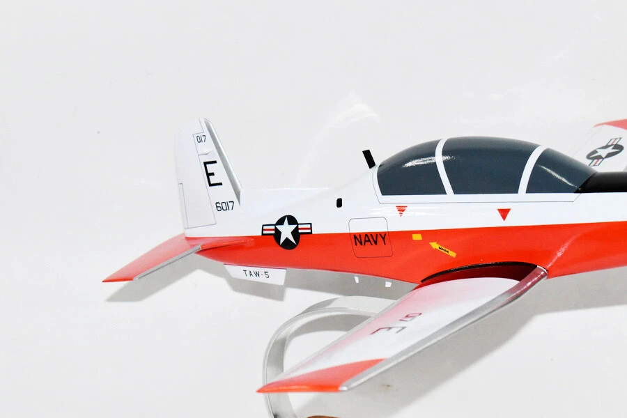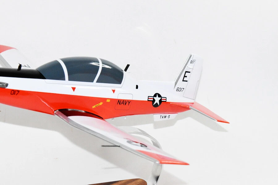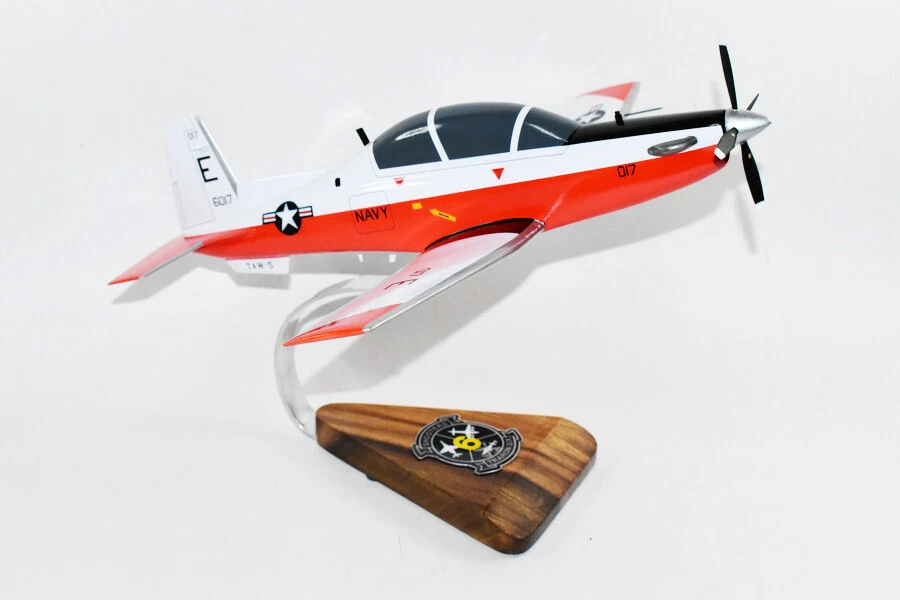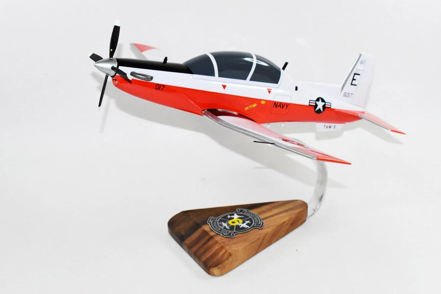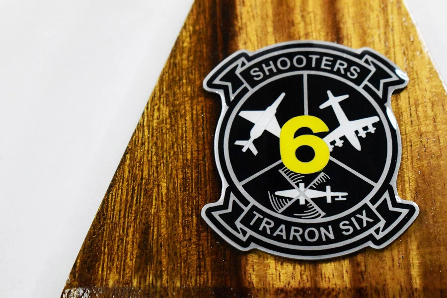 VT-6 Shooters T-6b (Navy) Model Aviators! Solo again with the VT-6 Shooters in the Beechcraft T-6b Texan- a first for many a Naval Aviator. This model is a must-have for any Naval Aviator and makes the perfect gift after soloing! Length - 16 inches; Width - 16 inches Made from Mahogany US Naval Aviator Owned Business Officially Licensed by Beechcraft The product is not intended to be used by children 12 years and younger BEECHCRAFT®, emblems, logos, and body designs are trademarks of Textron Aviation Inc. and are used under license by Squadron Nostalgia LLC. Training Squadron SIX (VT-6) was initially established in 1956 and re-designated as VT-6 in May 1960. The squadron provides primary flight training to selected Student Naval Aviators (SNAs). Since its inception, VT-6 has flown a wide variety of naval training aircraft to include the TC-45, T-28, T-34, and now the T-6B. The squadron serves as an indoctrination point for Naval Aviation and takes pride in building professional U.S and International Aviators.