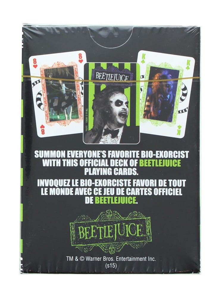 About Us Payment Shipping Returns Contact Us MENU Store Pages About Us Payment Shipping Returns Contact Us Store Categories Costumes & Accessories Apparel Figures & Collectibles Games & Toys Home & Office Party Supplies & Decoration Other Shop by Category Costumes & Accessories Apparel Figures & Collectibles Games & Toys Home & Office Party Supplies & Decoration Other Store Newsletter Sign up to receive special insider notifications of deals, promotions, and new items! SIGN UP Satisfaction Guaranteed Combined Shipping Worldwide Delivery Beetlejuice Playing Cards | 52 Card Deck + 2 Jokers Click Thumbnails to Enlarge Item Sku: NMR-52322-C Manufacturer: NMR Distribution Item UPC: 840391105188 Manufacturer ID: 52322 Product Description Play your favorite card game while wowing your friends with this full color deck of poker sized playing cards featuring 52 different images of Beetlejuice and the gang from the hit Tim Burton movie. Cards measure 2.5" x 3.5" and have a professional quality linen type finish. Great for fans and players alike! Officially licensed. BEETLEJUICE! BEETLEJUICE! BEETLEJUICE! Playing cards featuring images of Beetlejuice and the gang from the hit Tim Burton movie! STANDARD DECK: Includes 52 playing cards plus 2 jokers. POKER SIZED: Cards are standard poker sized at 3.5 x 2.5-inches. MAKE IT A GAME NIGHT: Playing cards are great for all types of card games, including Poker, Bridge, Go Fish, Hearts, Blackjack, and more! > Payment Terms TO CHECK OUT Please use the Ebay checkout system to complete the purchase of your item(s). Orders that are not checked out via the Ebay checkout system may be significantly delayed. DON'T LET YOUR EXCITEMENT OF ORDERING GET THE BETTER OF YOU. Please take a moment to check your order over carefully before you pay. Check the Address, the Quantity, the Size (we cannot substitute) and/or Color (when applicable), and the Method of Shipment. Include any special requests in the Notes section of the payment. Never submit an order that is not entirely correct. When you click the "Submit" payment button, you are giving us the go light to process your order ASAP and with our automation, your order is likely to be processed within a few short minutes of receipt of payment, and we simply cannot go back and redo things. One or two minutes of checking now can save much disappointment and inconvenience. PAYMENT OPTIONS Paypal Paypal Echecks (This will delay your order 2 to 10 days) Credit Cards (VISA/MASTERCARD/DISCOVER) If you have any questions or problems when attempting to checkout, you can email us through Ebay . SALES TAX We are required by law to collect Illinois & South Carolina State Sales Tax. All shipments within Illinois & South Carolina will be charged sales tax. IF YOU DO NOT PAY Winning bidder must complete payment within 7 days, unless you are purchasing multiple items. If payment is not received by the 14th day, you will be reported to eBay as a non-paying bidder and the item will be re-listed. ORDER CANCELLATIONS If a bid is accidentally or inappropriately submitted and the bid has not yet been paid for ,then we can request a mutual bid cancellation from eBay upon your notice, but such requests are made solely upon our discretion. However, our ordering system is mostly automatic which means the processing of your order commonly begins within seconds of your payment, so it is not possible to change or cancel a bid once it is paid for. (No exceptions.) Shipping Terms HOW MUCH IS SHIPPING? Please click on the "Shipping and Payments" tab above to see the additional shipping options and their costs. We do ship outside of the continental USA (Hawaii, Alaska, Puerto Rico, APO addresses, etc) and to PO Boxes. The costs to ship to these fabulous areas are more. Because of this, we reserve the right to bill you for these additional costs. These costs vary based on the size and weight of the item, but generally range between $5.00 and $20.00. A representative will email you for shipping payment after you pay for your item. We also do a great job of shipping to places all over the world. To see how much it would cost to ship to your country, please click on the "Shipping and Payments" tab above. Sorry, but auctions that are paid for separately must be shipped separately, so there can be no shipping discounts. If you need help on calculating the shipping cost, please email us through Ebay Shipping Timeline In stock orders will generally ship from our warehouse within 1 to 3 business days after payment has cleared. Orders that have selected express shipping methods will generally ship by the very next business day after payment has cleared. PLEASE NOTE: Customer is responsible for customs, duties, or brokerage (if applicable) on all international shipments. About Us You should always be careful with giving your information on the internet. So who are we? We are a real company with real people working in a real office, store and warehouse (see pictures below). Everything item you see on our website is stocked in our warehouse unless otherwise stated (pre-orders, some high dollar items). We are not a drop shipper, reseller, or portal of other merchant's items. We buy all our products direct from the manufacturer. We are primarily a toy and costume retailer although we do wholesale to other retailers. How long have you been in business? Toynk was started in the fall of 2001. We have run over 1,000,000 auctions on ebay since our inception back in 1998. Based on our high feedback score (130,000+ between our accounts), we are one of the top 500 ebay sellers in the world (source: Ebay Nortica 500). All of these stats are as of April 2006. Note - When an ebay member purchases more than one item from a seller, only one positive comment counts towards the feedback score. A little about us: We are located in Addison, Illinois (about 15 miles from Chicago city limits). If you are in the area, stop by and check out our store. You can email us at See below for hour