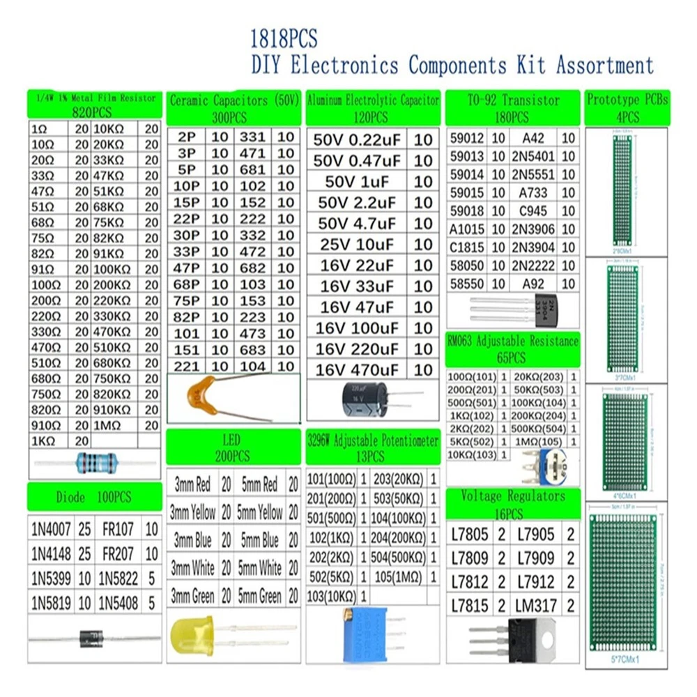 Beginner Friendly Electronic Components Kit for Learning Electronics 1818Pcs