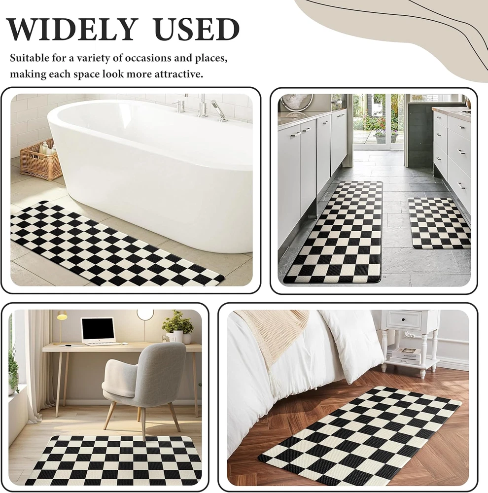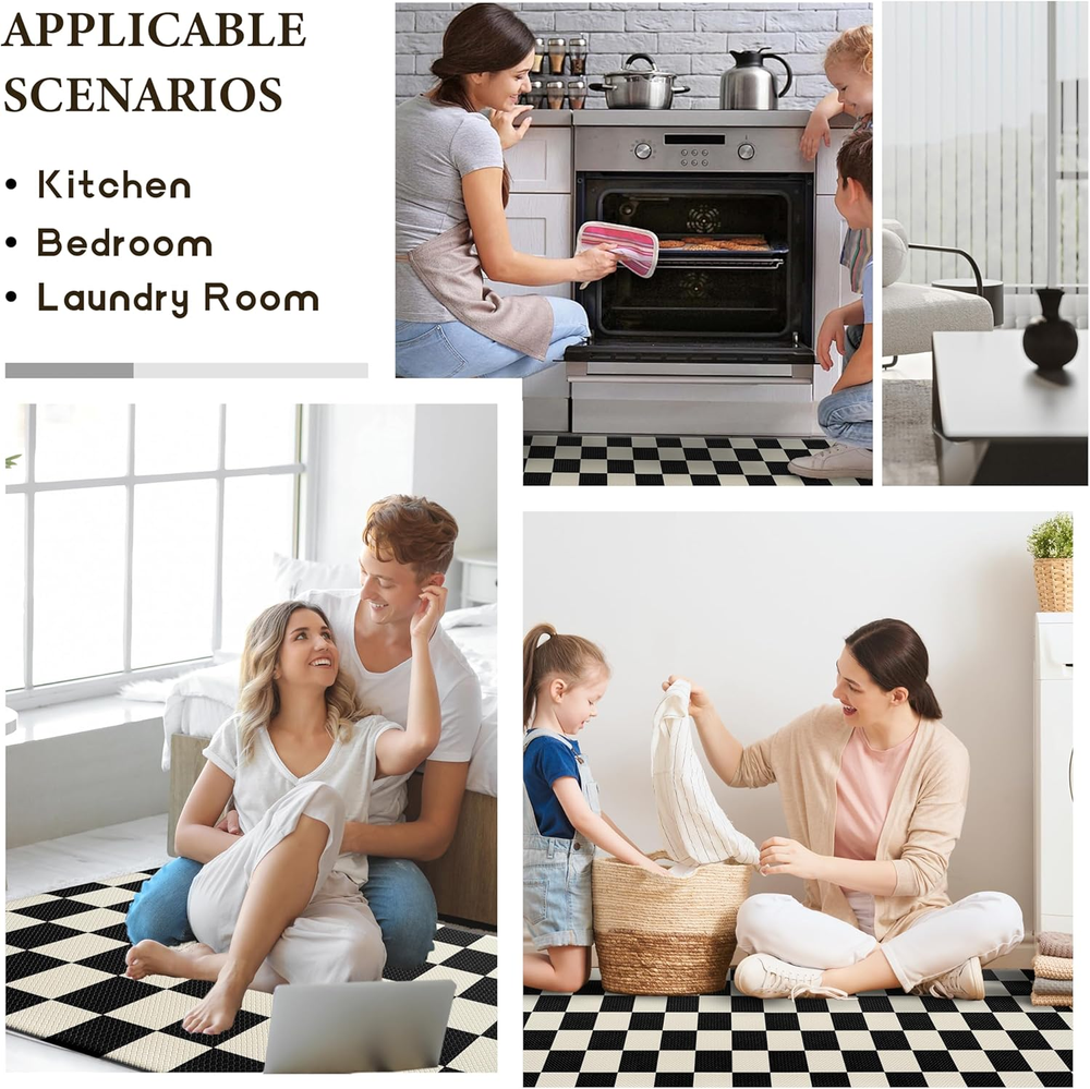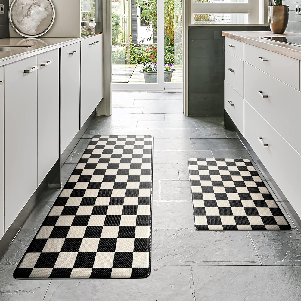Store New Arrivals Add to Favorite View Feedback Contact Beige Black Checkered Grid Checkerboard Kitchen Rug Sets [2 Pcs], Anti-Fatigue, Waterproof Non-Slip Kitchen Mats Heavy Duty Comfort Foam Rug for Kitchen, Floor, Laundry,17"X29"+17"X47" Description Item model number Checkered Item Thickness 0.4 Inches Number of Items 2 Color Beige Black Pattern Checkered Country of Origin China Material Polyvinyl Chloride (PVC) Shape Rectangular Item Weight 4.67 pounds Special Feature Waterproof, Non Slip Product Dimensions 47 x 17.3 x 0.4 inches Size 17.3"x29"+17.3"x47"-0.4"H 【Comfortable & Elegant Simplicity】:Designed with a classic checkered pattern and a 0.4-inch thick cushioned surface, this PVC mat set brings minimalist charm to any kitchen.The clean, geometric design adds a sleek and sophisticated touch to your kitchen, perfectly balancing style and comfort. 【Durable & Odor-Free PVC】: This kitchen mat set features high-quality PVC that resists wear and tear. It's latex-free, odorless, and retains its elasticity, providing consistent comfort and durability over time. 【Waterproof & Anti-Slip】: Crafted to repel water, oil, and stains, this kitchen mat set features a non-slip texture on the bottom, providing reliable stability and preventing unwanted movement on your kitchen floor. Easy to clean—simply wipe down the surface to keep it looking fresh. 【Multi-Scene Functionality】:Designed to fit seamlessly into kitchens, laundry rooms, sinks, and even home offices, this PVC mat set offers both comfort and aesthetic appeal. Its classic design complements any decor, making it a practical and stylish addition to multiple areas of your home. 【Tips & Support】:Ensure the mat is placed on a dry, clean surface to prevent slipping. If you encounter any issues or need assistance, please don’t hesitate to reach out to our team. VivaNest Classic Checkerboard Plaid Kitchen Rugs ABOUT US We offer the best prices around on high quality products. Our E-store includes media such as books, movies, music and games while offering electronics, toys, sporting apparel, clothing, tools, general home, garden items and more. SHIPPING We are always working hard to ensure your package arrives as soon as possible. Please understand that some factors like weather, high postal traffic, and the performance of shipping companies are outside of our control. We offer free shipping to the lower 48 states and ship within 2 business days of payment, usually sooner. We do not accept P.O. Boxes. Please provide a physical address. For shipping outside of the continental USA, we only use eBay's Global Shipping Program.The item is shipped to KY and then sent to the rest of the world. International customers are responsible for all duties and taxes. Continue to check out in order to calculate costs for shipping the item to your country. Messages regarding eBay's Global Shipping Program MUST be directed at eBay EXCLUSIVELY. RETURNS We offer a 30-Day Return Policy on items which you are not completely satisfied with. You have the option for a full-refund or an exchange of the item. No returns are available on items shipped outside of the USA. PAYMENT We accept PayPal. CONTACT US This page content is yet to come Please ad us to your favorite seller and visit again later Thank You CUSTOMER SATISFACTION We try our very best to make sure every customer is completely satisfied. If there's a problem, message us! We're happy to help. WE ACCEPT Copyright © 2021 AutoDS. | All Rights Reserved