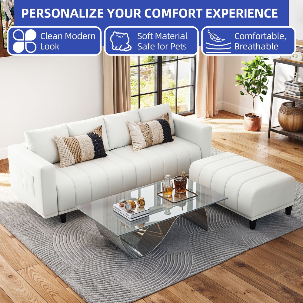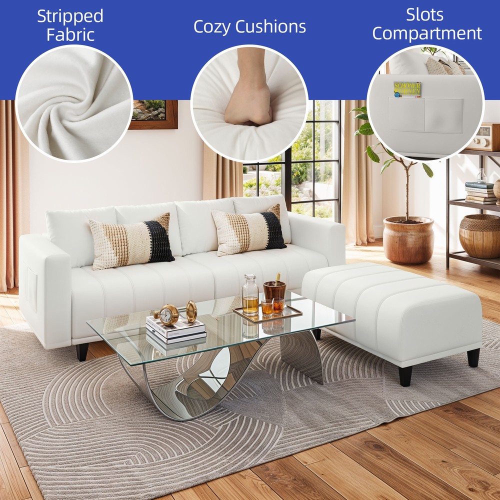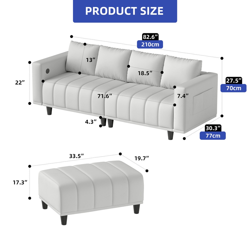 Beige Velvet L-Shaped Sectional Sofa & Ottoman Cloud Foam Couch USB Type-C Port Product Description NOTE: Professional Installation Would Be Highly Recommended. Description : 1. Color: Beige 2. Materials: Velvet Cloth, Metal, Cloud Foam 3. Room Type: Living Room, Family Room, Den, Home Office/Study, Entertainment Area, Sunroom 4. Feature: Clean Modern Look, Soft Material Safe For Pets, Comfortable & Cozy Cushions, Slots Compartment, Ottoman Footstool, USB & Type-C Charging Port, Side Pocket, Stripped Fabric, Comfortable & Breathable Stripped Fabric, Easy to Assemble, Easy to Clean, Protective Foot Pads. Features: 1. Elegant Comfort Lounge: Experience a clean, modern look with the sleek white sofa and matching ottoman , perfect for any contemporary living space. The soft, breathable material ensures comfort, making it ideal for everyday relaxation. 2. Sophisticated Seating Solution: Enjoy the refined comfort of striped fabric upholstery and plush cushions that invite you to unwind. The sofa features a practical storage compartment , seamlessly integrating style with functionality. 3. Tech-Savvy Sofa Feature: Stay connected without leaving your seat, thanks to the built-in USB and Type C charging ports on the sofa. This convenient design element ensures your devices are always charged and within reach. 4. Spacious Stylish Sofa: The sofa offers ample space with its generous dimensions , ensuring comfort for multiple users. Its precise measurements are designed to fit perfectly in both small and large rooms, enhancing functionality and style. Dimensions: 1. Sofa Dimension: 82.6"L x 30.3"W x 27.5"H 2. Ottoman Footstool Dimension: 33.5"L x 19.7"W x 17.3"H Package Included: 1. 1 x Sofa 2. 1 x Ottoman Footstool 3. 1 x Instruction Manual Note: 1. During assembly, do not tighten screws until all holes are aligned. 2. Confirm the appropriate furniture size for your needs prior to purchase. 3. There may be a slight color discrepancy between the product as seen on your monitor versus in real life. 4. Do not expose the product to extreme sunlight. To extend product lifetime, cover item when not in use. 5. Contact us immediately if any components are missing or damaged upon arrival. Our customer service team will resolve your issue right away. 6. Protect cushions from rain. The inner sponge is NOT waterproof. To extend product lifetime, cover when not in use. 7. The product may be dispatched separately into 2 packages, may not arrive simultaneously. Shipping 1. Normally the item will be dispatched within 1 business day if payment is cleared before 12 pm PST. 2. Please verify the correct shipping address in your PayPal account before making the payment. We only dispatch the item to the address that is sent to us at the time of checkout. 3. We don't ship to Hawaii, Alaska, Puerto Rico, APO/FPO/PO Boxes. 4. We don't provide local pick-up service. 5. Normally we will use USPS, UPS, FedEx & LTL to dispatch items. Payment 1. We accept PayPal and credit card. 2. We will ship to the confirmed Paypal shipping address that is provided with the payment only. Return 1. 30 days Money Back Guarantee. 2. Please contact our customer service to receive a RMA form first if want to return the item. 3. All returned items MUST in new condition with the original package. Contact If has any problem, please contact us by sending an ebay message. Our customer service will resolve the problem as soon as possible. On Mar 24, 2025 at 02:54:23 PDT, seller added the following information:
