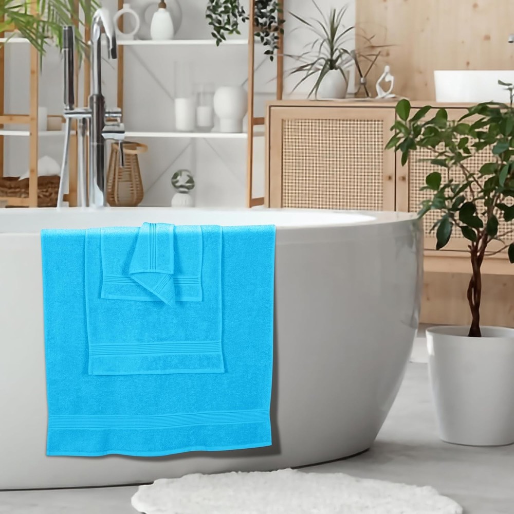 Belizzi Home Ultra Soft 6 Pack Cotton Towel Set, 12" x 12", Turquoise Blue Product Details Color: Turquoise Blue Brand: Belizzi Home Towel form type: Bath Towel Material: Cotton Product Dimensions: 55"L x 28"W Number of Items: 6 Style: Durability Pattern: Solid Special Feature: Durability,Lightweight Theme: No Theme Product Care Instructions: Machine Wash, Tumble Dry Shape: Rectangular Size: 12" x 12" Unit Count: 1 Count Fabric Type: 100% Natural Cotton Age Range (Description): Adult Manufacturer: Elvana Home Item Weight: 1.98 pounds Item model number: 70138 Is Discontinued By Manufacturer: No Each set contains 2 oversized bath towels 28x55 inches, 2 hand towels 16x24 inches & 2 wash cloths 12x12 inches 100% Pure cotton for softness, absorbency & durability - Outdoor Lightweight Quick Dry Towel Set Complimented set for daily use, hotel & spa, quick drying & multipurpose usage 100% Natural materials & free from harmful chemicals / materials - safe for you & your family Machine washable & dryable, wash in cold water, tumble dry low - wash separately before first use