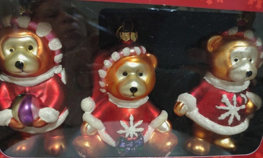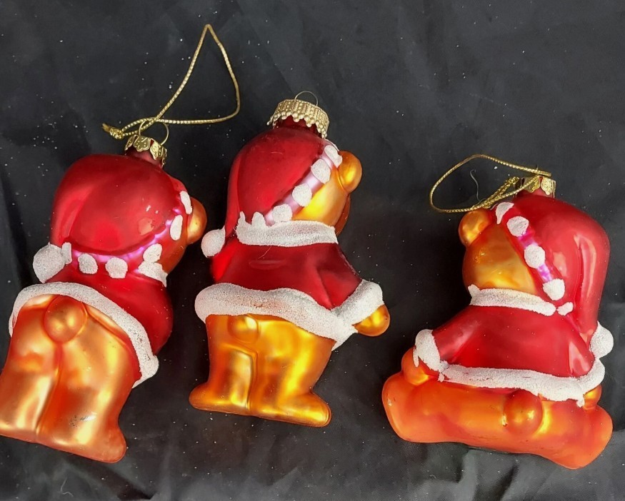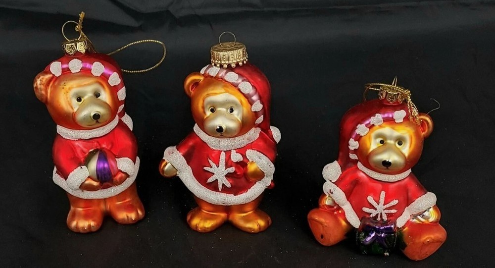 The Belkie 2005 Set of 3 Collectible Christmas Bears Ornaments in Red and Gold features small mercury glass bear ornaments perfect for holiday decor. These hanging ornaments from the year 2005 are designed with a festive multicolor scheme, making them a charming addition to any Christmas tree. The set includes three bear ornaments, each measuring less than 3 inches in length and height and weighing around 5 ounces. These Belks-branded ornaments are sure to bring a touch of holiday cheer to any home. We combine shipping on multiple listings purchased, so please visit our store for more great deals! Cyber Store Central | eBay Stores