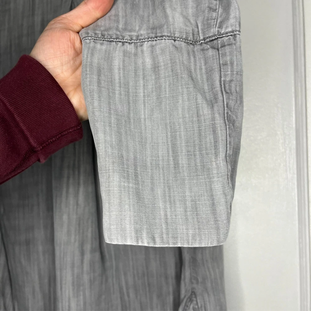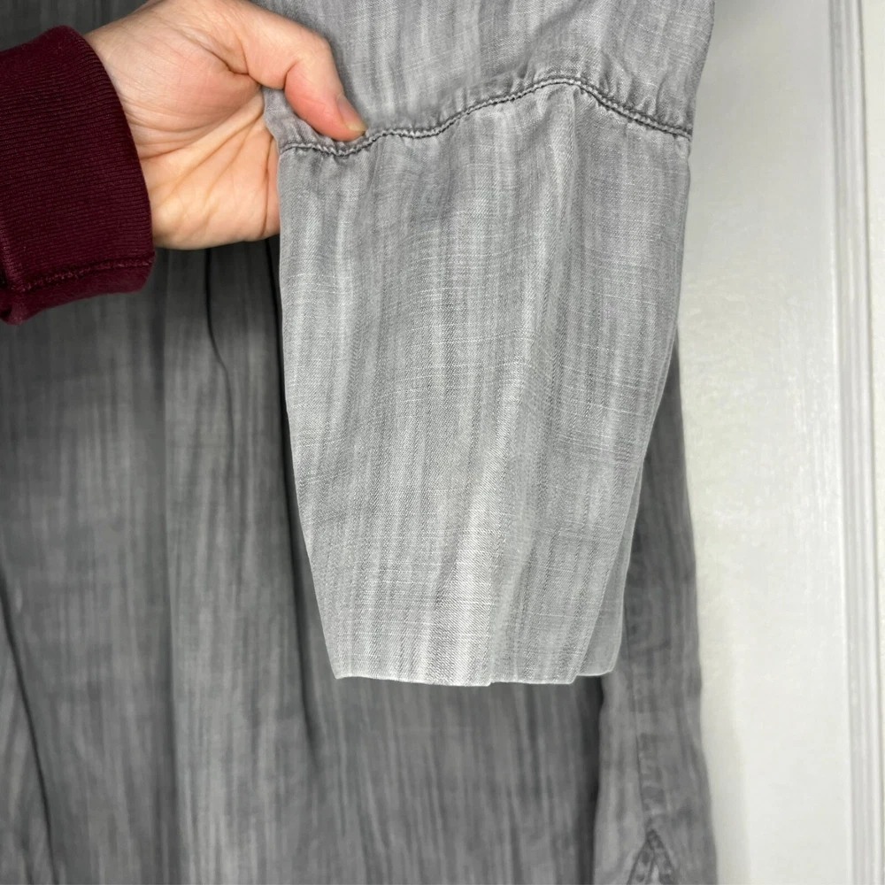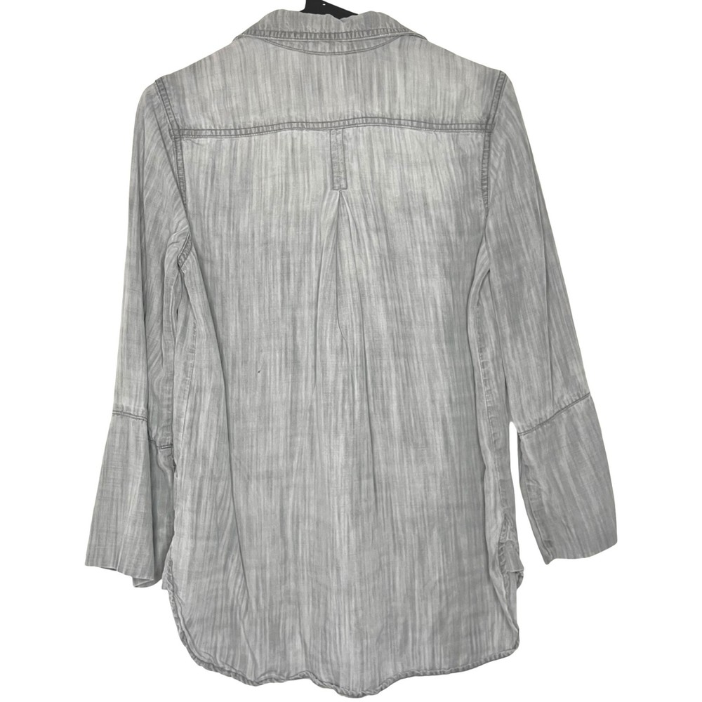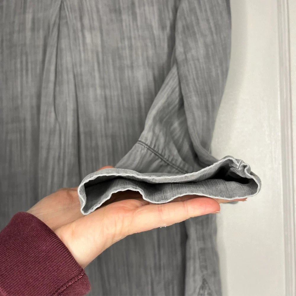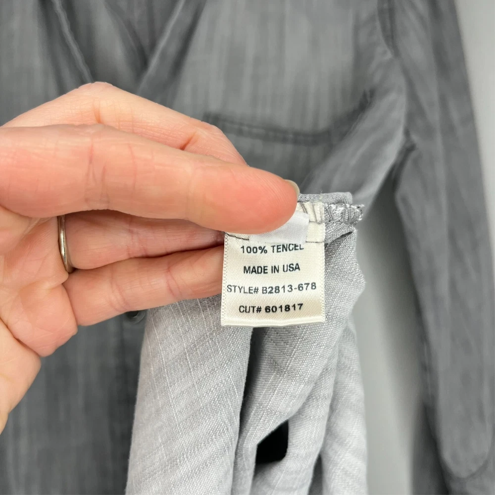This is the classic Bella Dahl Shirt Tail Button Down Shirt in a size small and medium gray color It features a collared v-neckline, chest pocket, 1/2 length roll sleeves, and a hi-low hem. Excellent Used Condition - No stains, holes, tears or other notable issues. Approximate Measurements: Length: 24.5" (front), 26.5" (back) Chest: 38" Shoulders: 15" Sleeve length: 20" Sleeve Opening: 10.5" Bottom Hem: 42" If you have any questions, or would like any additional measurements, please ask!